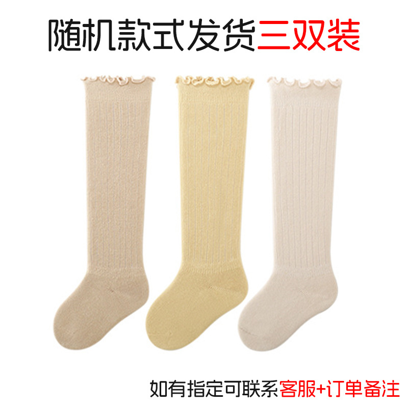 신생아 긴 양말, 봄과 가을 통기성 면 양말, 레이스, 소년 소녀, 여름 높은 무릎 위 모기 방지 양말