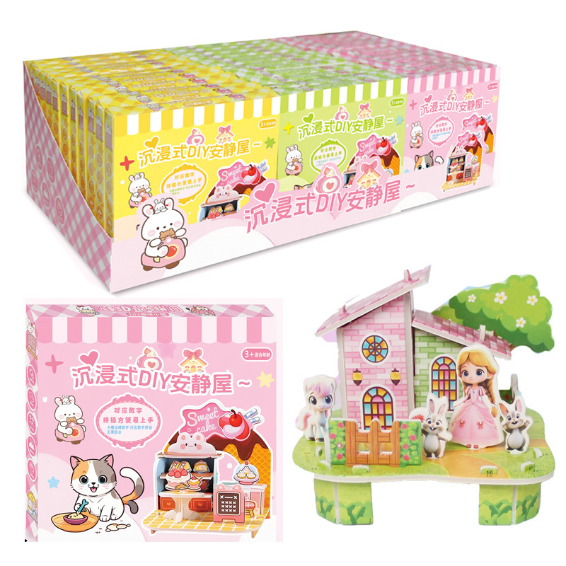 어린이 3D 입체 퍼즐 하우스 모델 미니 조용한 집 장난감 수제 diy 소년과 소녀 훈련 수업 장난감