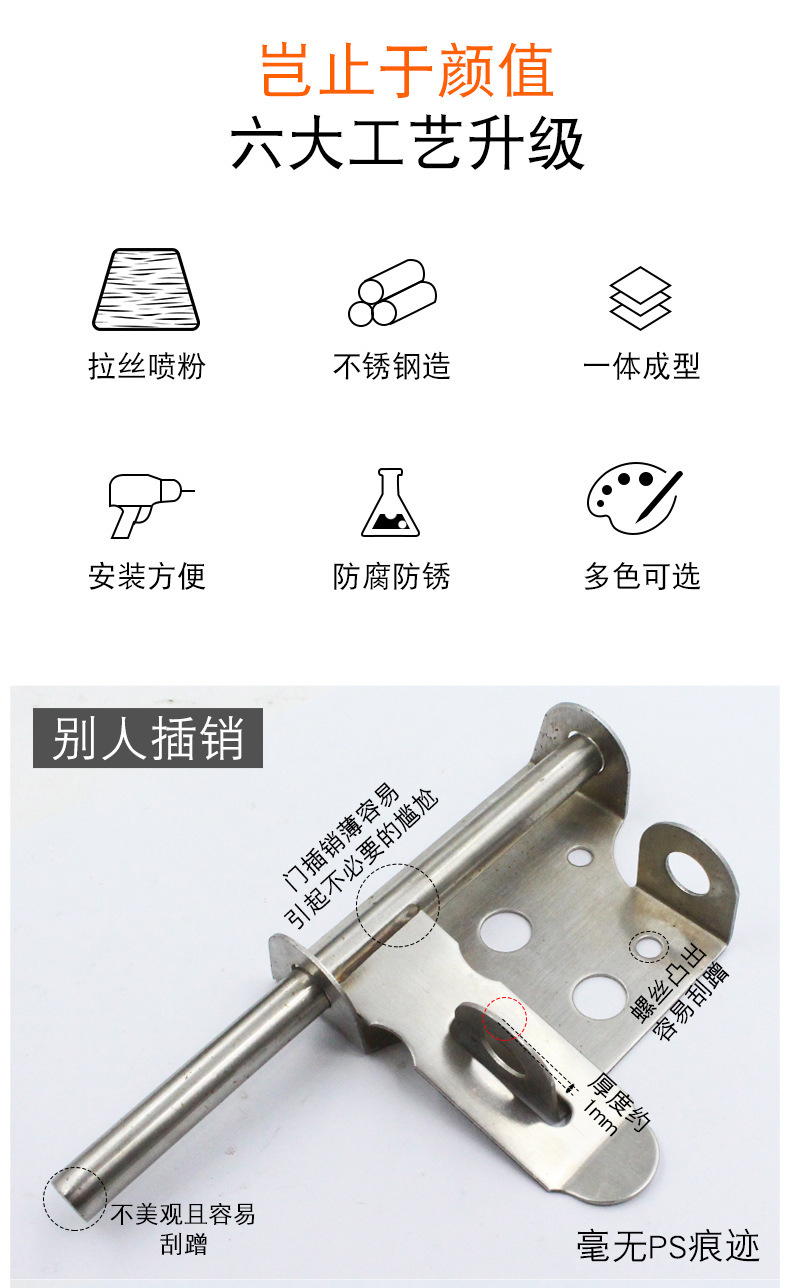 스테인레스 스틸 레스트러스 브러시드 잠금 장치 도난 방지 도어 잠금 장치 도어 버클 걸이 왼쪽 및 오른쪽 레스트러스 노출형 도어 볼트 도어 잠금 장치스토어 가기