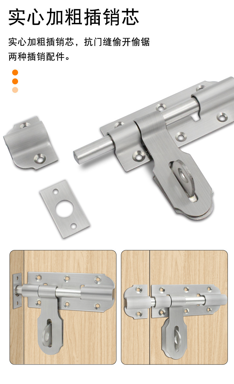 스테인레스 스틸 레스트러스 브러시드 잠금 장치 도난 방지 도어 잠금 장치 도어 버클 걸이 왼쪽 및 오른쪽 레스트러스 노출형 도어 볼트 도어 잠금 장치