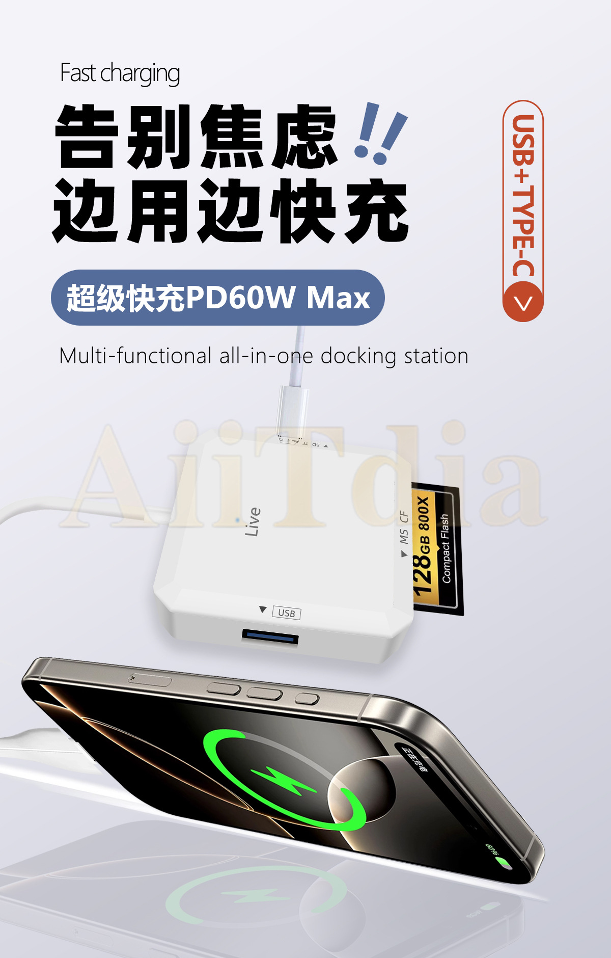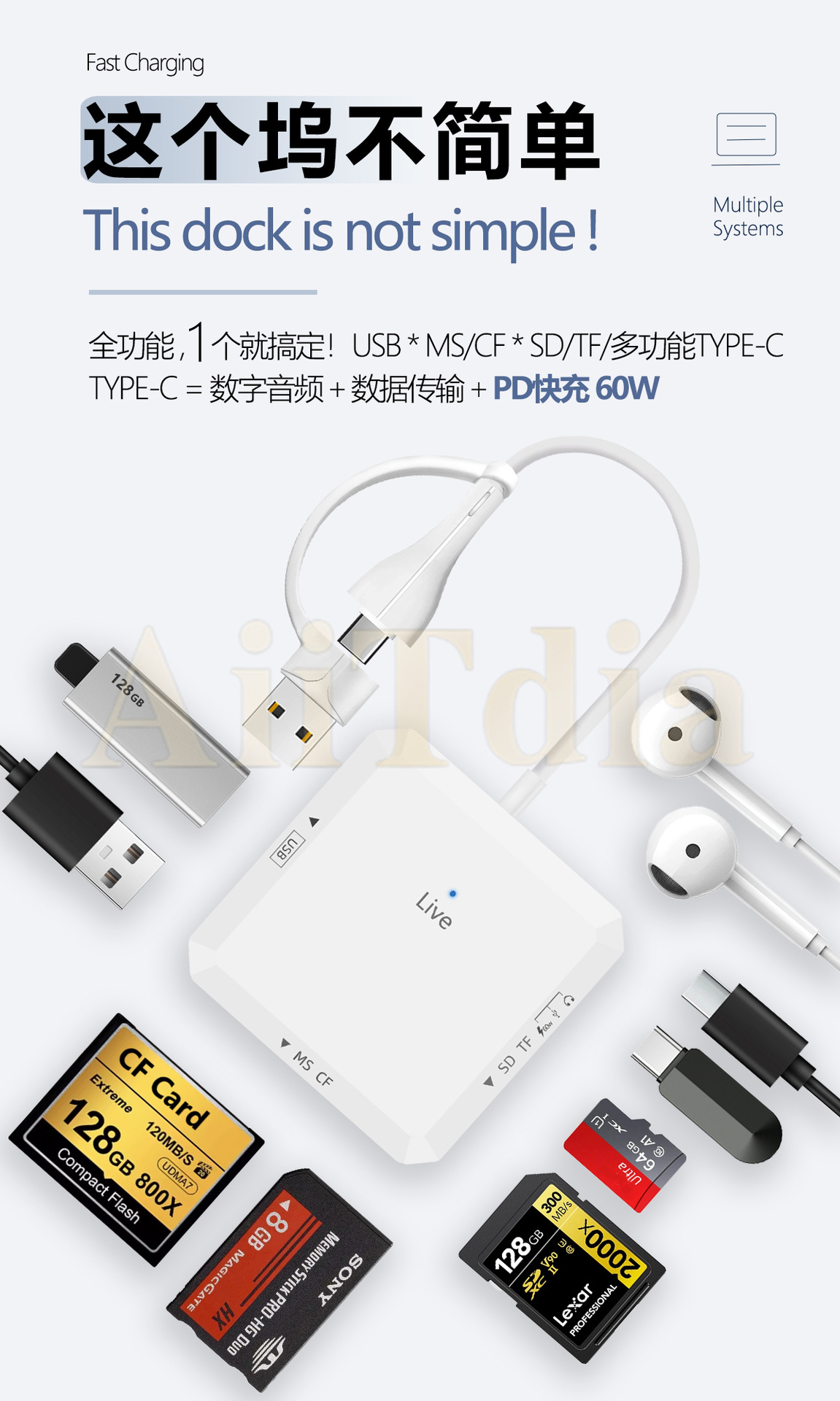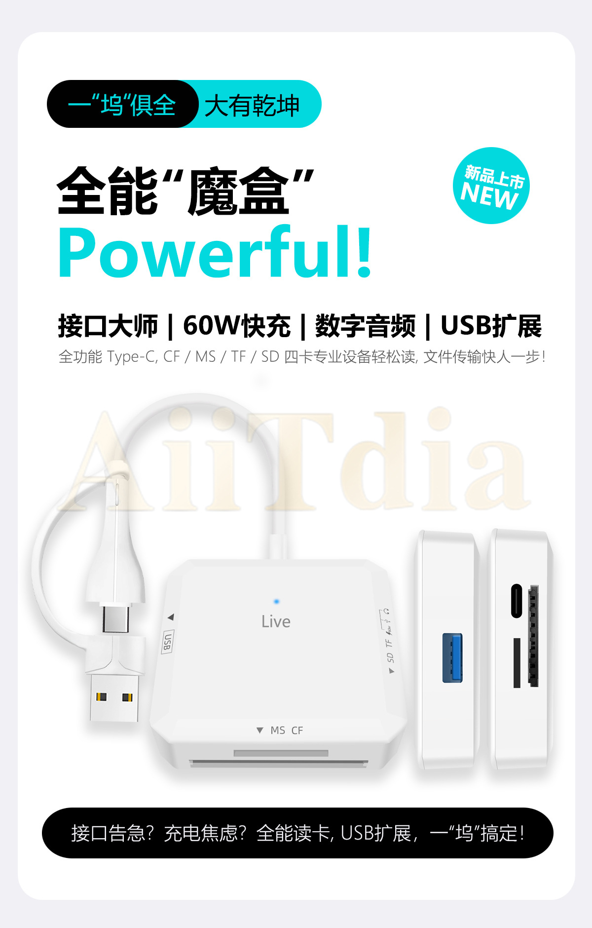产品输出:【USB2.0/PD60W/TF/SD/MS/CF】