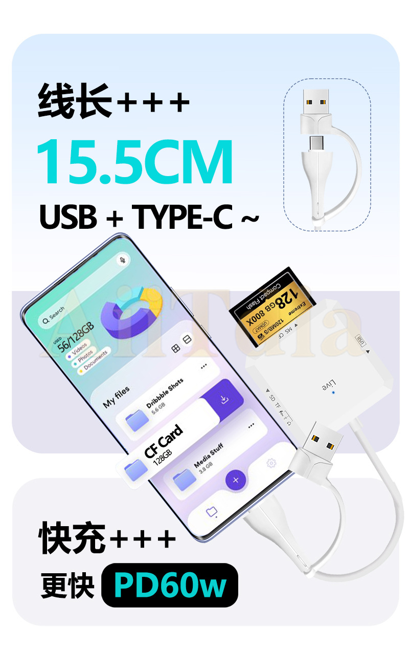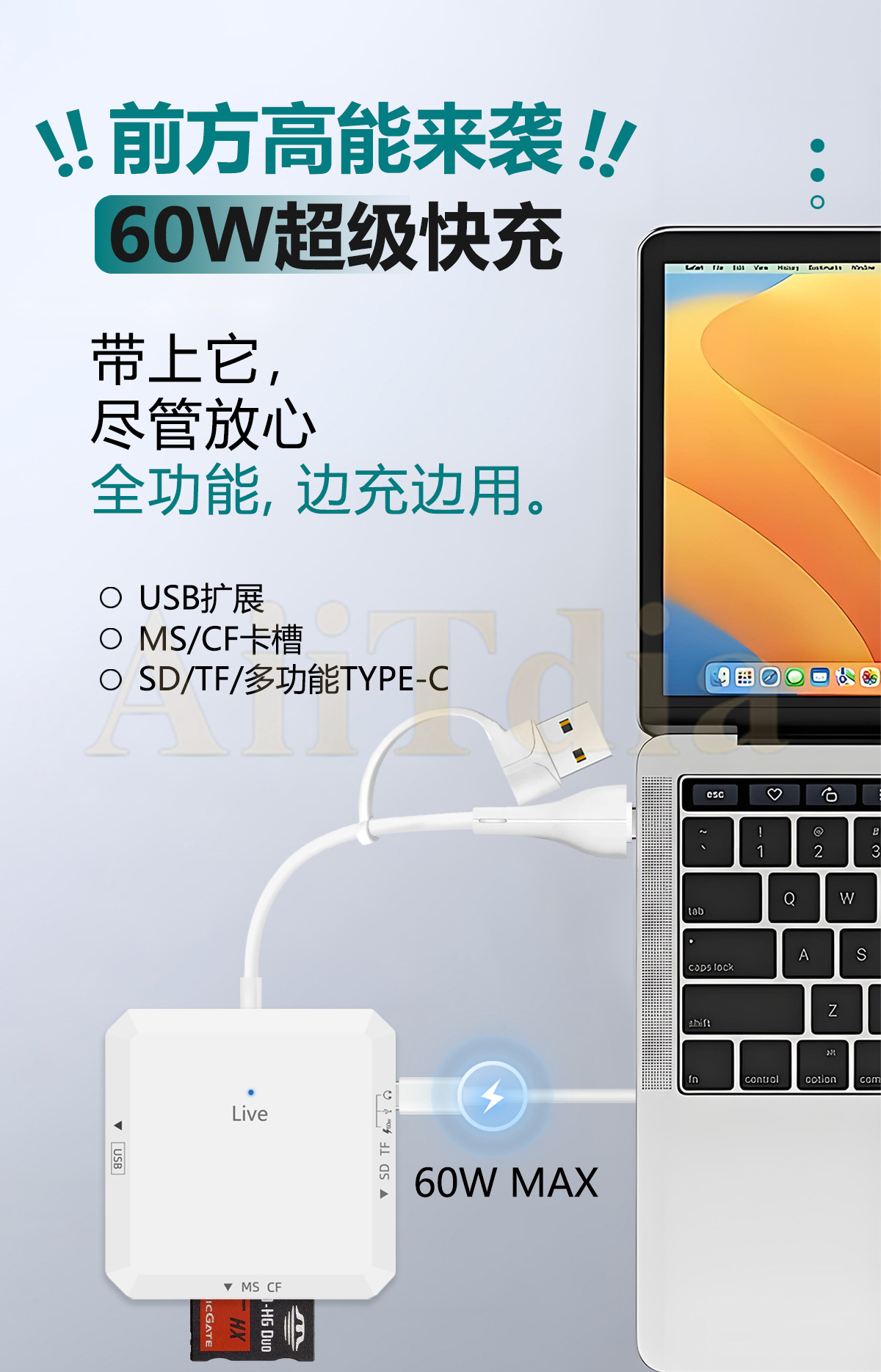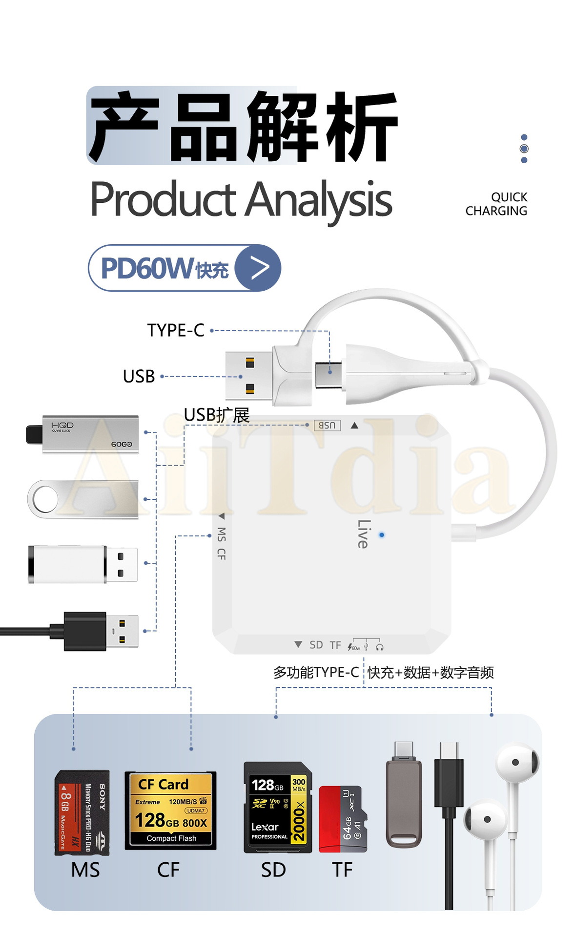 产品输出:【USB2.0/PD60W/TF/SD/MS/CF】