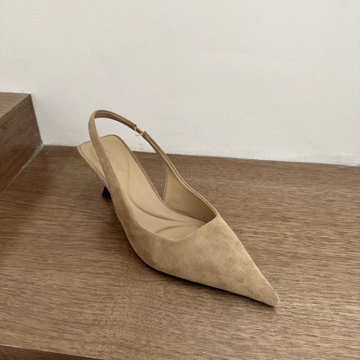 프랑스 스타일 이브닝 하이힐 복고풍 뾰족한 신발 여성 신발 2025 여름 새로운 중국 스타일 아름다운 Baotou 샌들 노란색