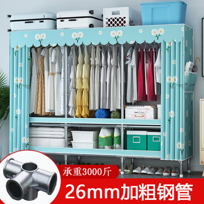 가정용 침실을 위한 전체 강철 튜브 천 옷장 간단한 옷장 임대 집 조립 옷장 소스 공장 도매스토어 가기