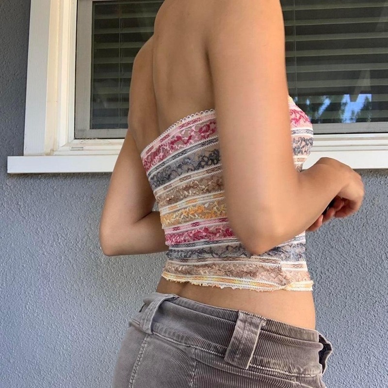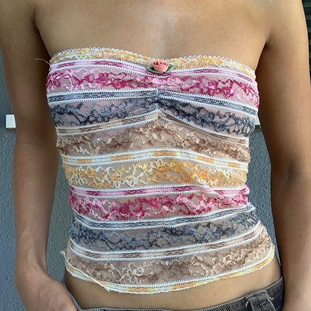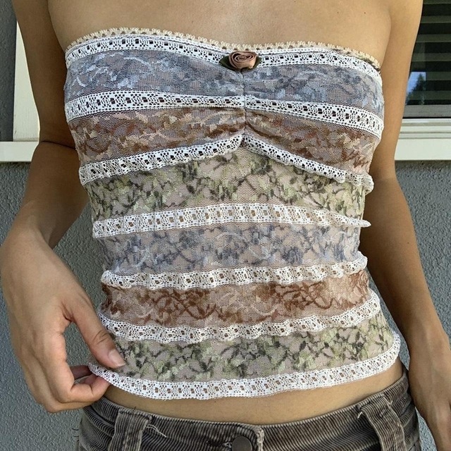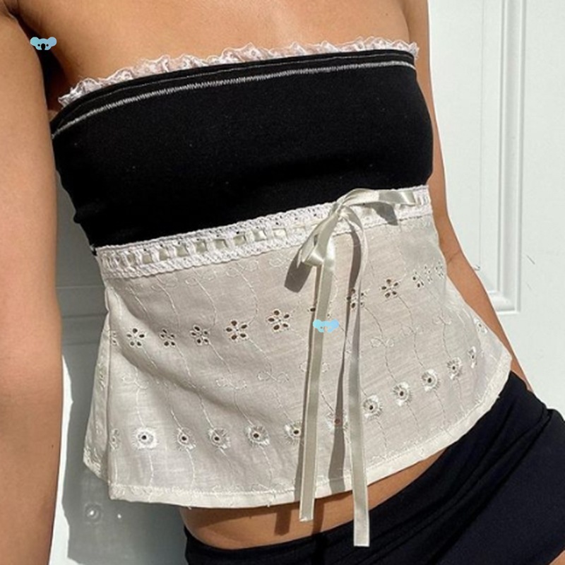 2000년대 레트로 귀여운 레이스 트림 스트랩 튜브 오퍼레이터 여름 슬리브