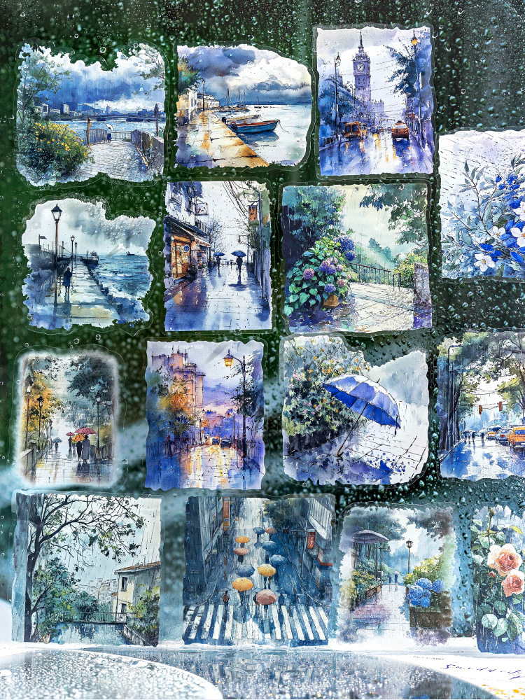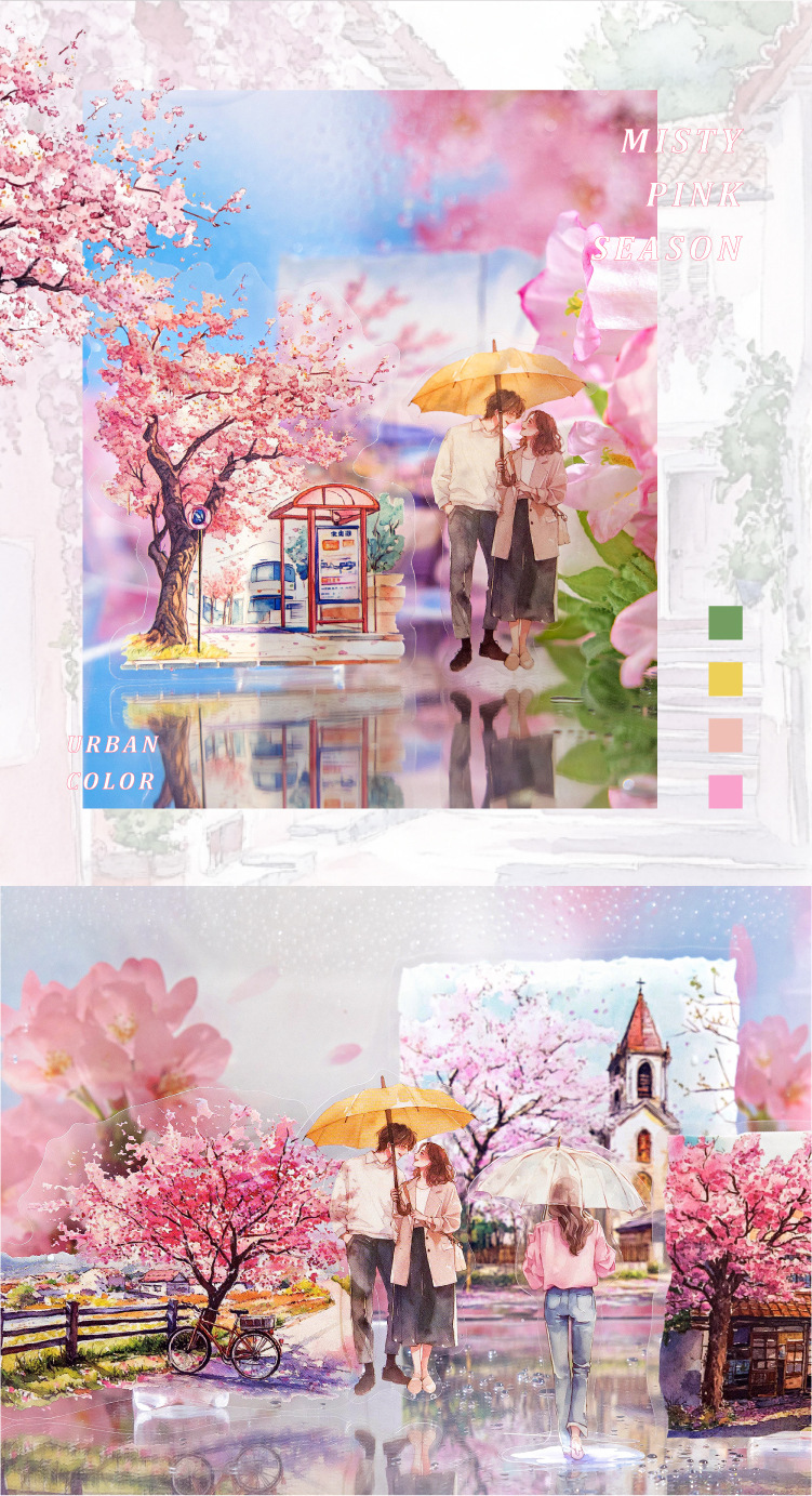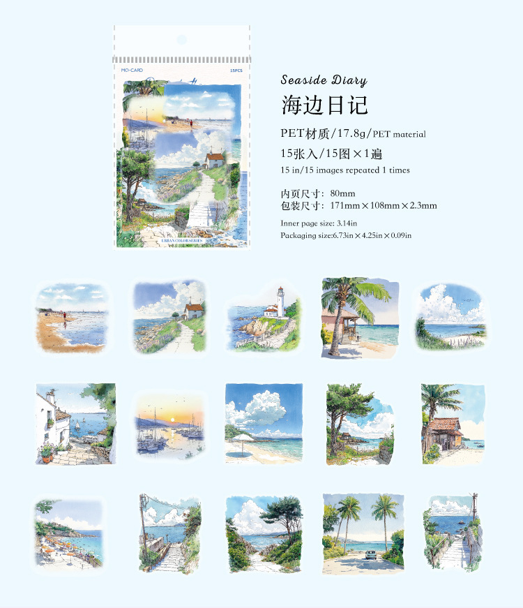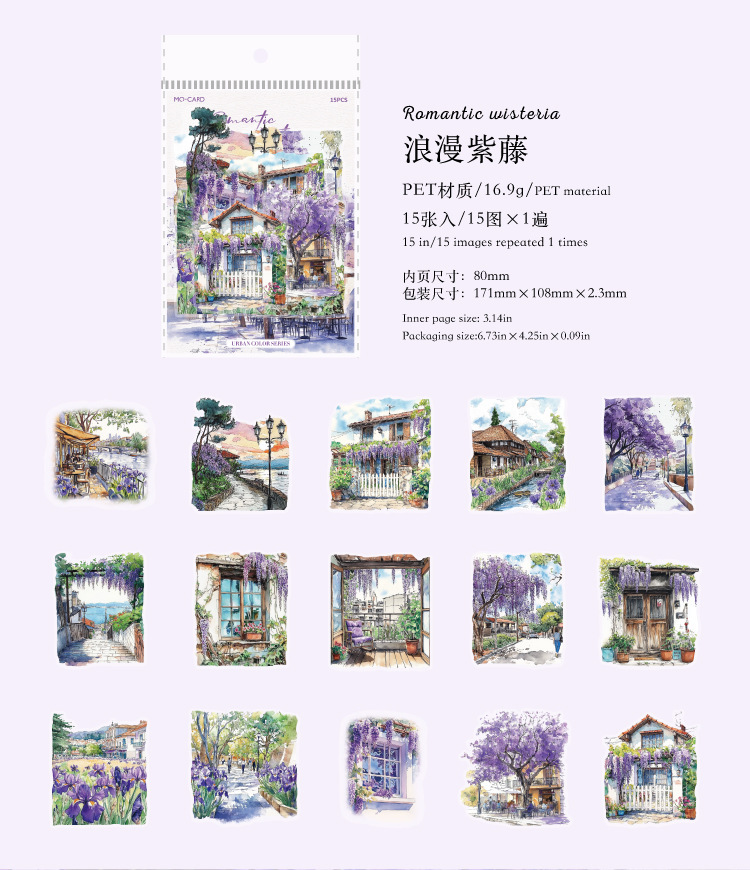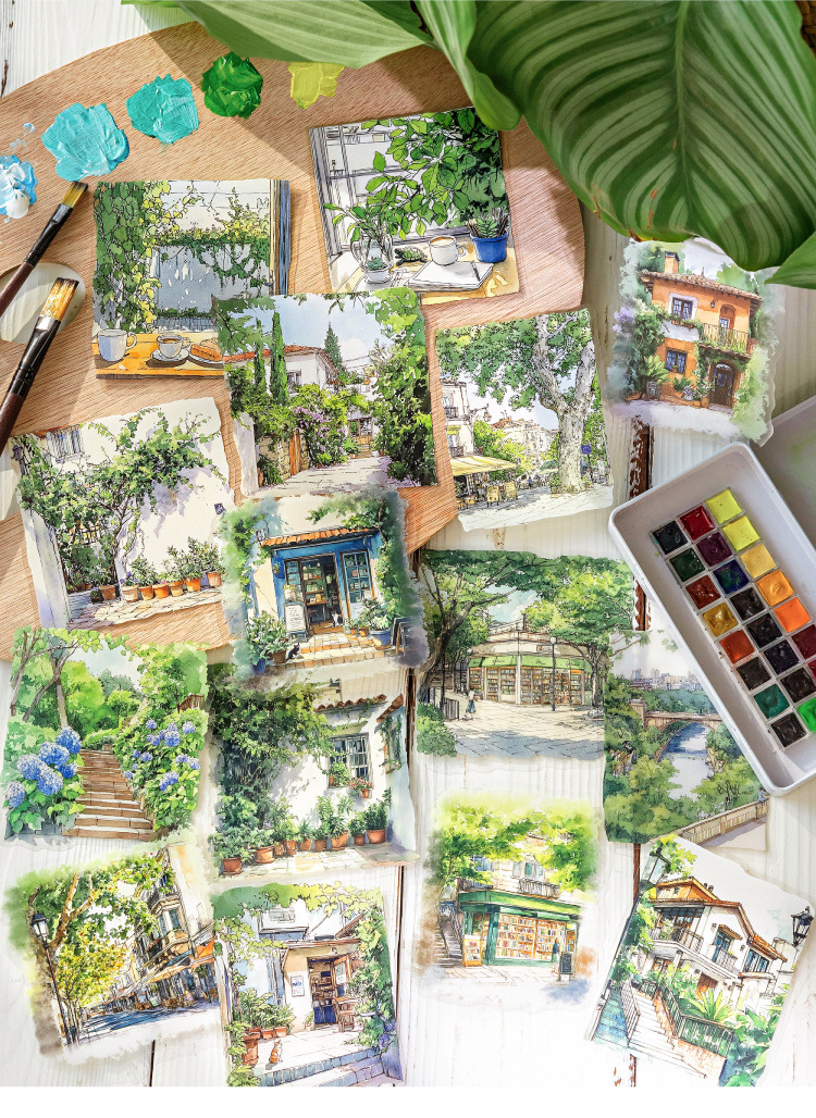 Momo 대형 PET 조경 스티커 팩 도시 색상 시리즈 수채화 스타일 거리 장면 소재 핸드북 콜라주