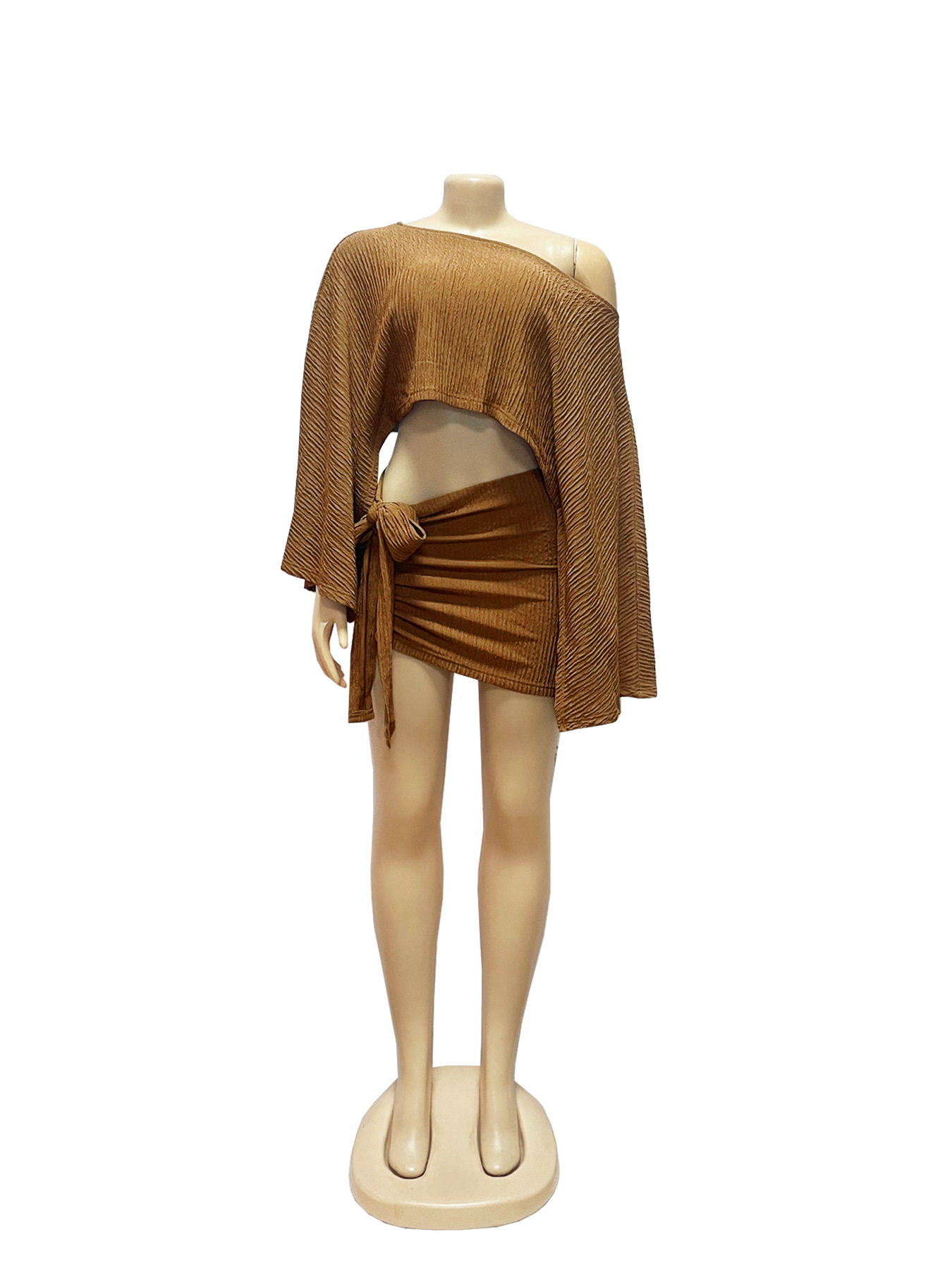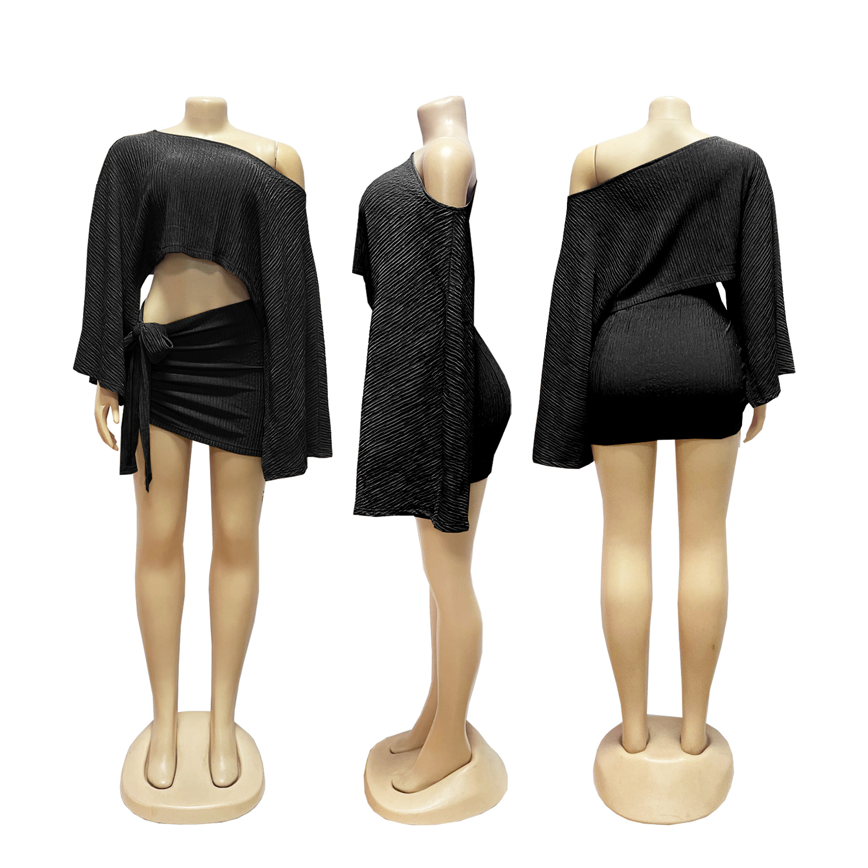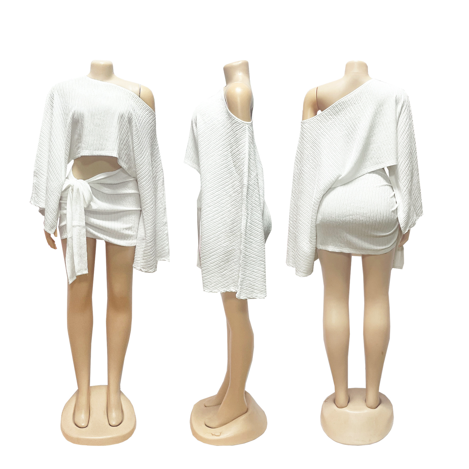 TW740 유럽과 미국의 국경 간 여성 여름 해변 휴가 스타일 통기성 슬래시 넥 오프 숄더 탑 스트랩 힙 스커트 슈트