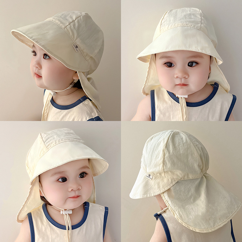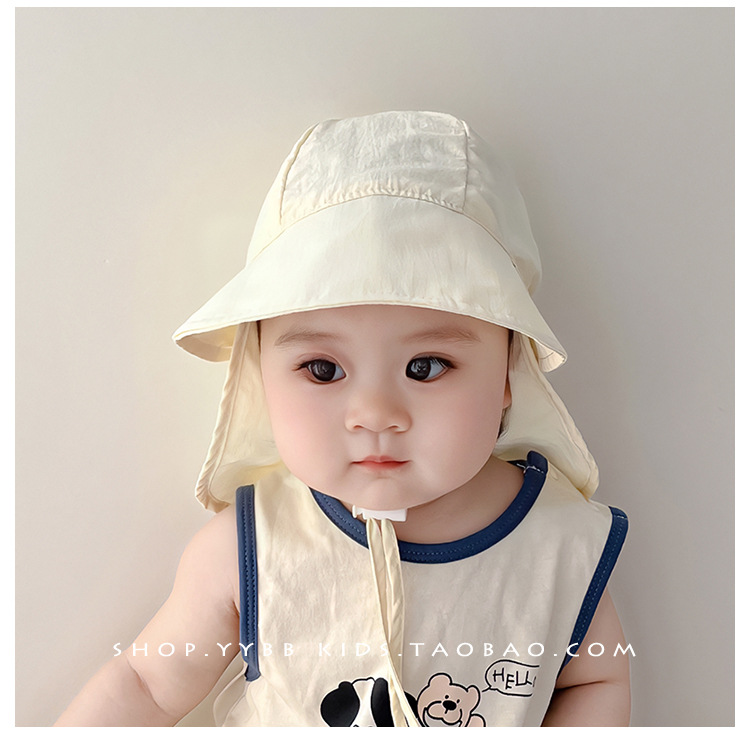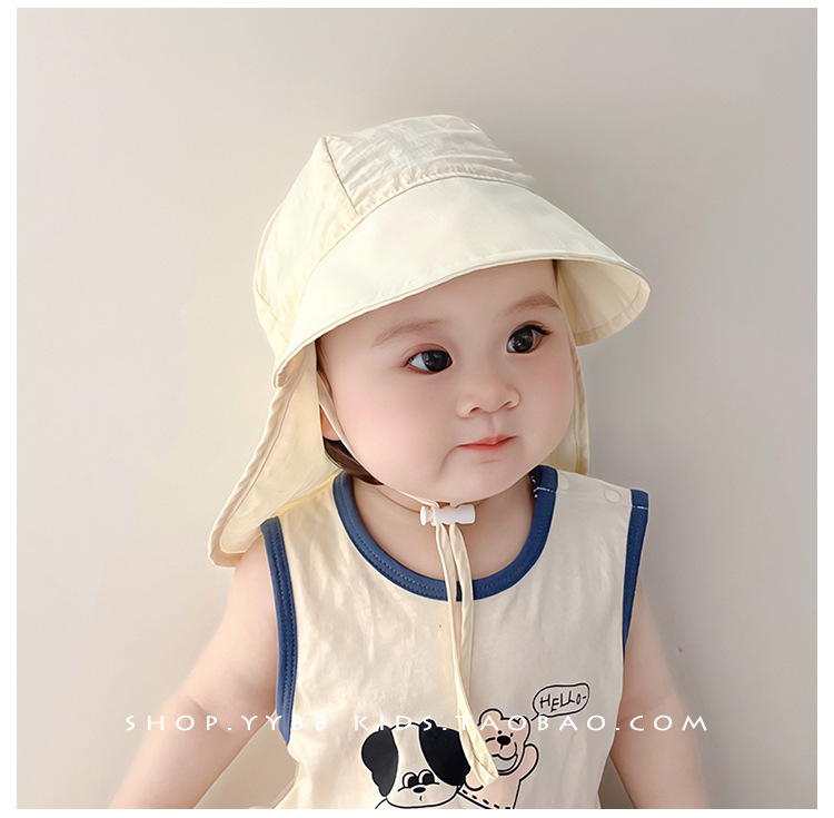 아기 여름 태양 보호 모자, 큰 챙 숄 모자, 목 보호대, 속건성 어린이 통기성 야외 태양 보호 어부 모자