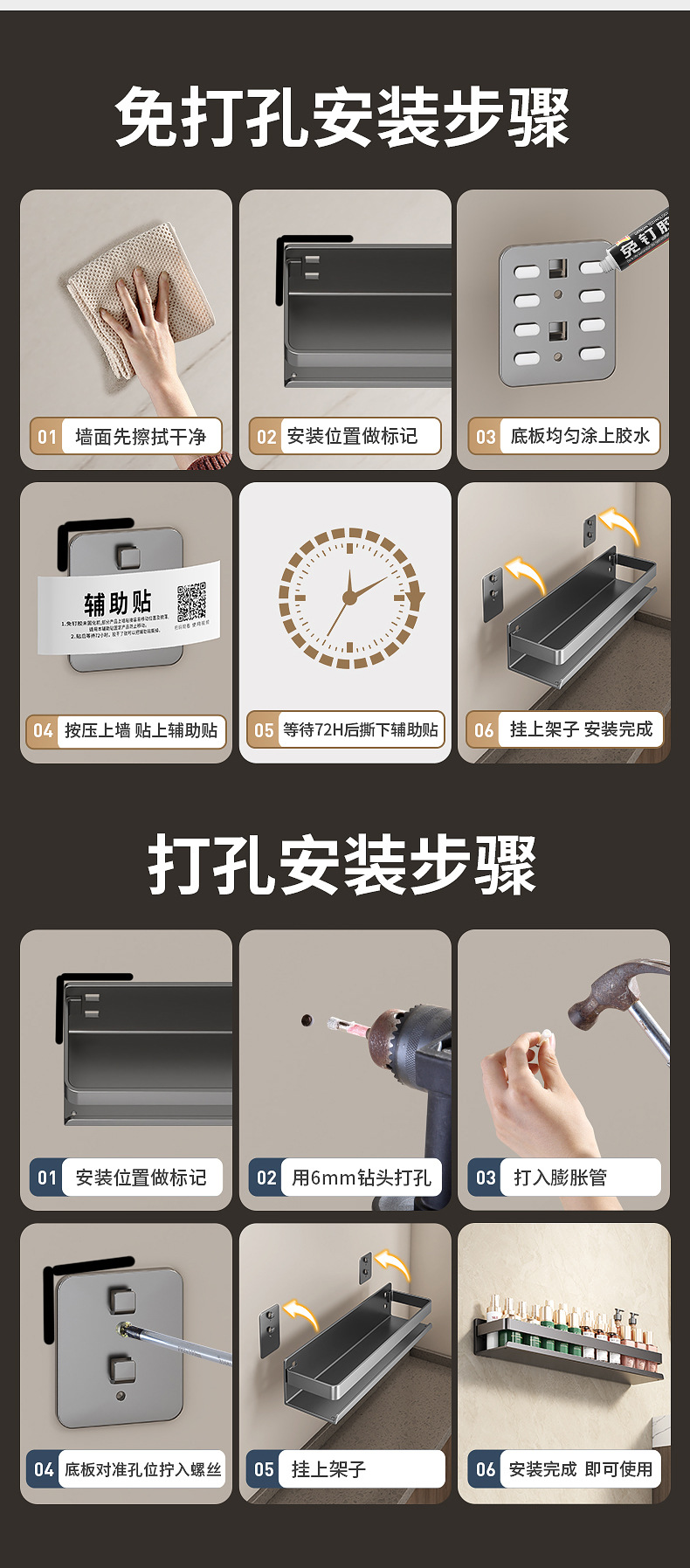 주방 보관 랙 벽걸이 형 조미료 랙 다기능 펀치없는 벽 병 조미료 랙 공장 도매