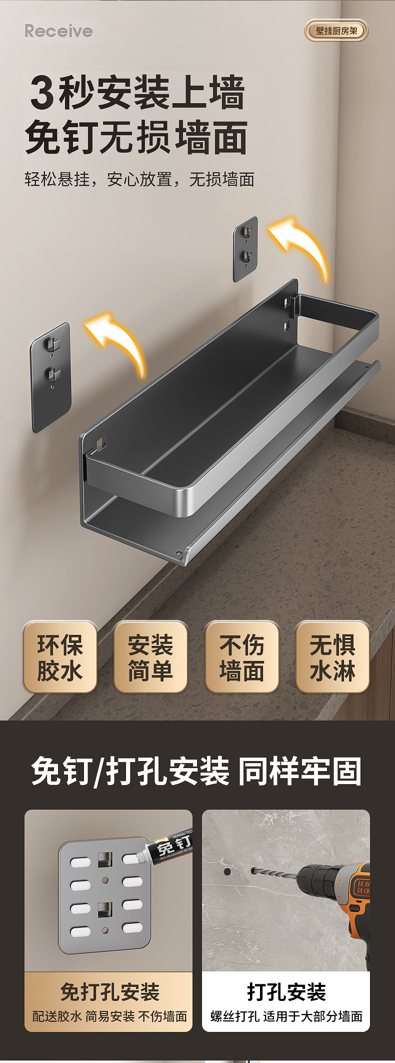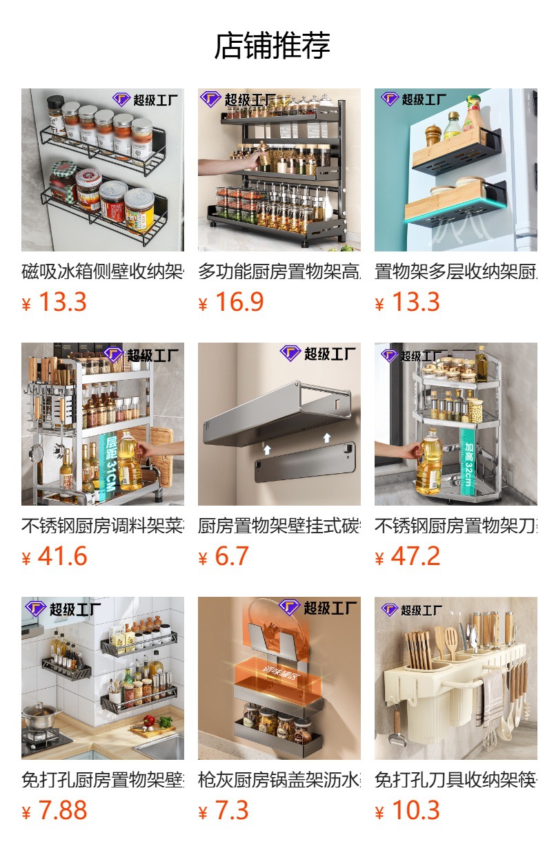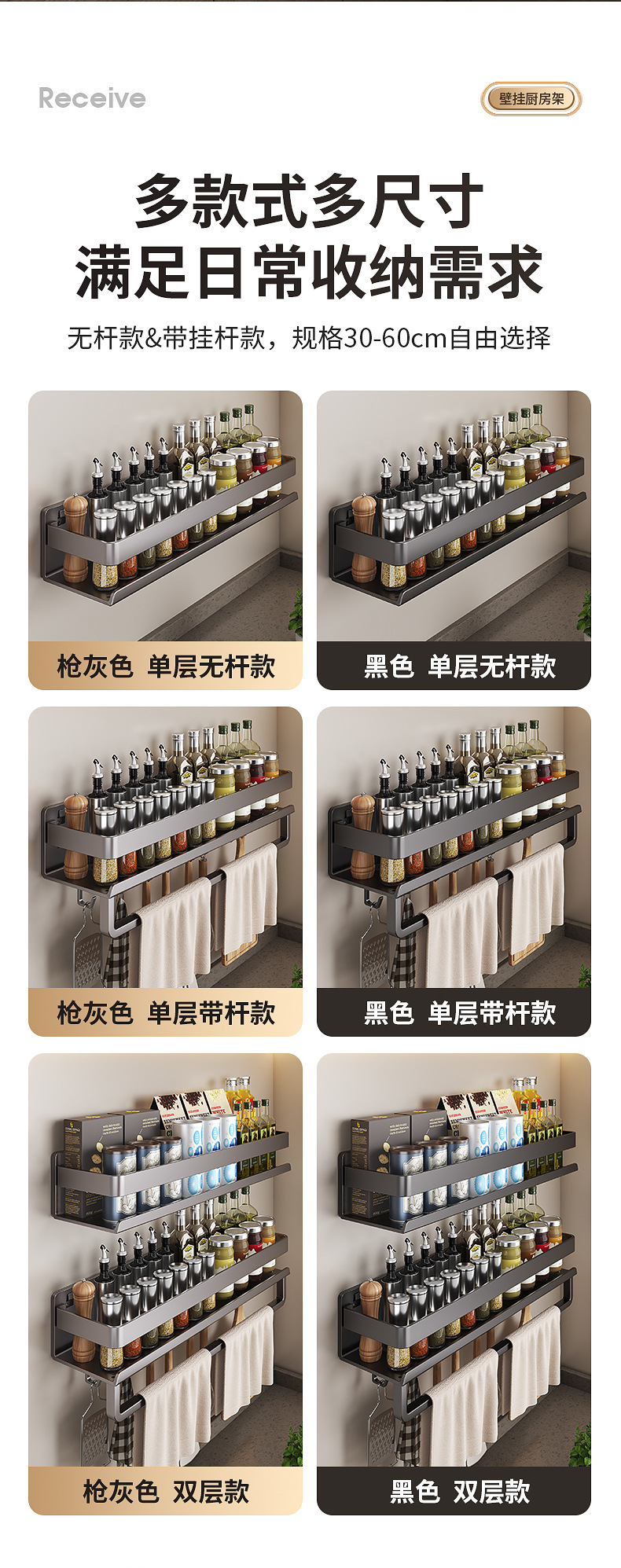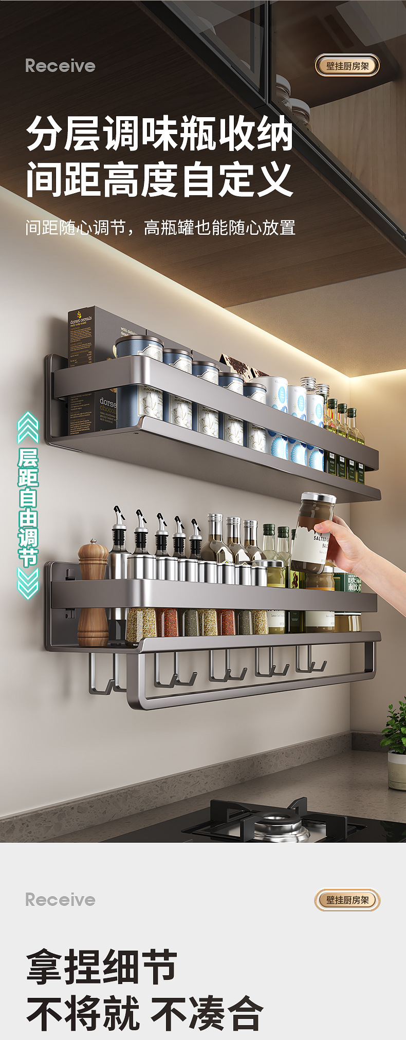 주방 보관 랙 벽걸이 형 조미료 랙 다기능 펀치없는 벽 병 조미료 랙 공장 도매스토어 가기
