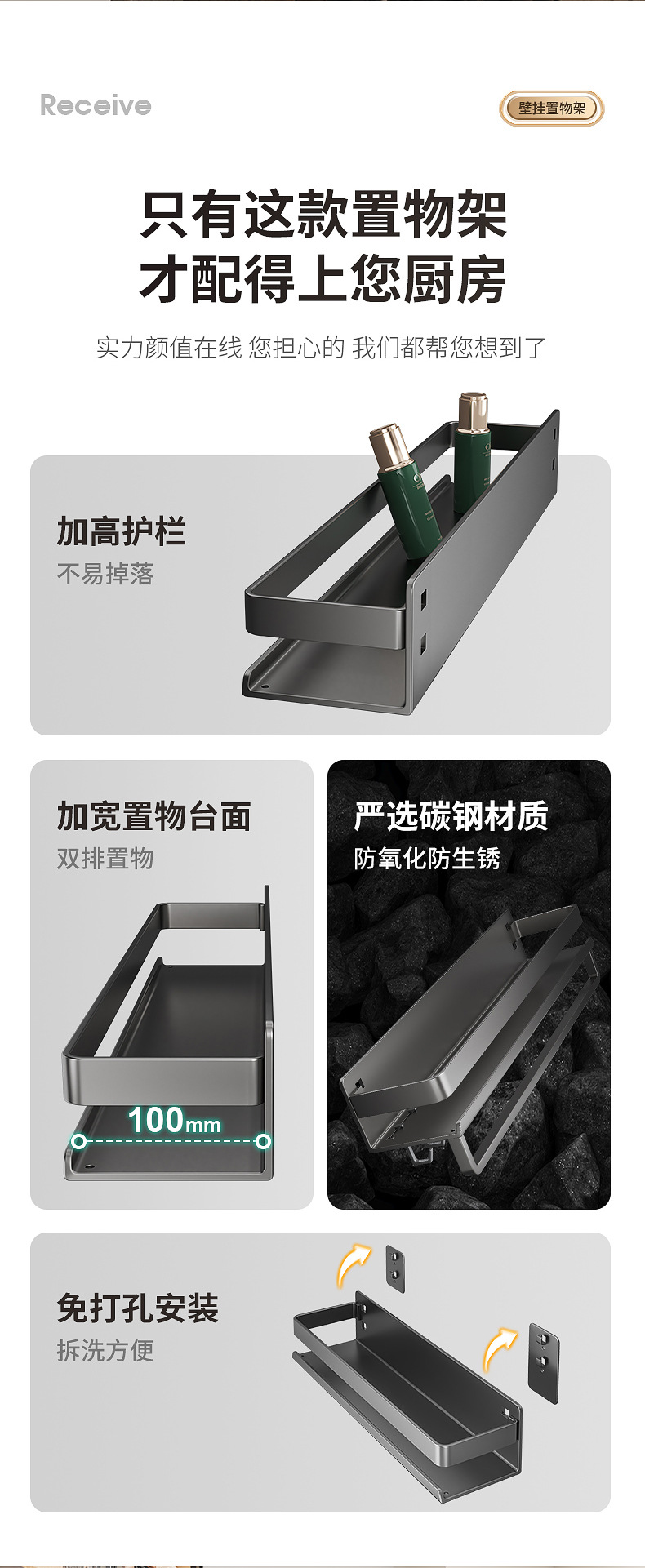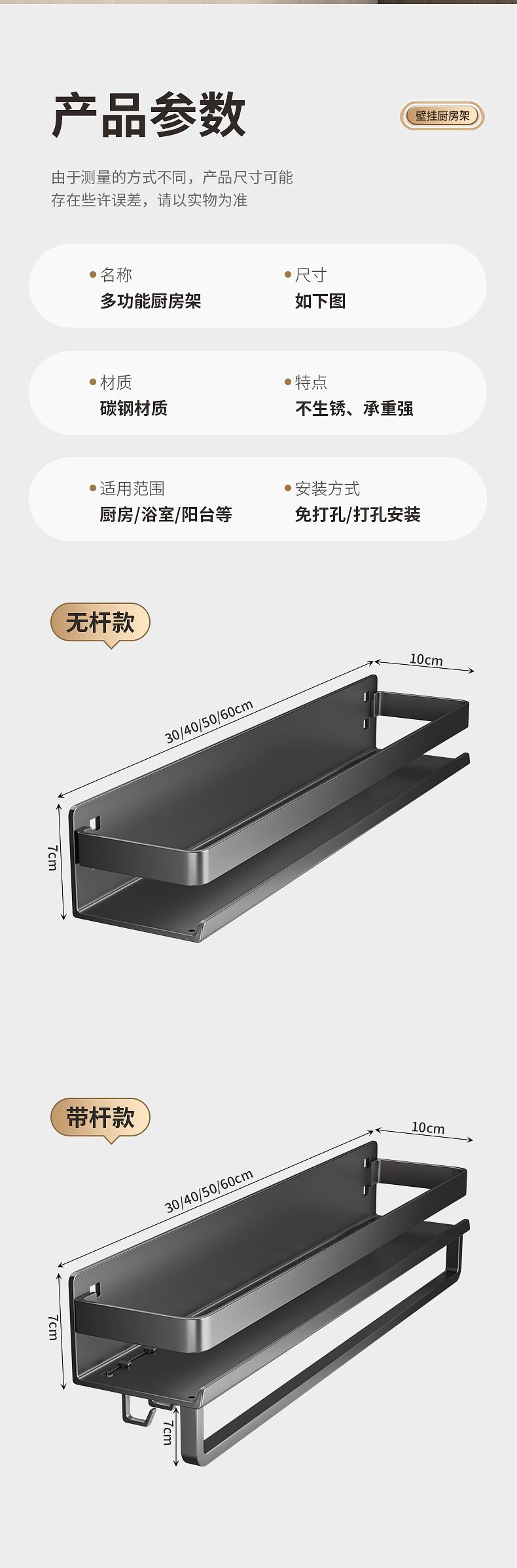 轻奢厨房置物架调料架碳钢免打孔壁挂式调味料家用品墙上收纳架子跨境冰箱侧面收纳架置物架挂壁式调料支架 磁吸调味架冰箱置物架