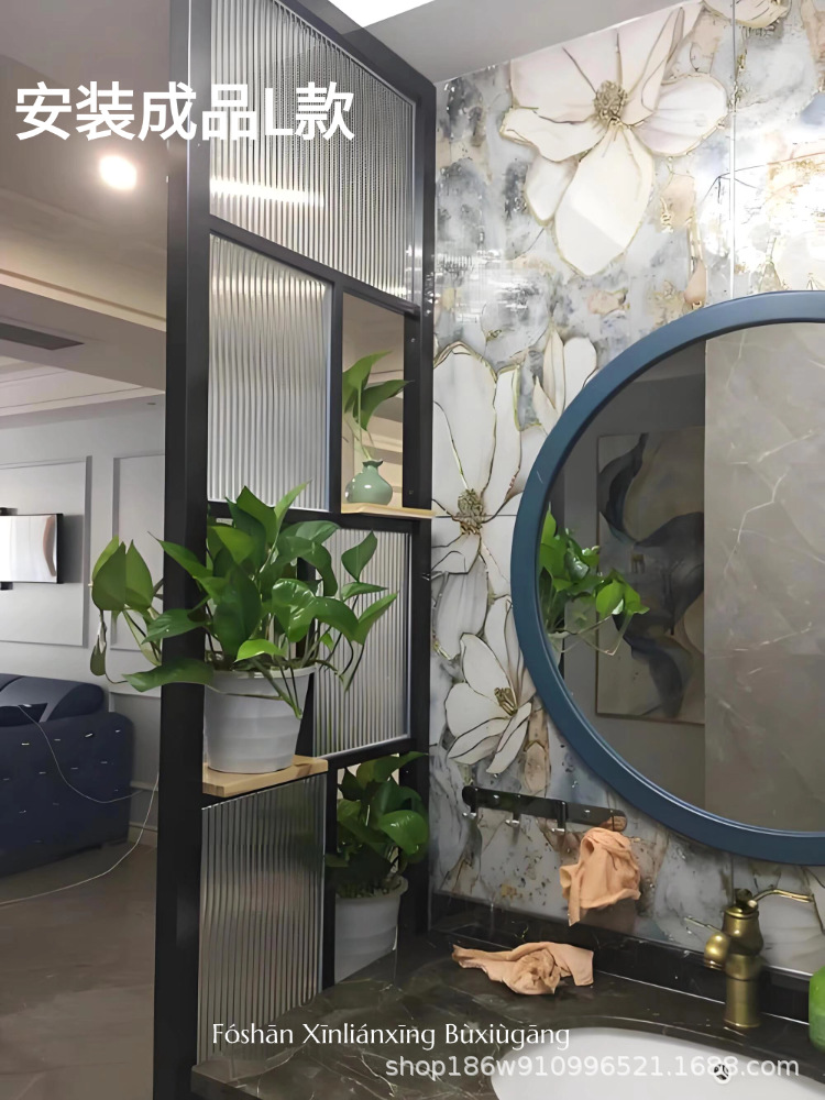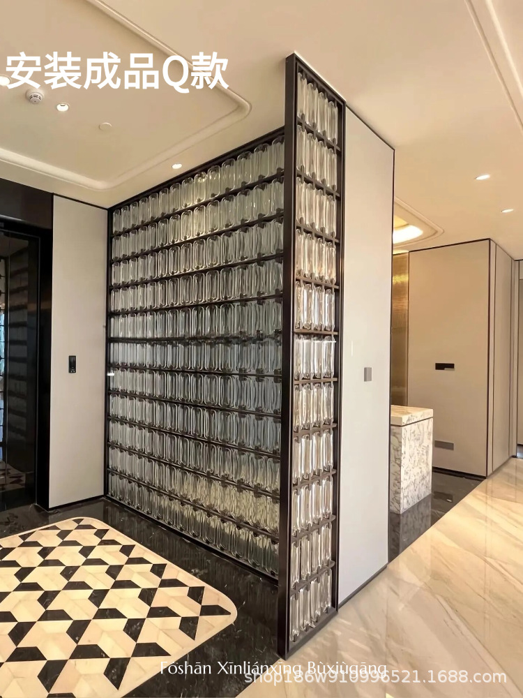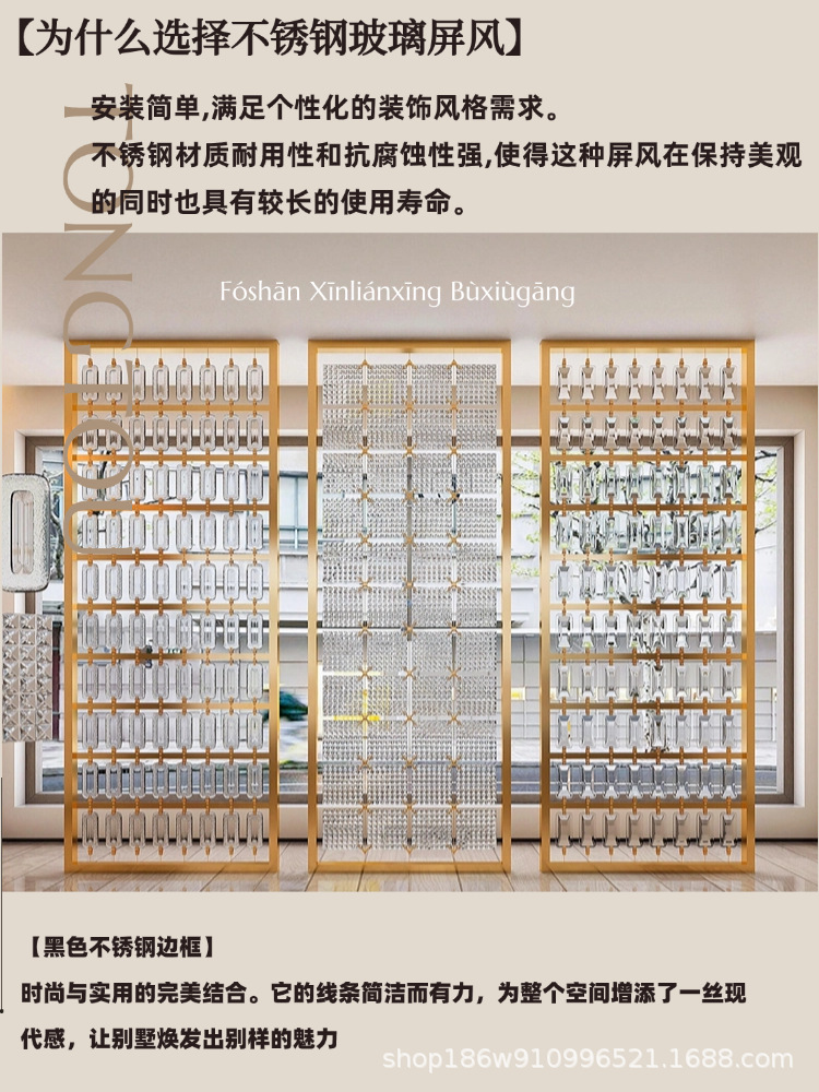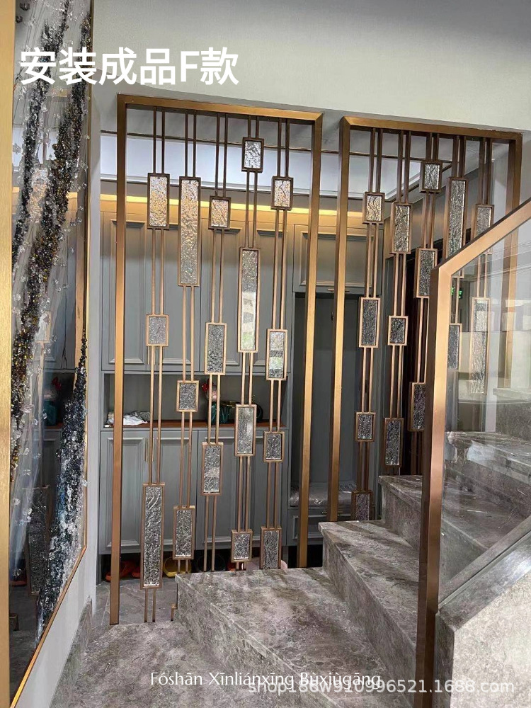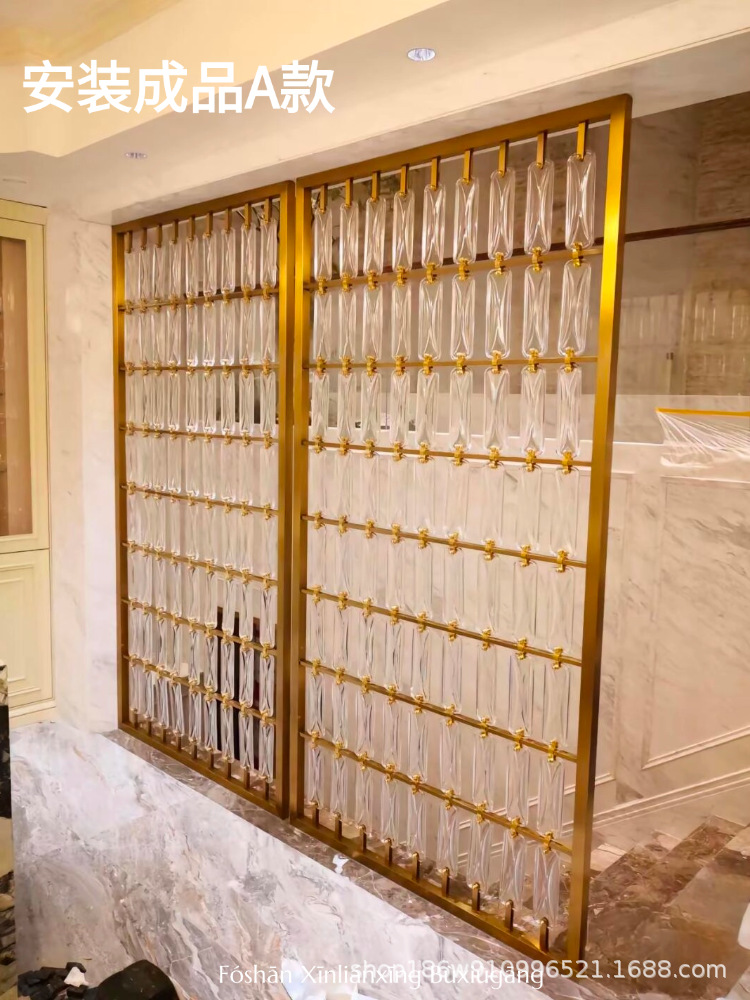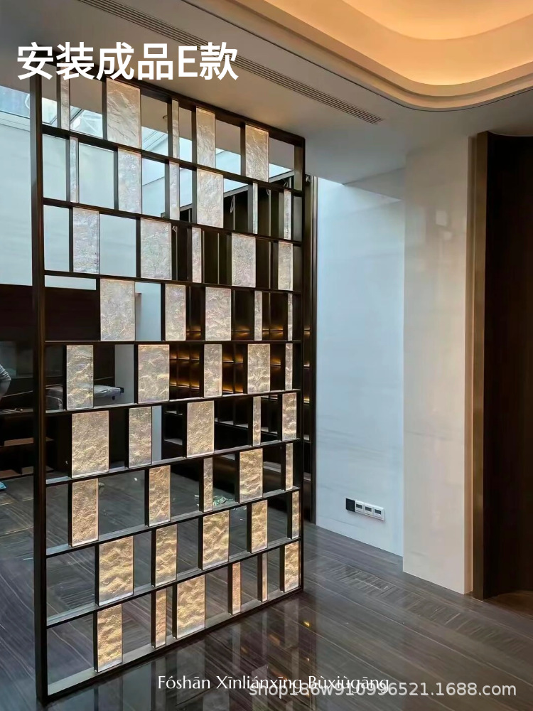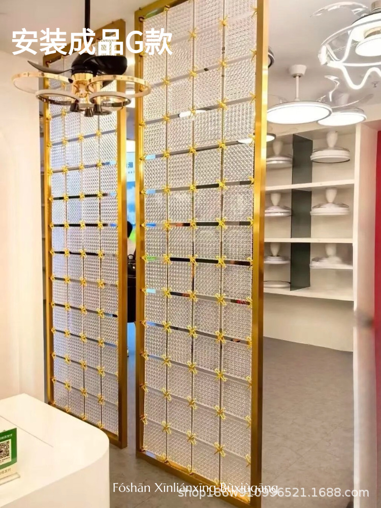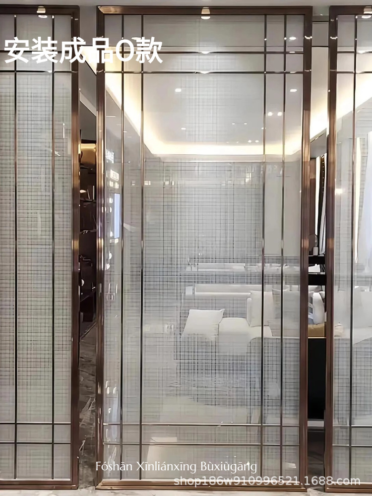 고급 신형 스테인리스 아트 글라스 스크린, 판매 사무실 입구 칸막이, 호텔 로비 거실 배경 벽스토어 가기