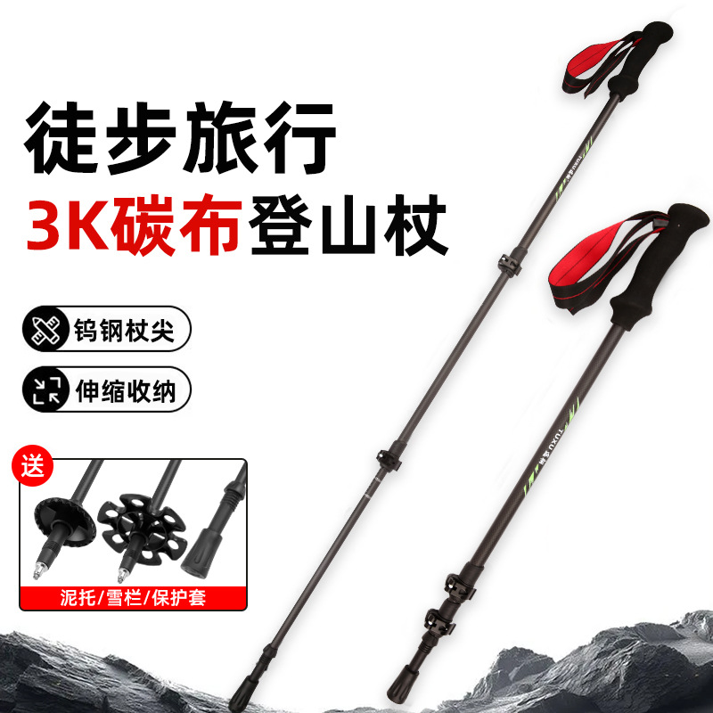 공장 직접 공급 탄소 섬유 트레킹 스틱 초경량 텔레스코픽 트레킹 스틱 경량 휴대용 야외 등산 및 하이킹 스틱스토어 가기