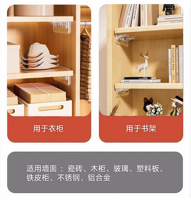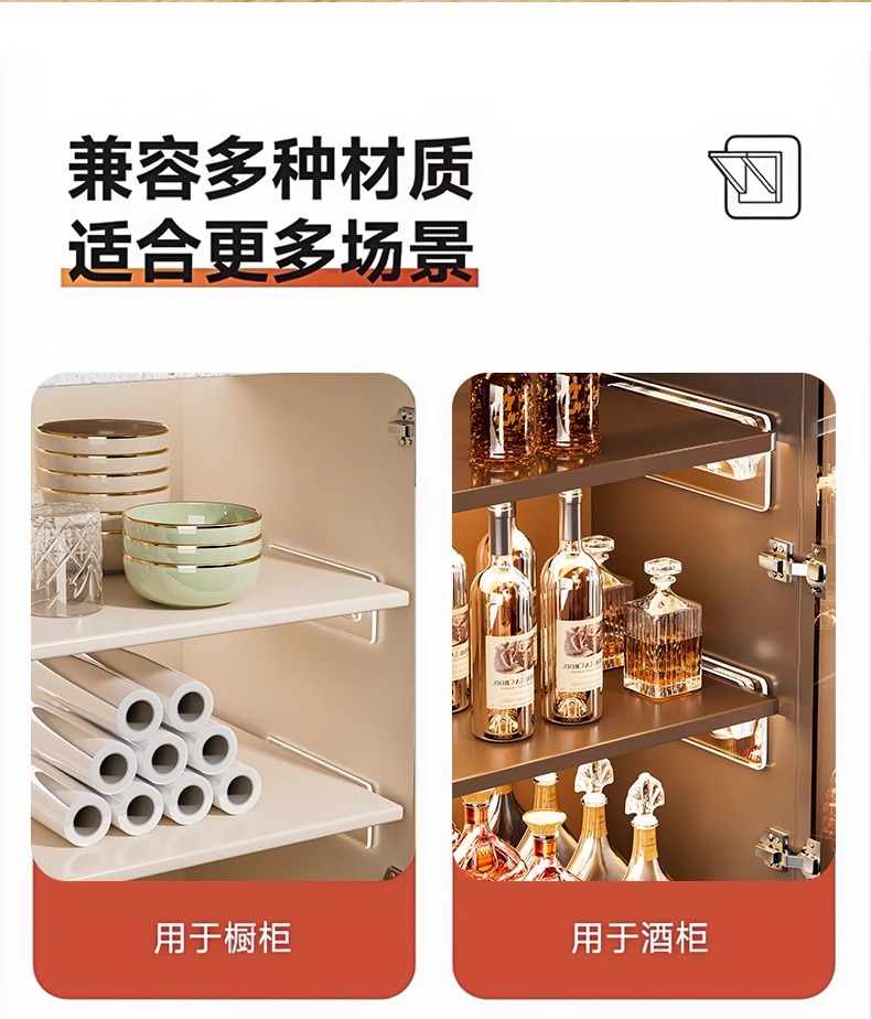 캐비닛 파티션, 계층형 선반, 옷장 수납, 계층형 유물, 펀치 프리 고정 장치, 흔적 없는 접착판, 선반
