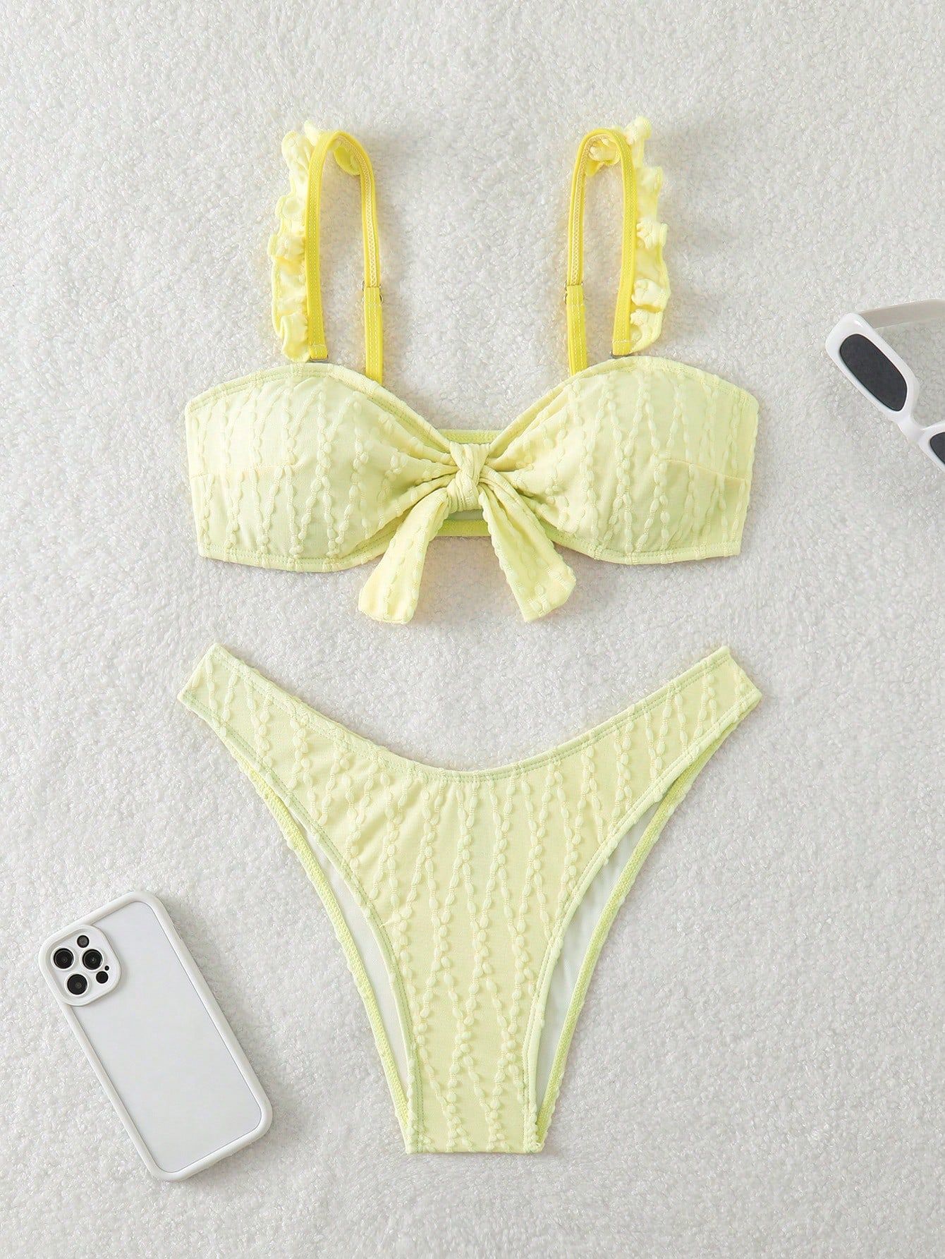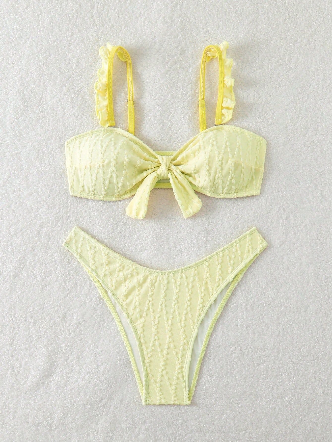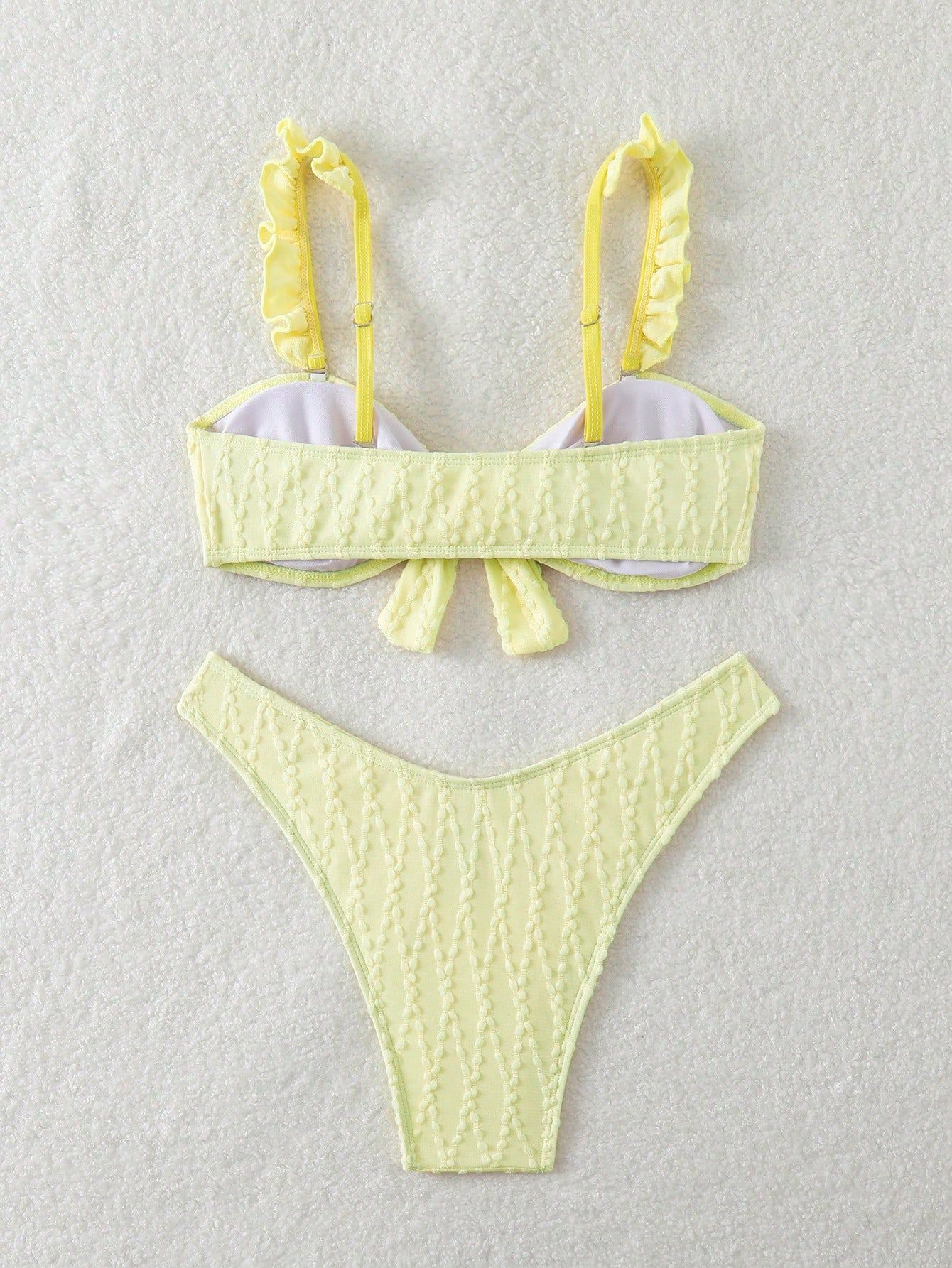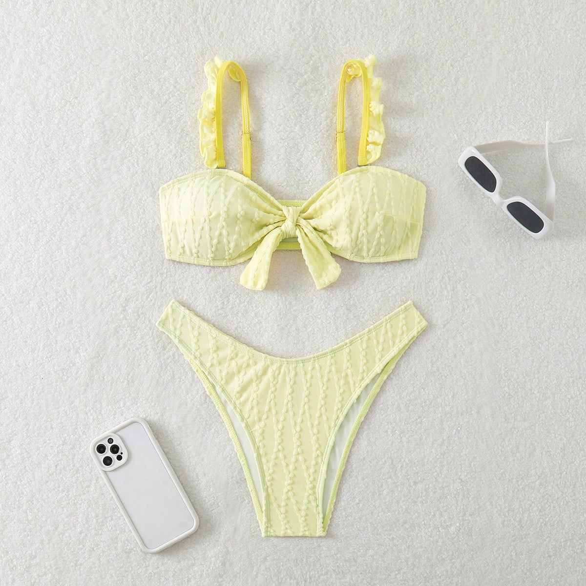 2025 수영복 새로운 솔리드 컬러 비키니 유럽과 미국의 섹시한 비키니 여성 플라잉 엣지 작은 신선한 스플릿 수영복
