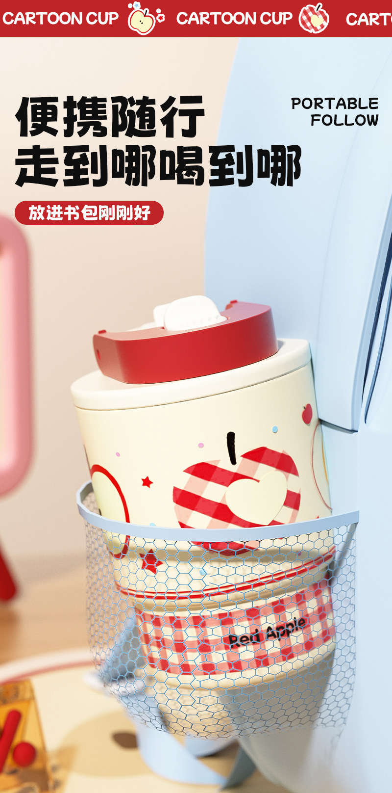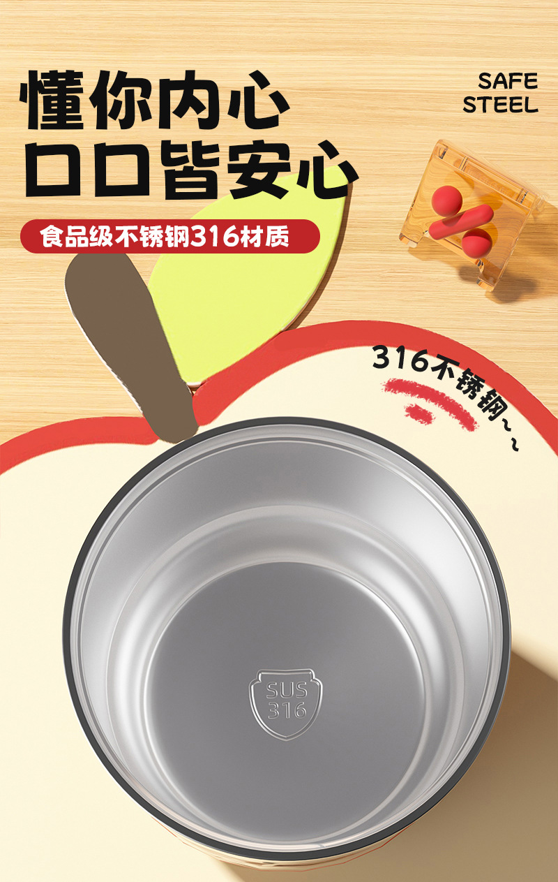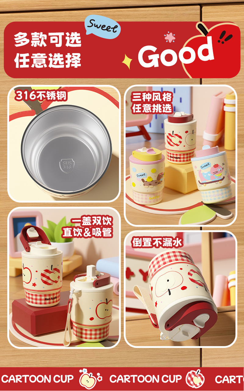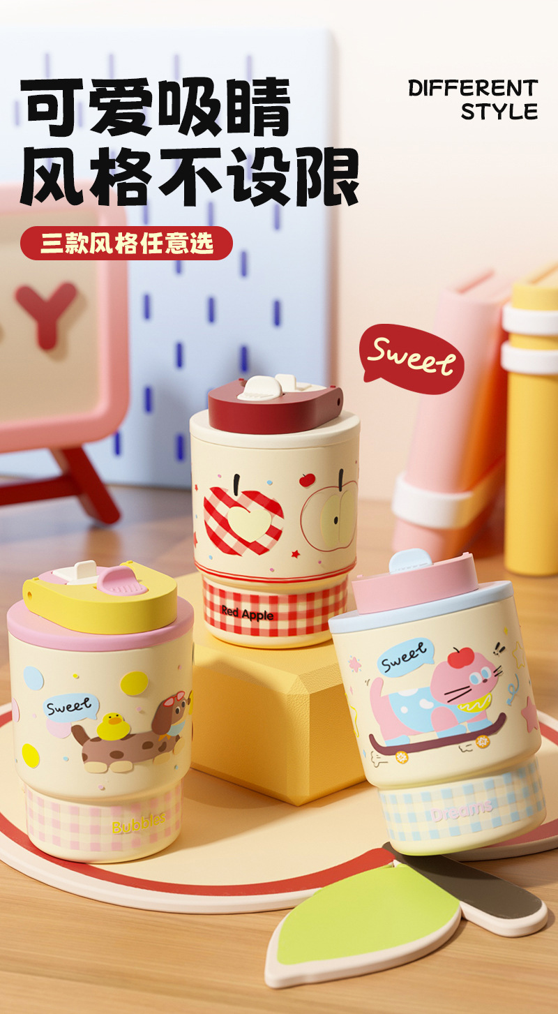 새로운 316 스테인레스 스틸 보온병 컵 만화 소녀 밀짚 고가치 워터 컵 휴대용 귀여운 더블 드링킹 커피 컵
