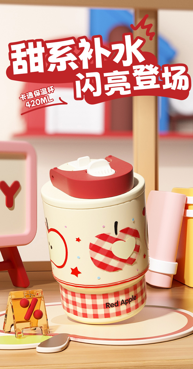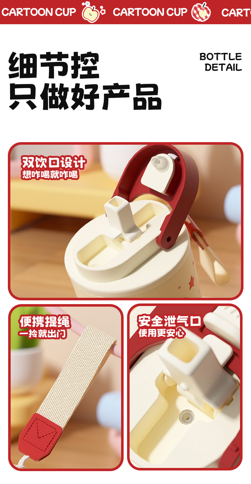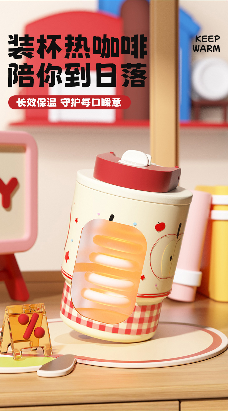 새로운 316 스테인레스 스틸 보온병 컵 만화 소녀 밀짚 고가치 워터 컵 휴대용 귀여운 더블 드링킹 커피 컵