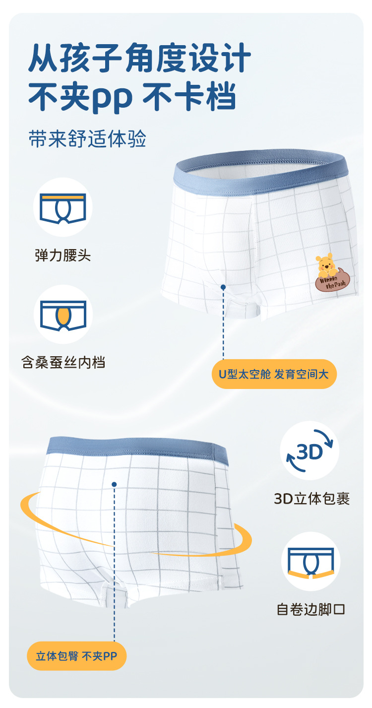 디즈니 7A 항균 멀버리 실크 바닥 가랑이 6팩 소년 속옷 여름 얇은 중대형 어린이 복서 팬티스토어 가기