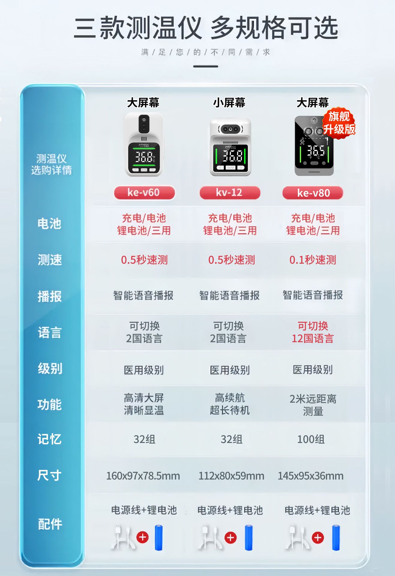 Youbeikang 적외선 온도계 벽걸이 형 자동 온도 측정기 지능형 음성 비접촉 온도계 충전식 온도계