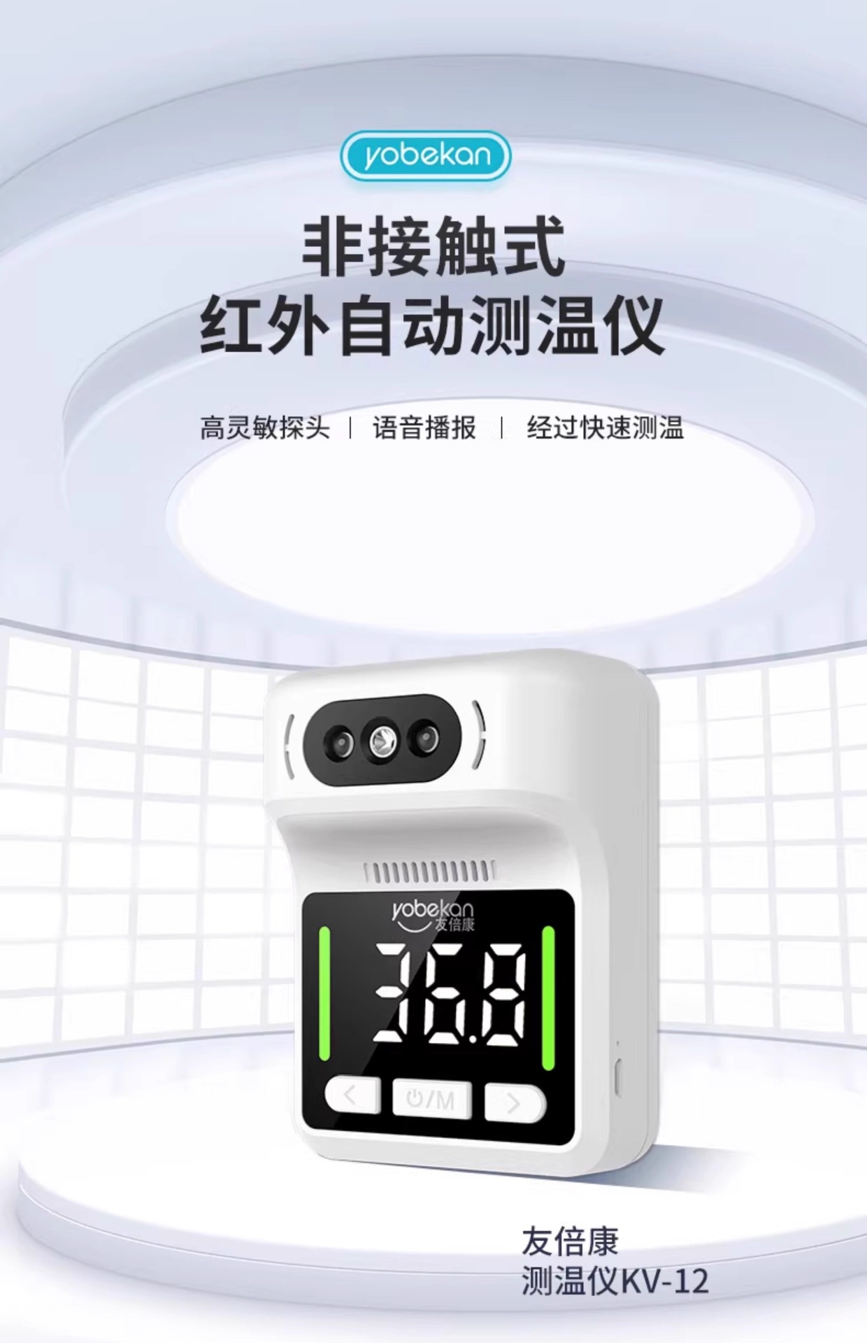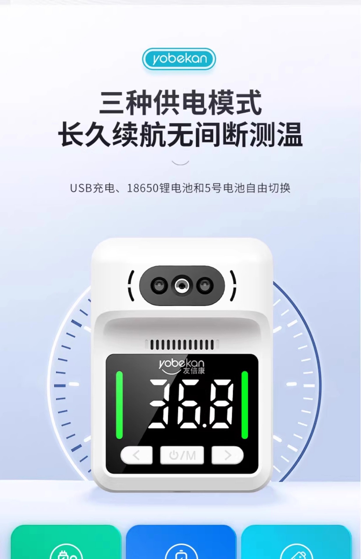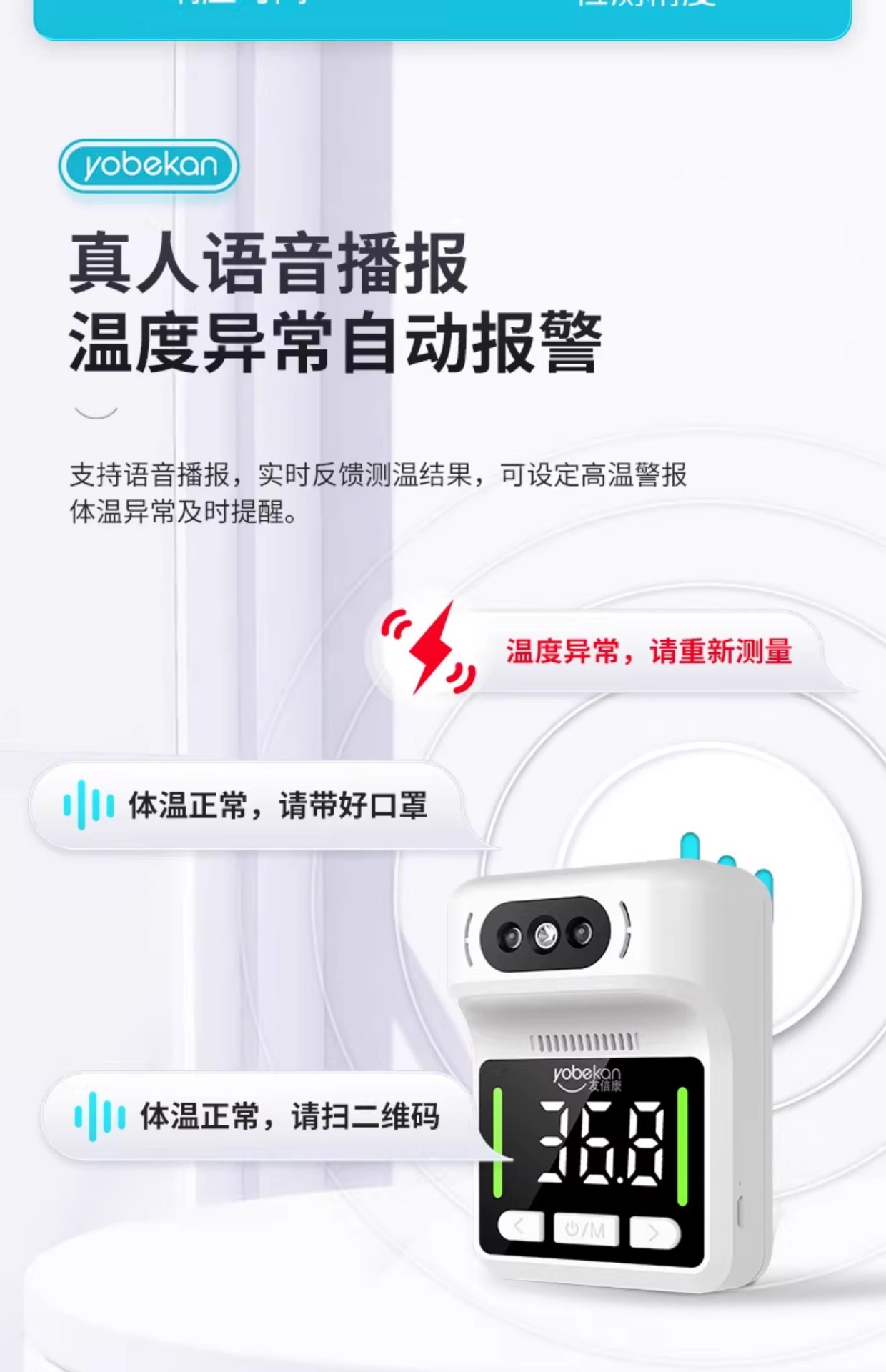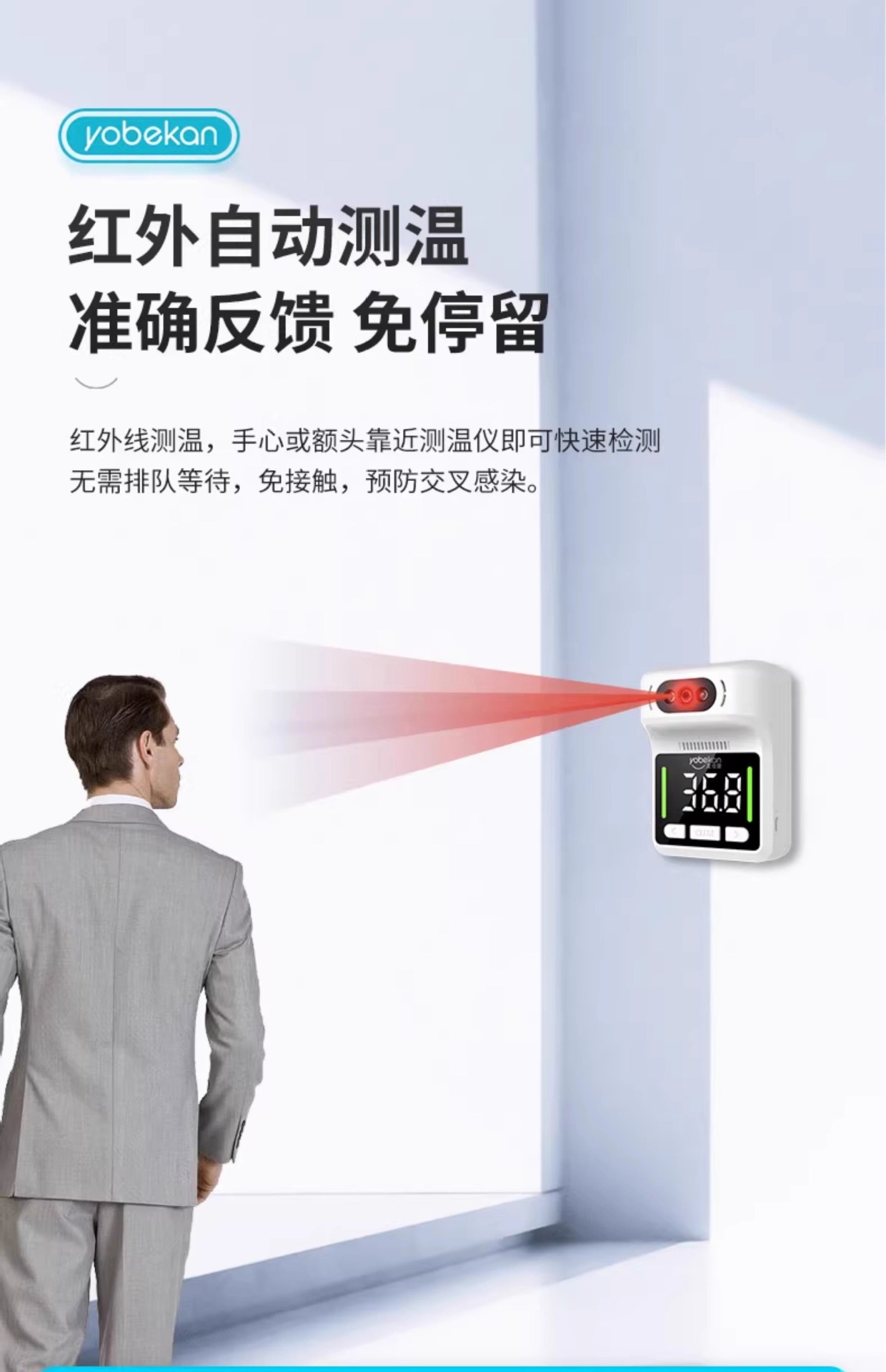 Youbeikang 적외선 온도계 벽걸이 형 자동 온도 측정기 지능형 음성 비접촉 온도계 충전식 온도계스토어 가기