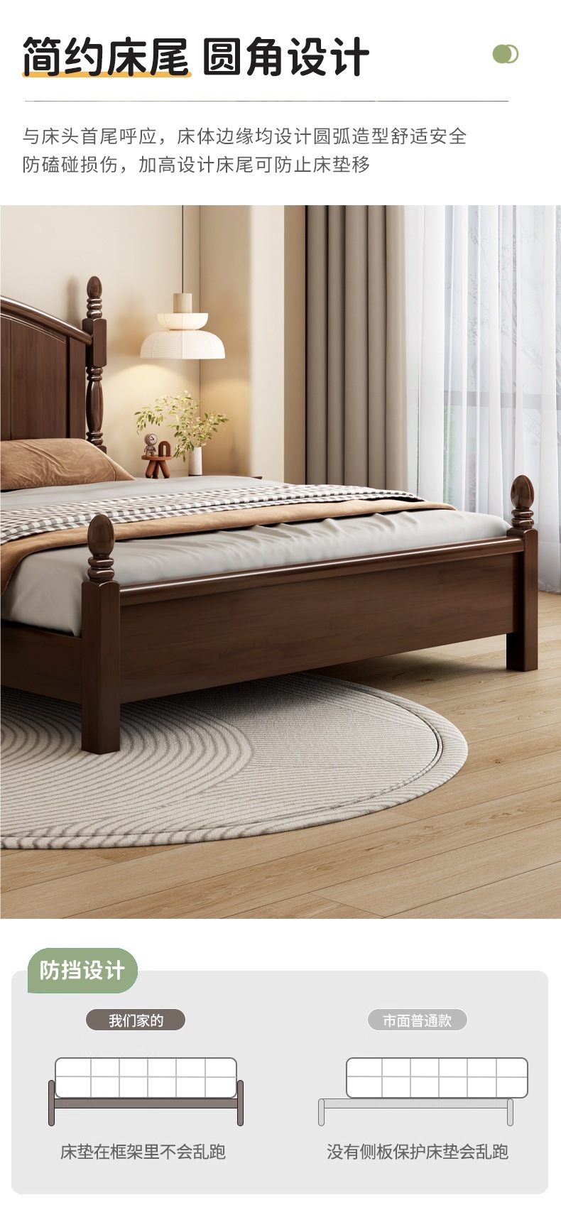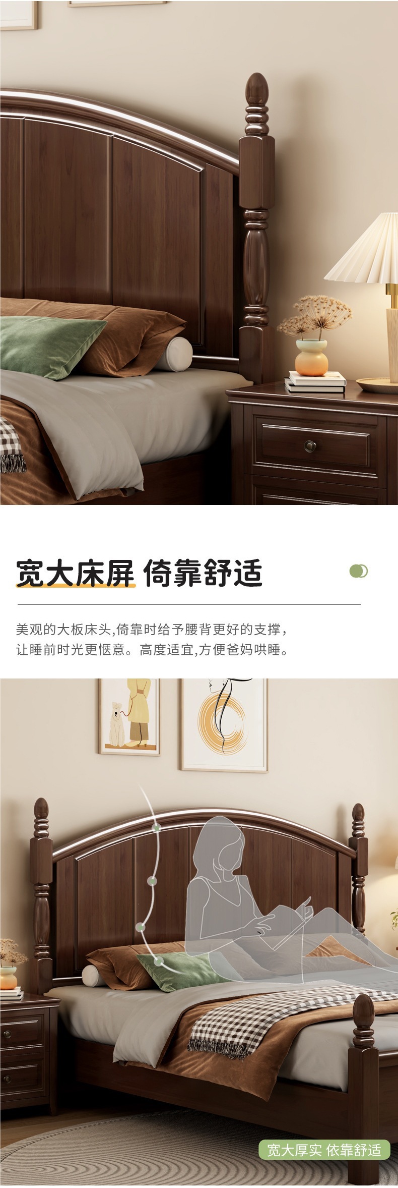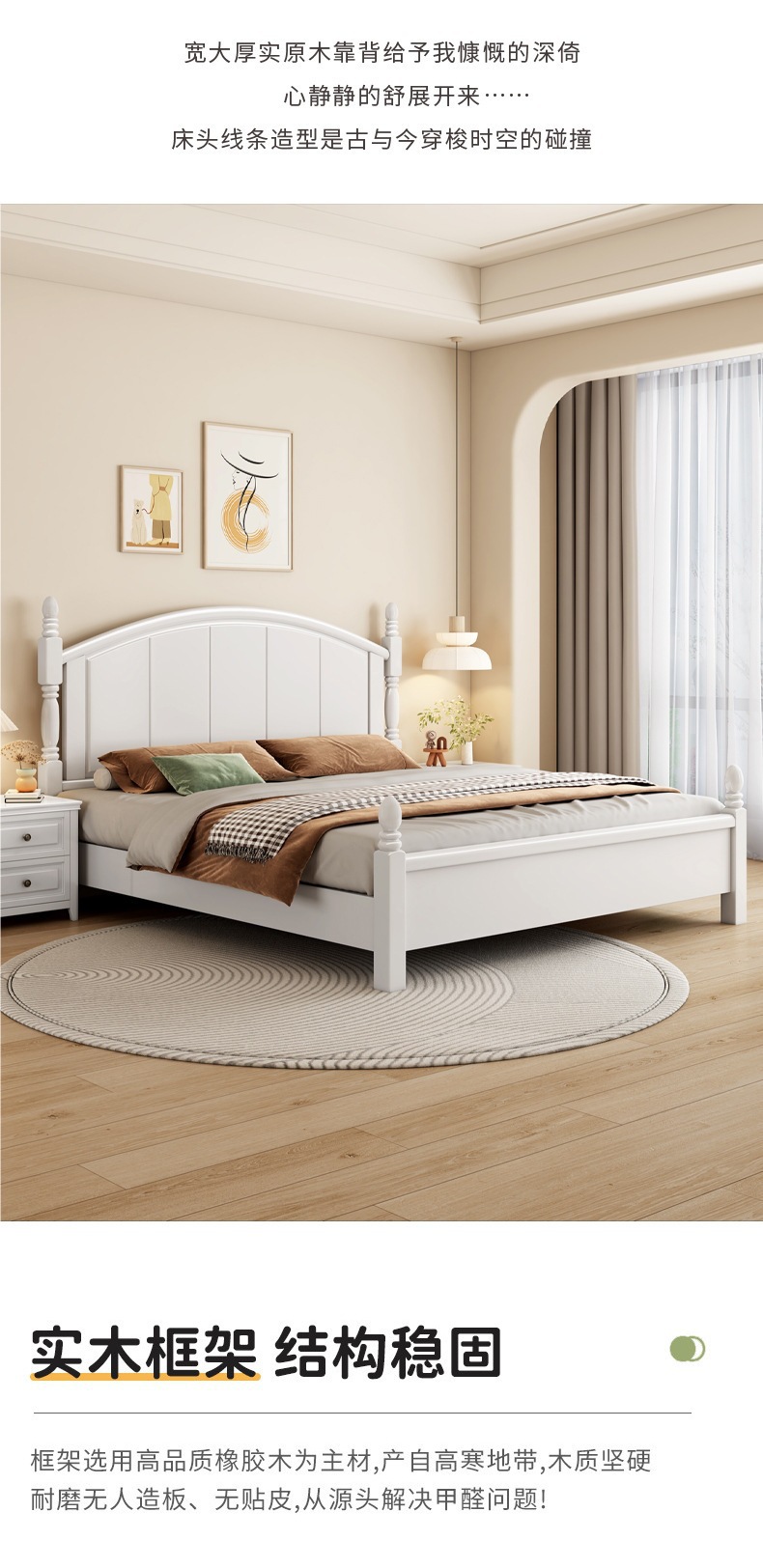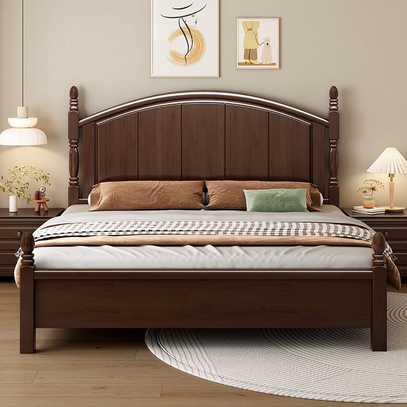 미국 복고풍 스타일 전체 단단한 나무 침대 로마 기둥 대형 침대 1.95m 현대 간단한 침실 더블 침대 웨딩 침대스토어 가기