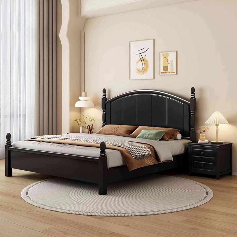 미국 복고풍 스타일 전체 단단한 나무 침대 로마 기둥 대형 침대 1.95m 현대 간단한 침실 더블 침대 웨딩 침대