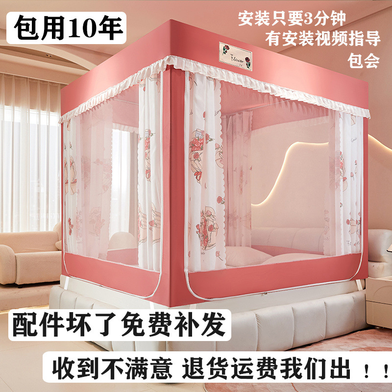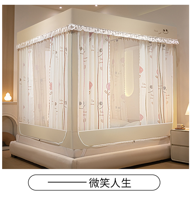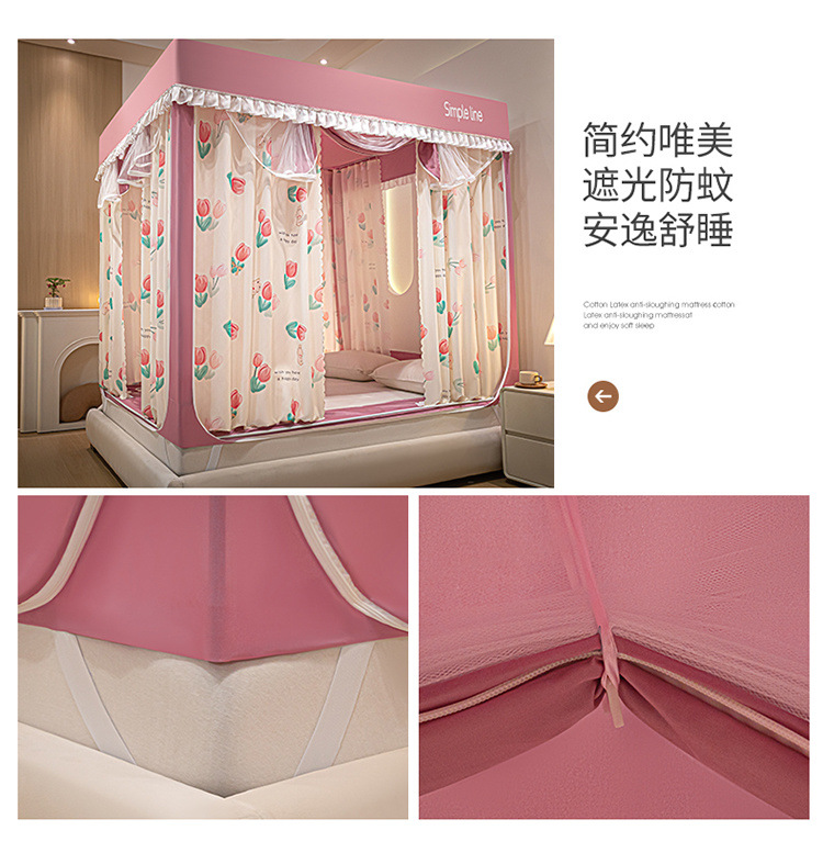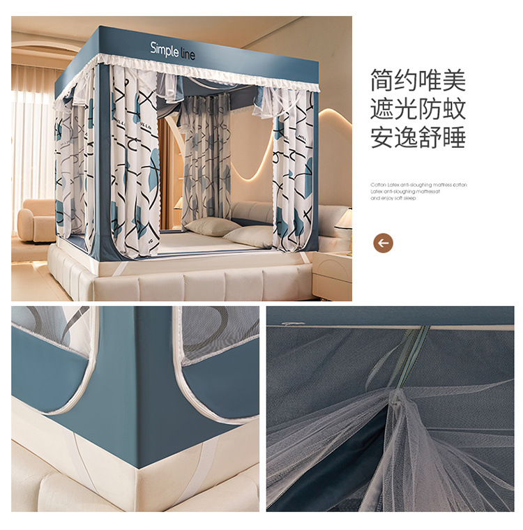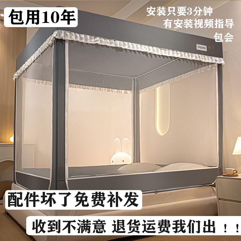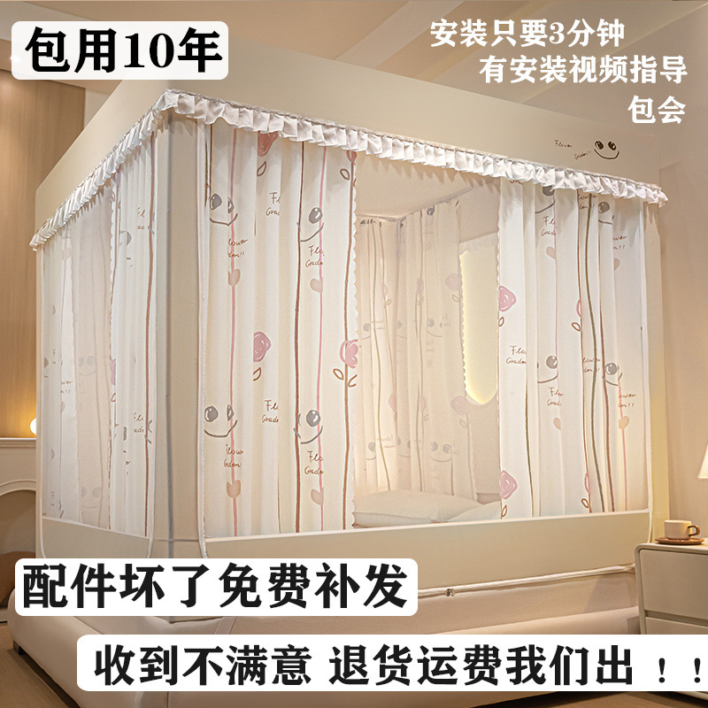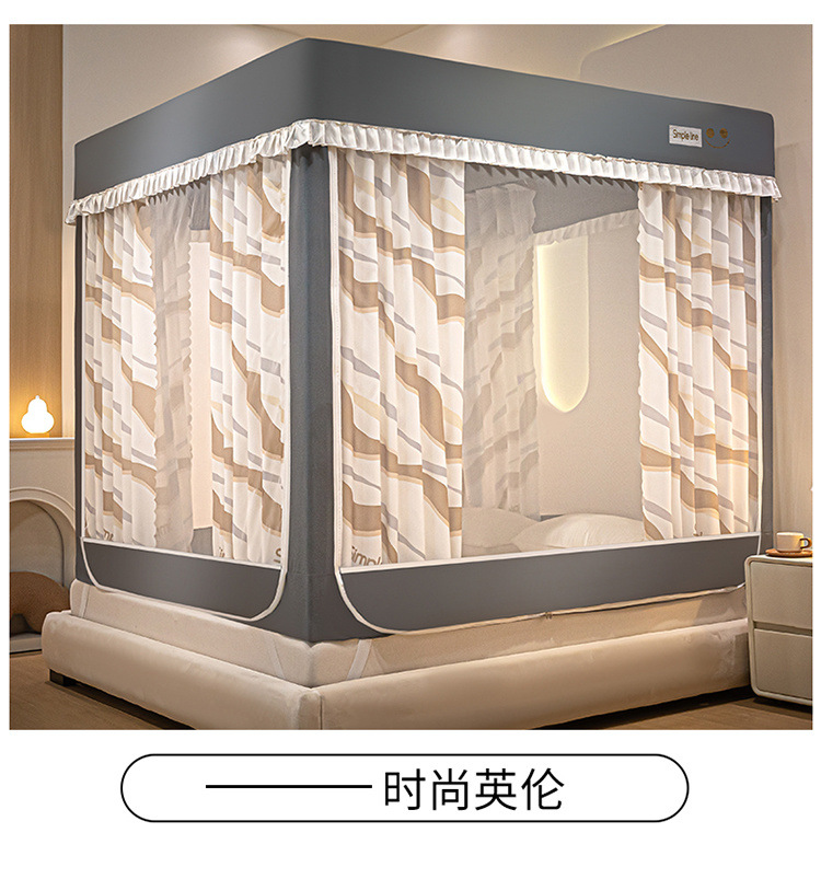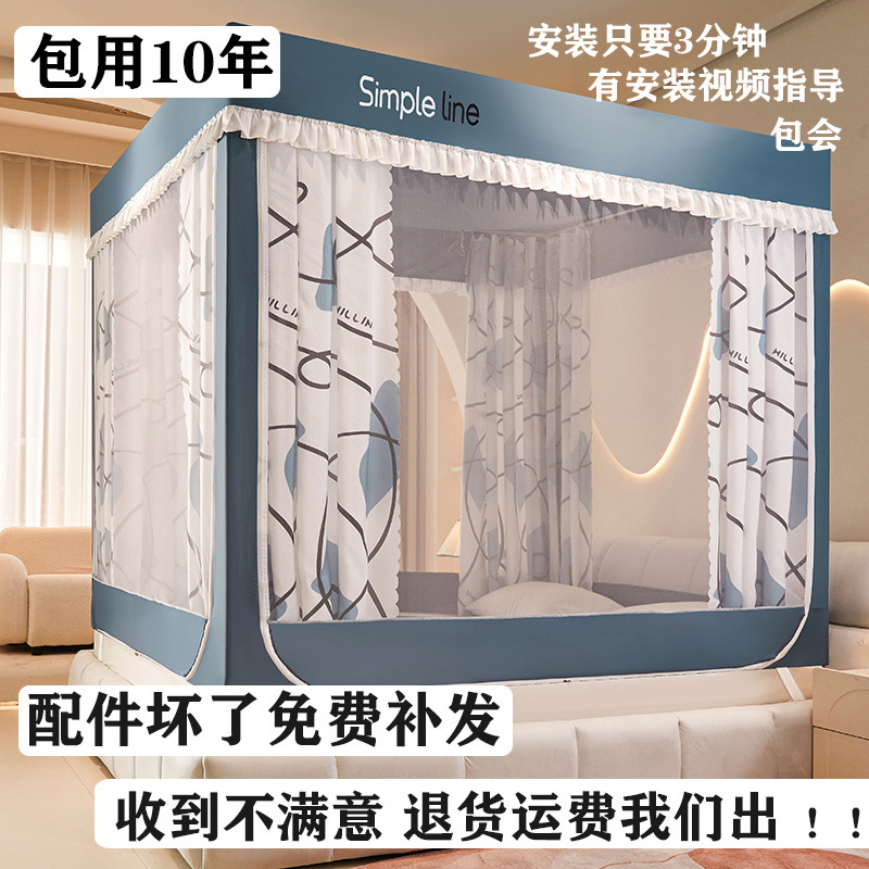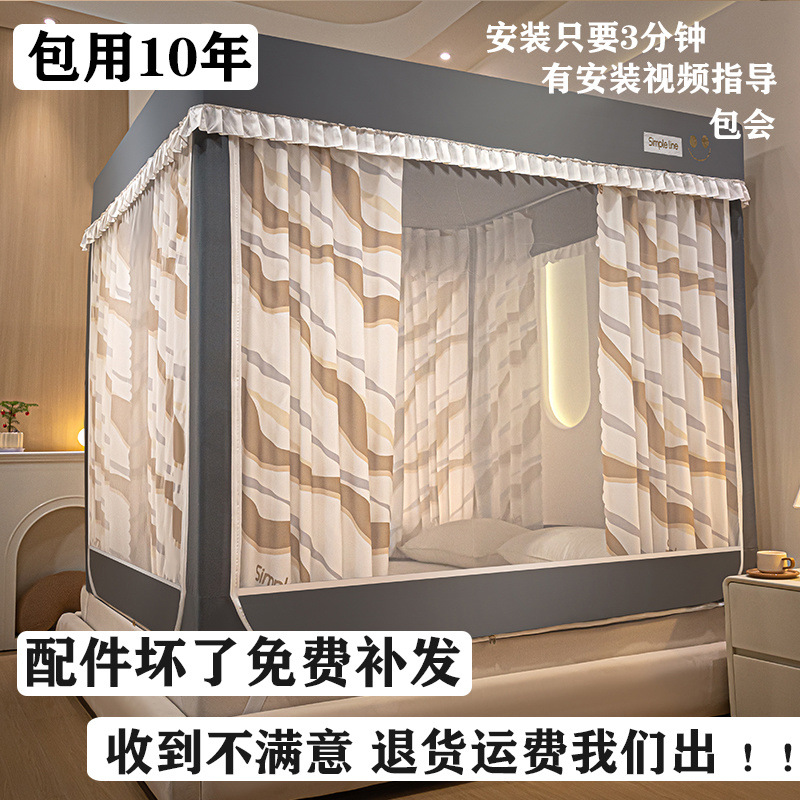 침대에 앉을 때 낙하 방지 모기장 지퍼, 가정용 침실 몽골리안 텐트 일체형 차광 침대 커튼 2024 새로운 방진 및 방풍스토어 가기