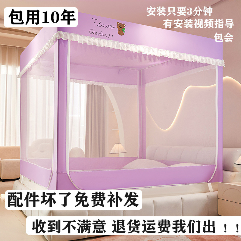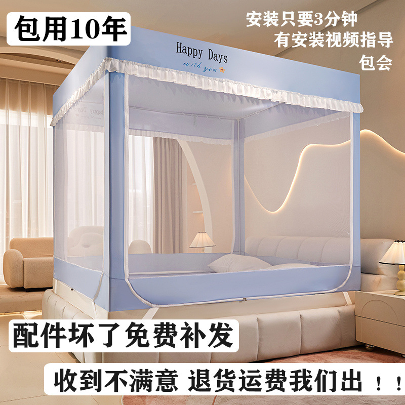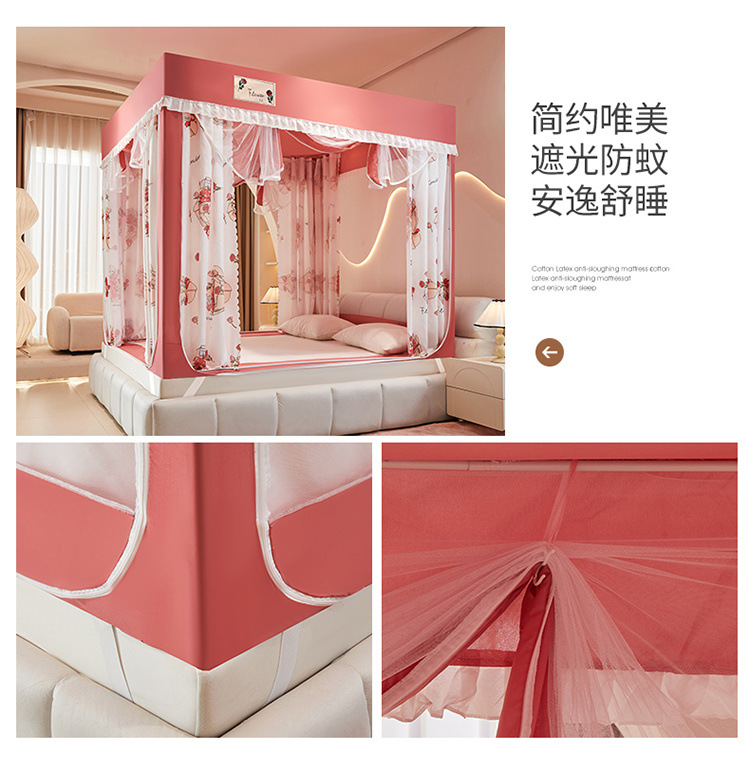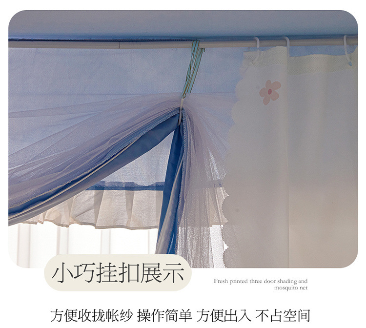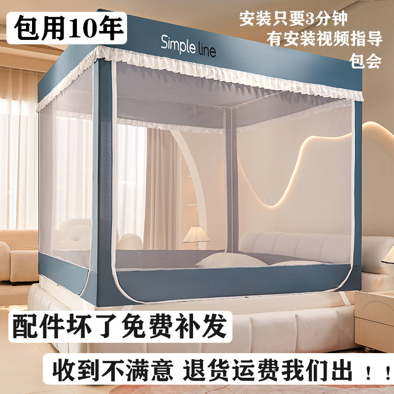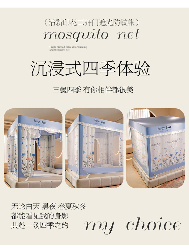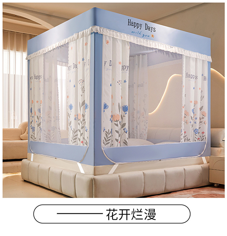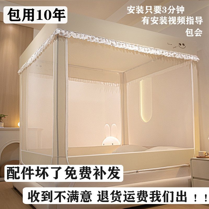 침대에 앉을 때 낙하 방지 모기장 지퍼, 가정용 침실 몽골리안 텐트 일체형 차광 침대 커튼 2024 새로운 방진 및 방풍스토어 가기