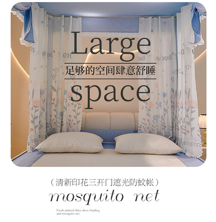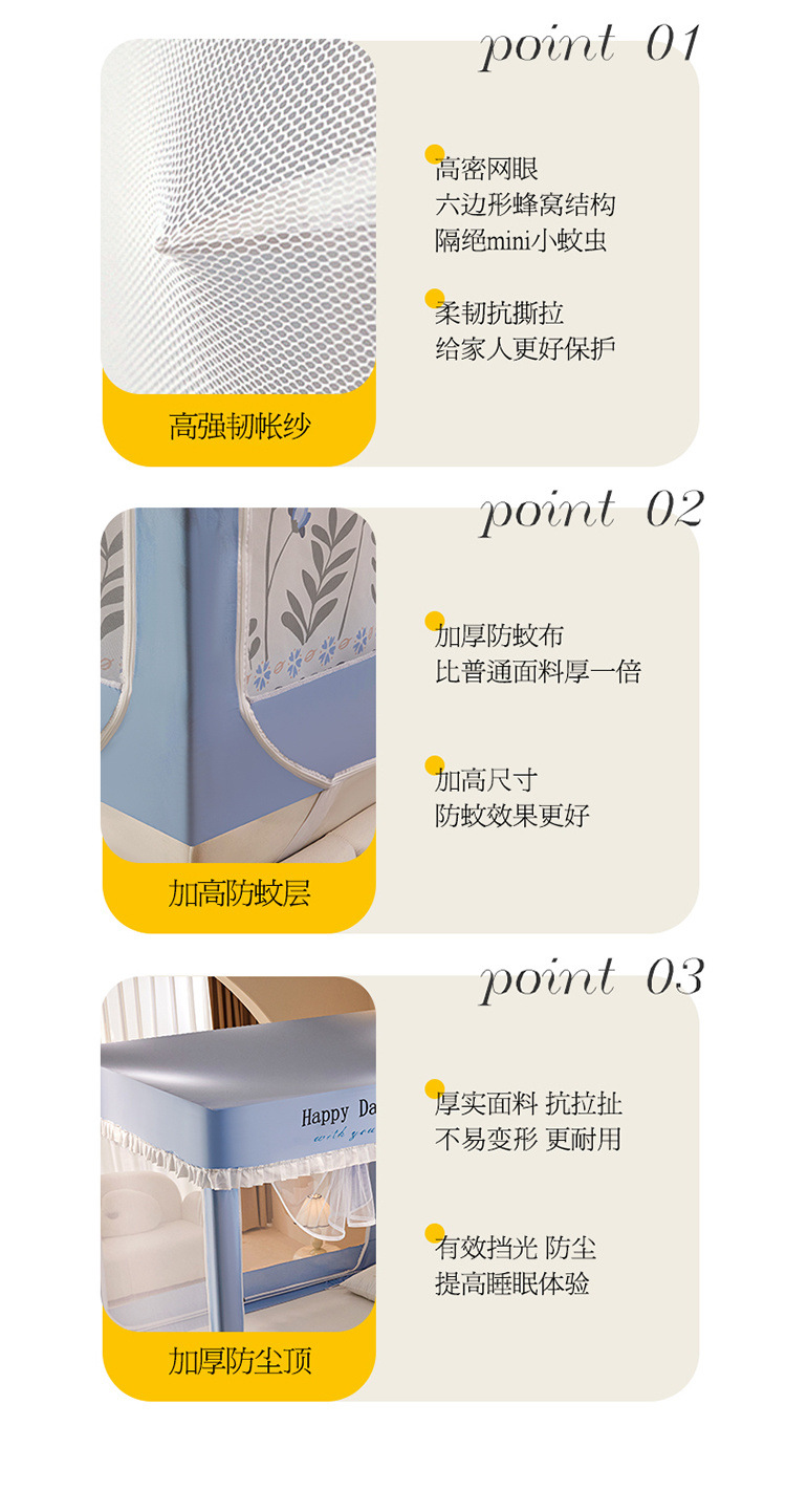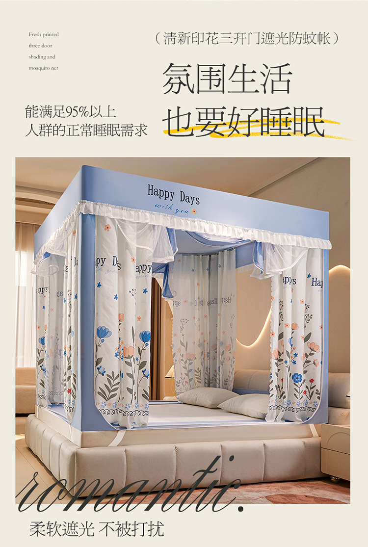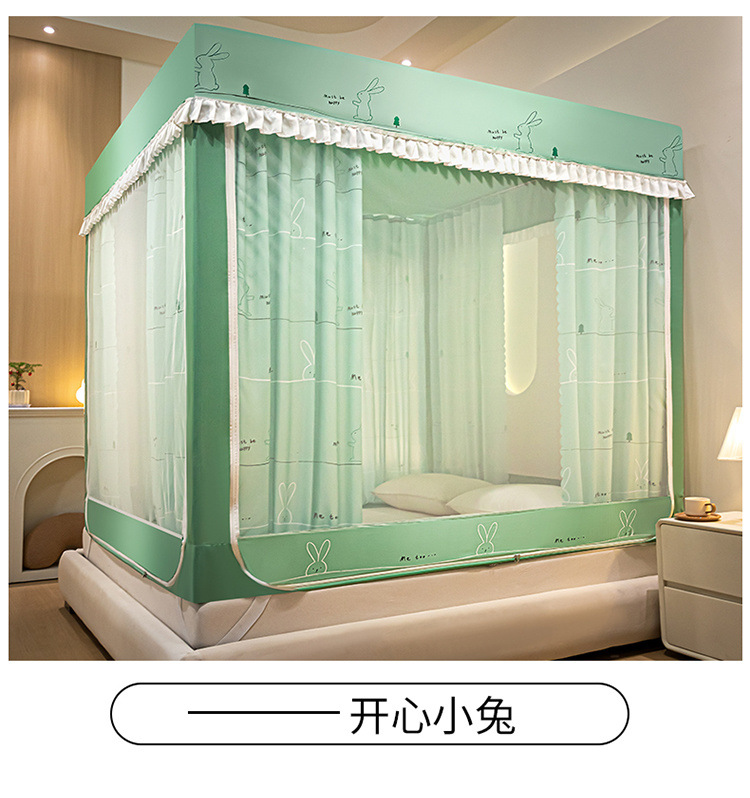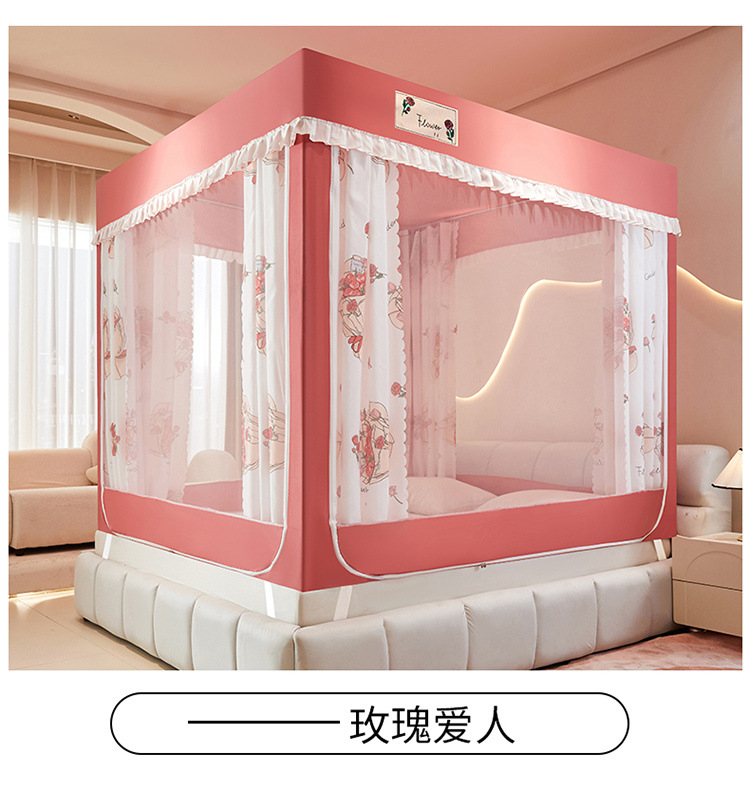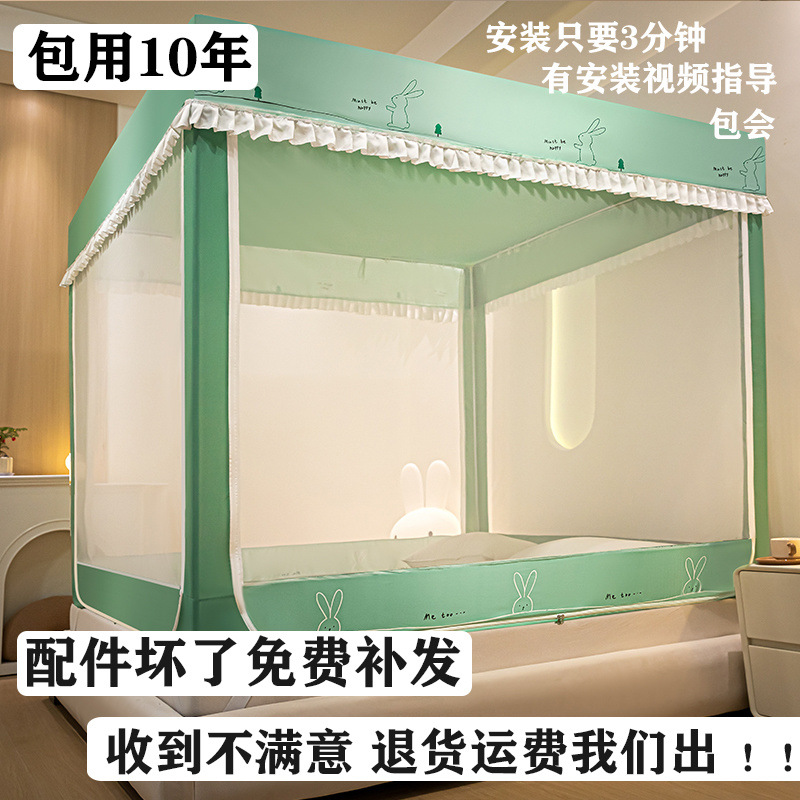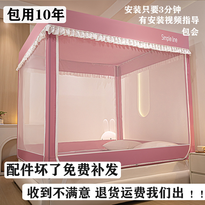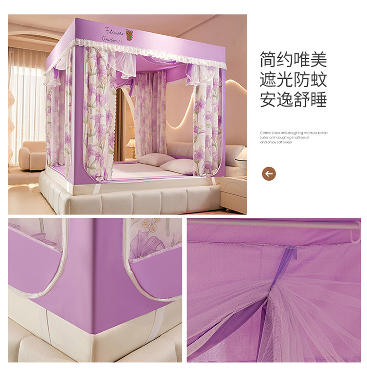 침대에 앉을 때 낙하 방지 모기장 지퍼, 가정용 침실 몽골리안 텐트 일체형 차광 침대 커튼 2024 새로운 방진 및 방풍스토어 가기