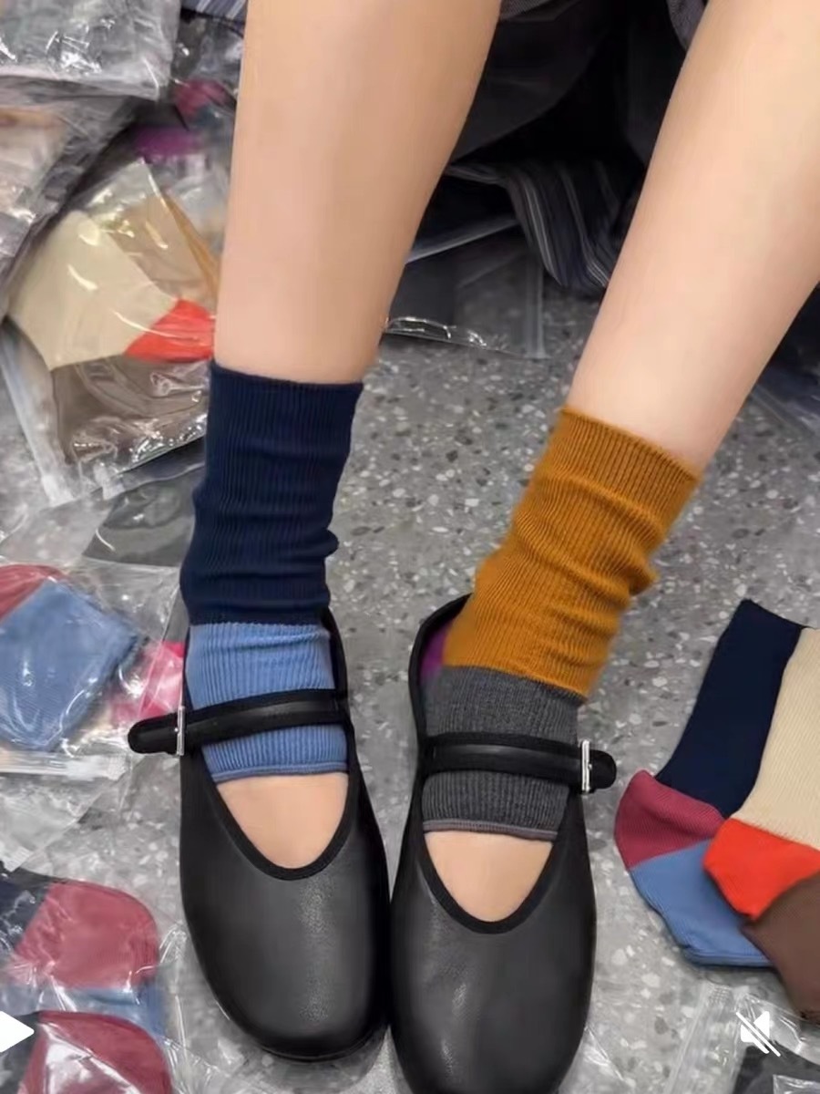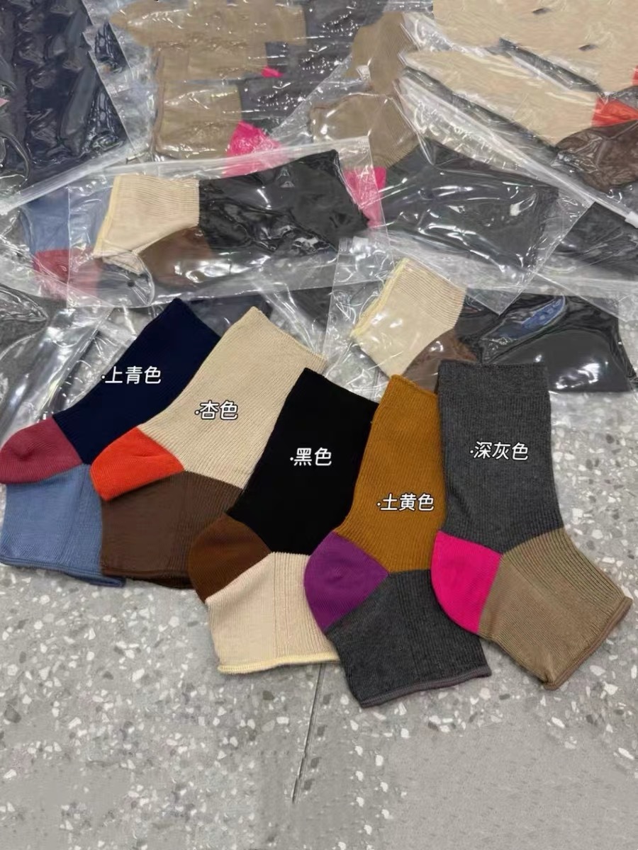 니치 디자인 대비 색상 발 스타킹 반 손바닥 양말 맞춤형 트렌디 한 이중 바늘 여름 여성용 얇은 양말스토어 가기