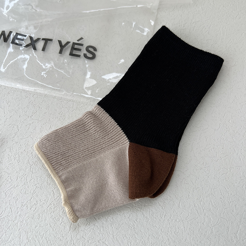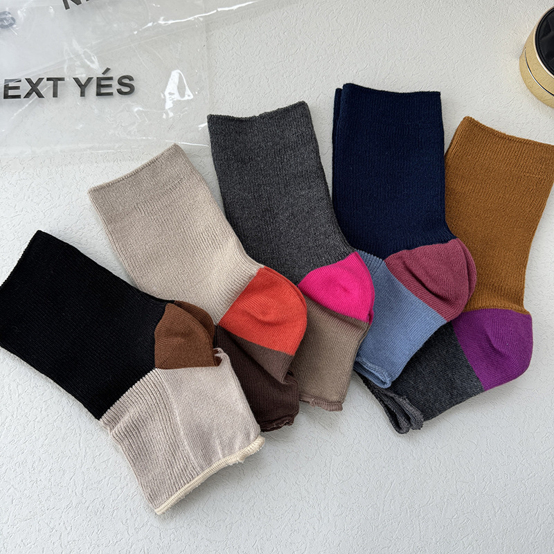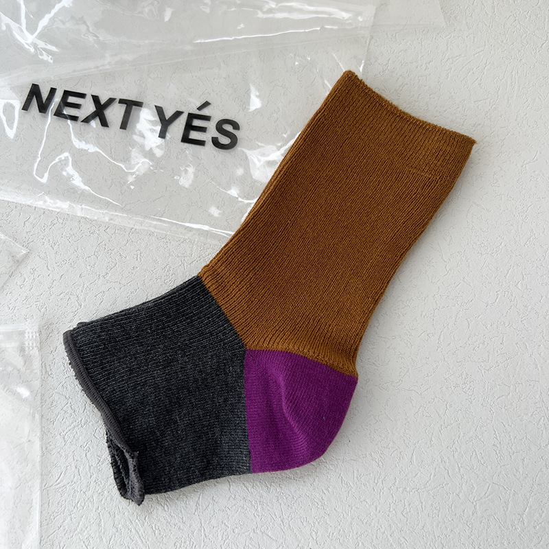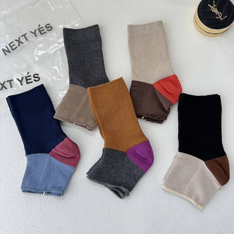 니치 디자인 대비 색상 발 스타킹 반 손바닥 양말 맞춤형 트렌디 한 이중 바늘 여름 여성용 얇은 양말