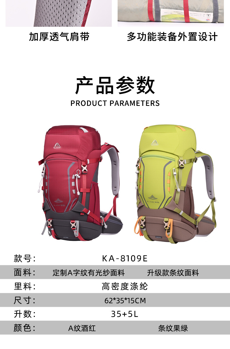 Ai Wang의 새로운 업그레이드 35+5 리터 나일론 발수 등산 가방 남성용 및 여성용 야외 하이킹 대용량 배낭스토어 가기