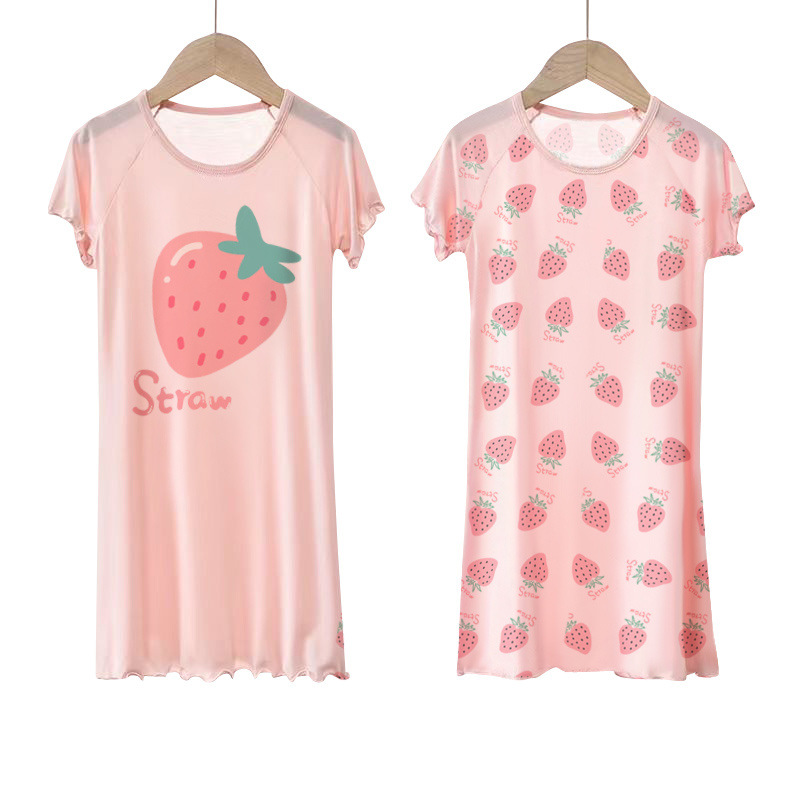 여아 잠옷 모달 아이스 실크 여름 얇은 공주 스타일 9 중형 및 대형 어린이 12세 반팔 베리 대형 어린이 잠옷스토어 가기