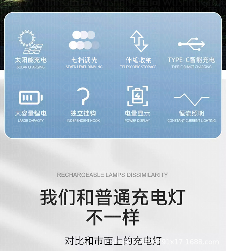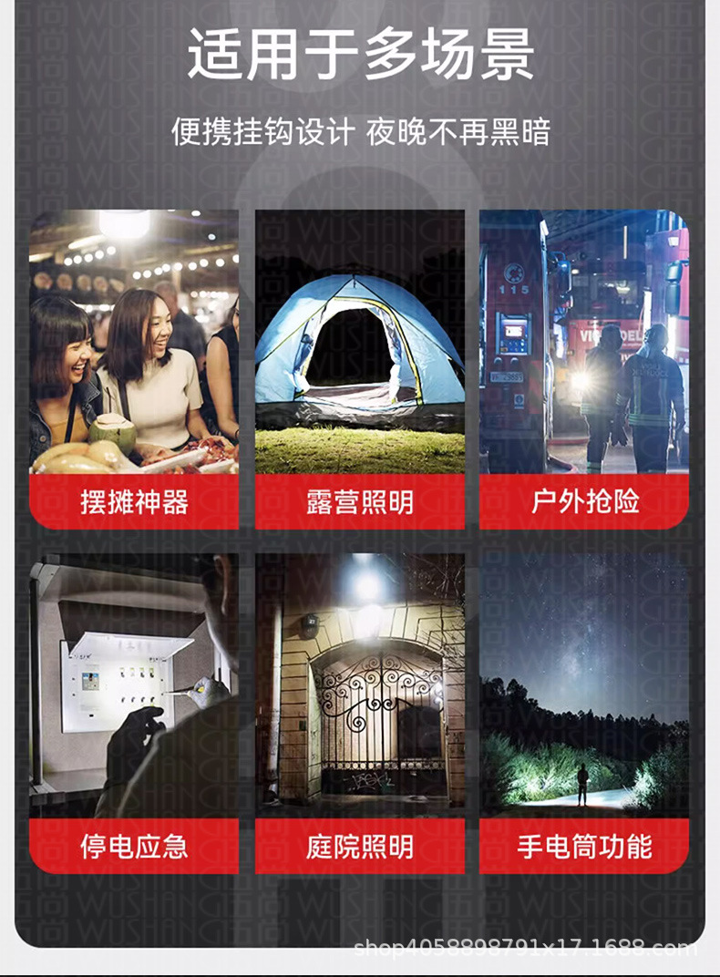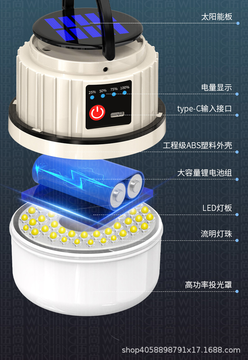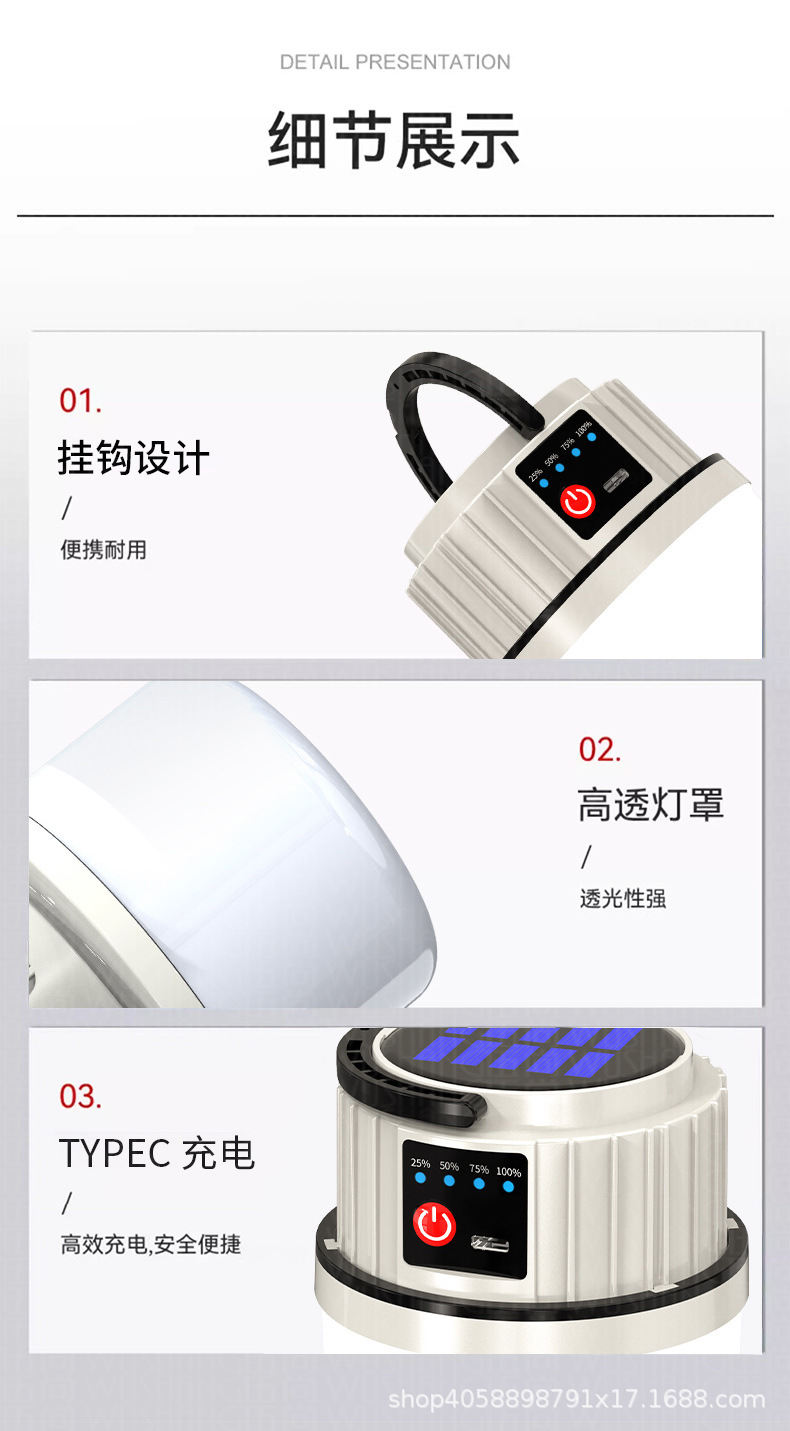 Wushang 크로스 보더 캠핑 라이트 휴대용 교수형 램프 이중 용도 야외 태양 광 소형 전구 조명 교수형 텐트 캠핑 라이트스토어 가기