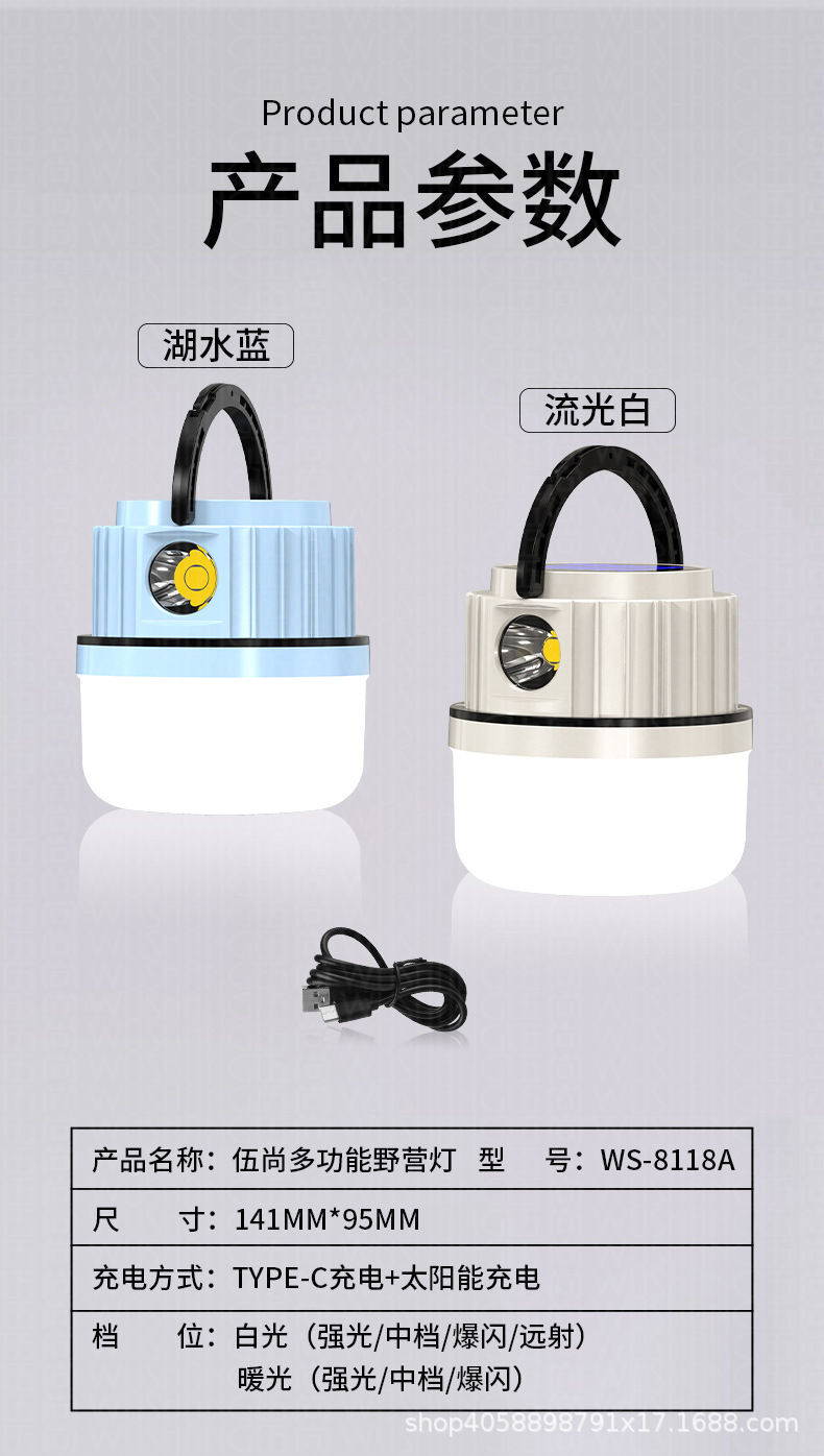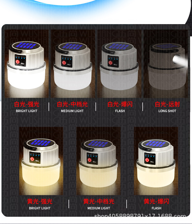 Wushang 크로스 보더 캠핑 라이트 휴대용 교수형 램프 이중 용도 야외 태양 광 소형 전구 조명 교수형 텐트 캠핑 라이트