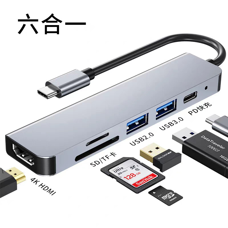 6-in-one 도킹 스테이션 유형-c 허브 컴퓨터 4K HD USB-C PD 충전 HDMI 허브 도킹 스테이션