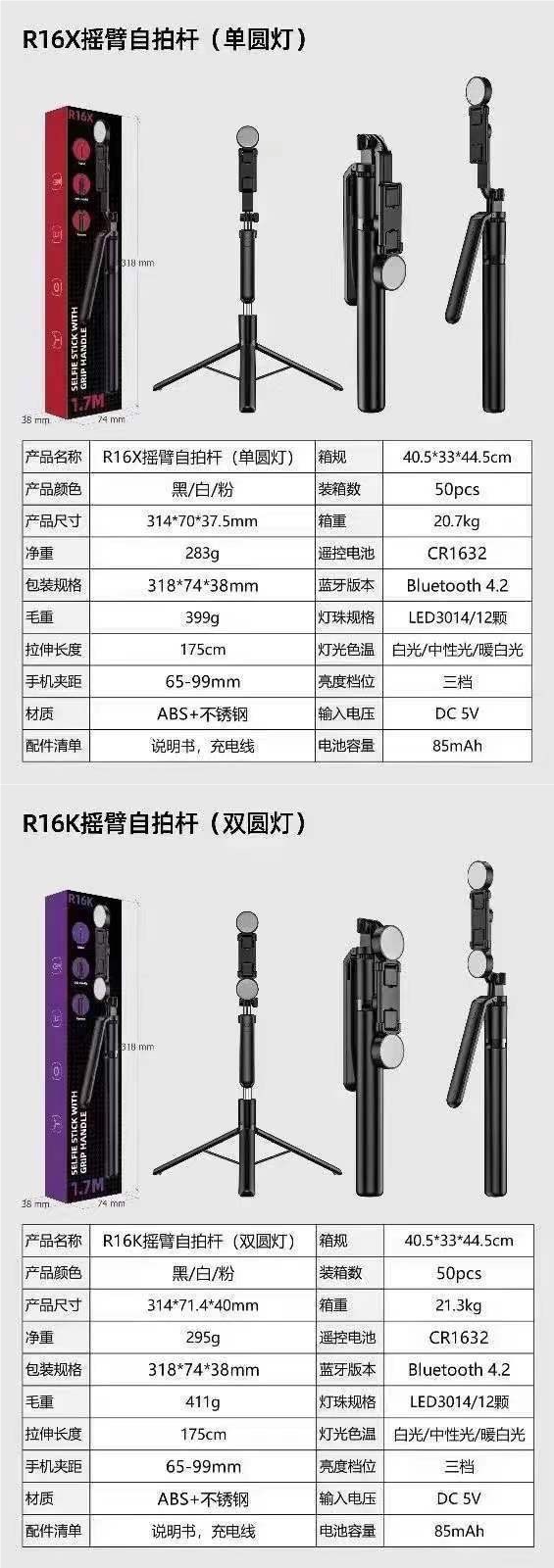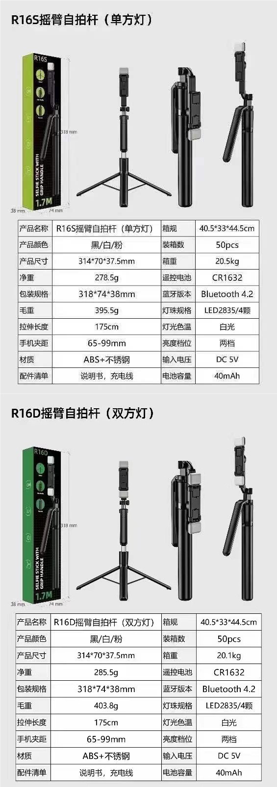 • 【R16D】양면 조명 셀카봉 4축 흔들림 방지