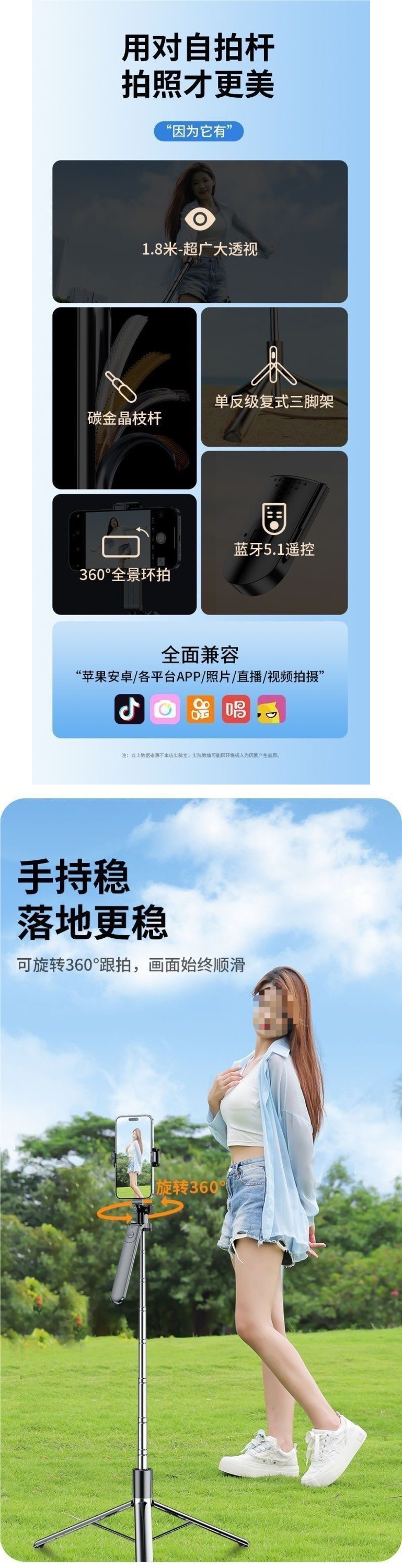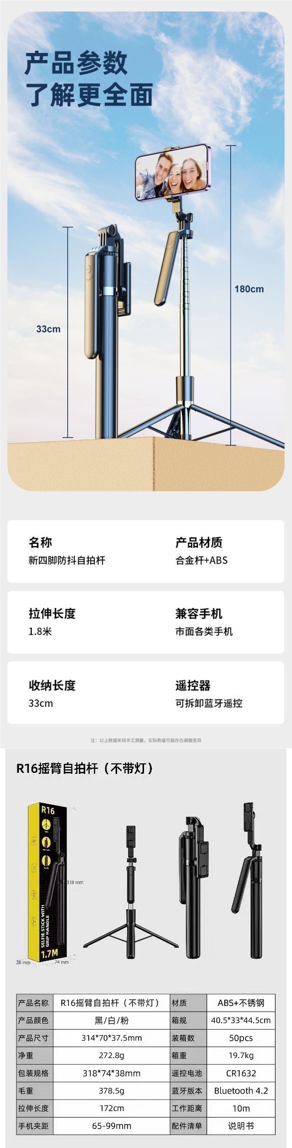 • 【R16S】4축 손떨림 방지 기능을 갖춘 단일 조명 셀카봉