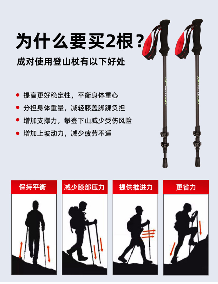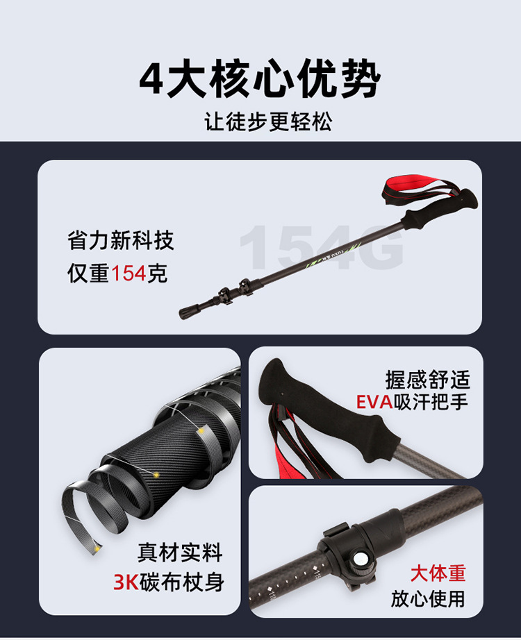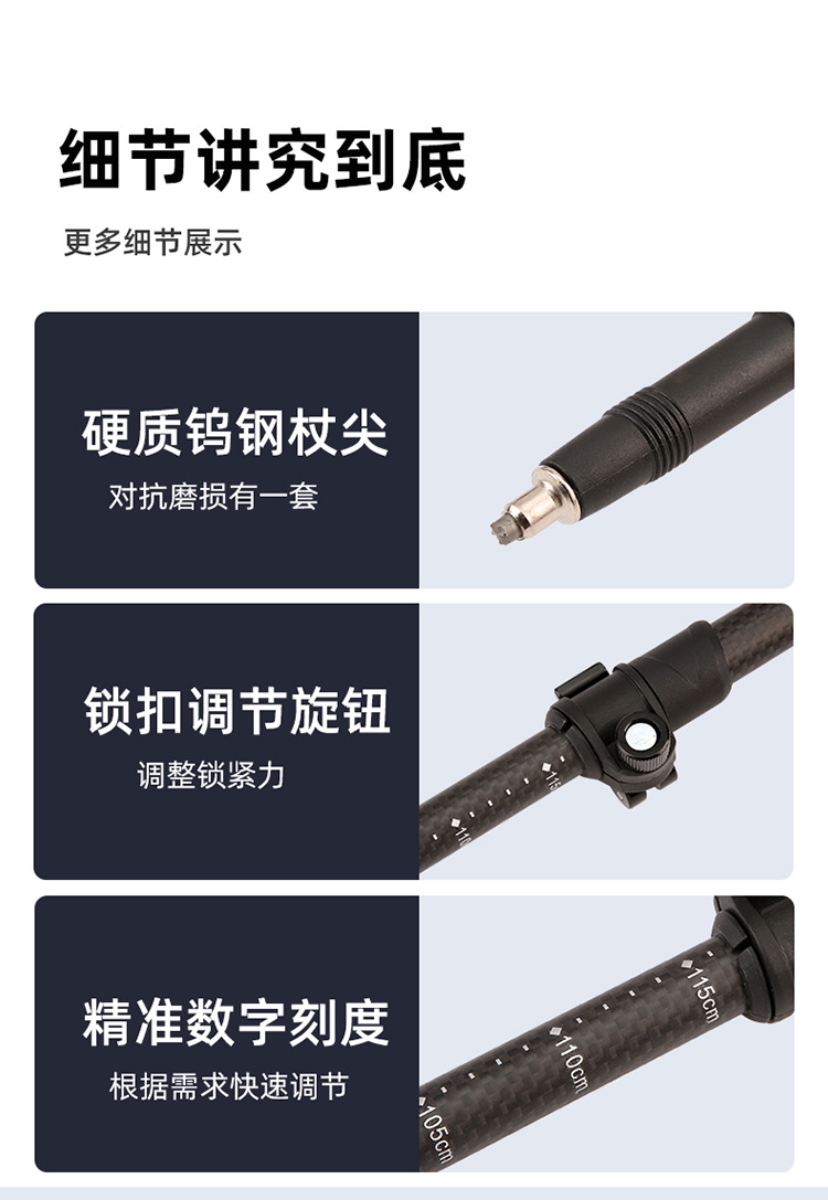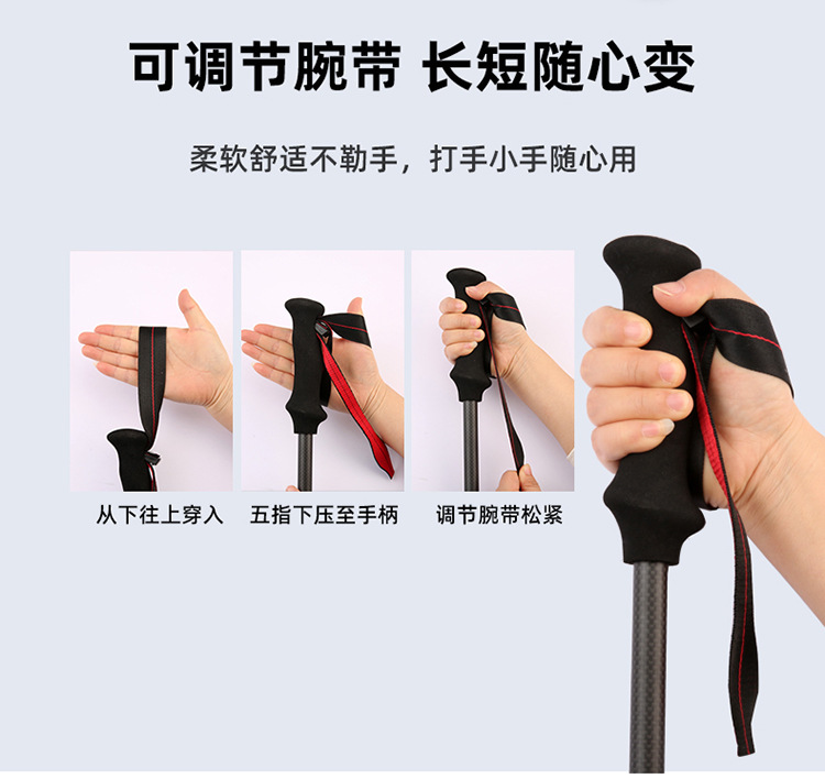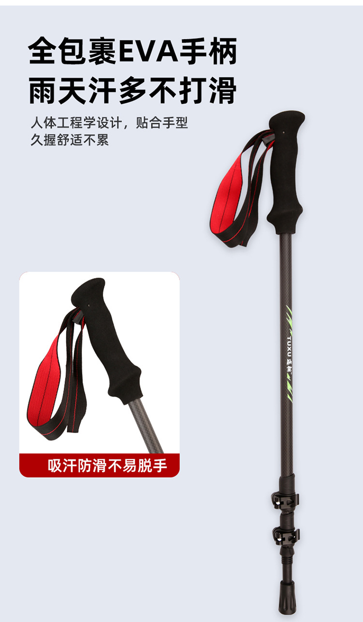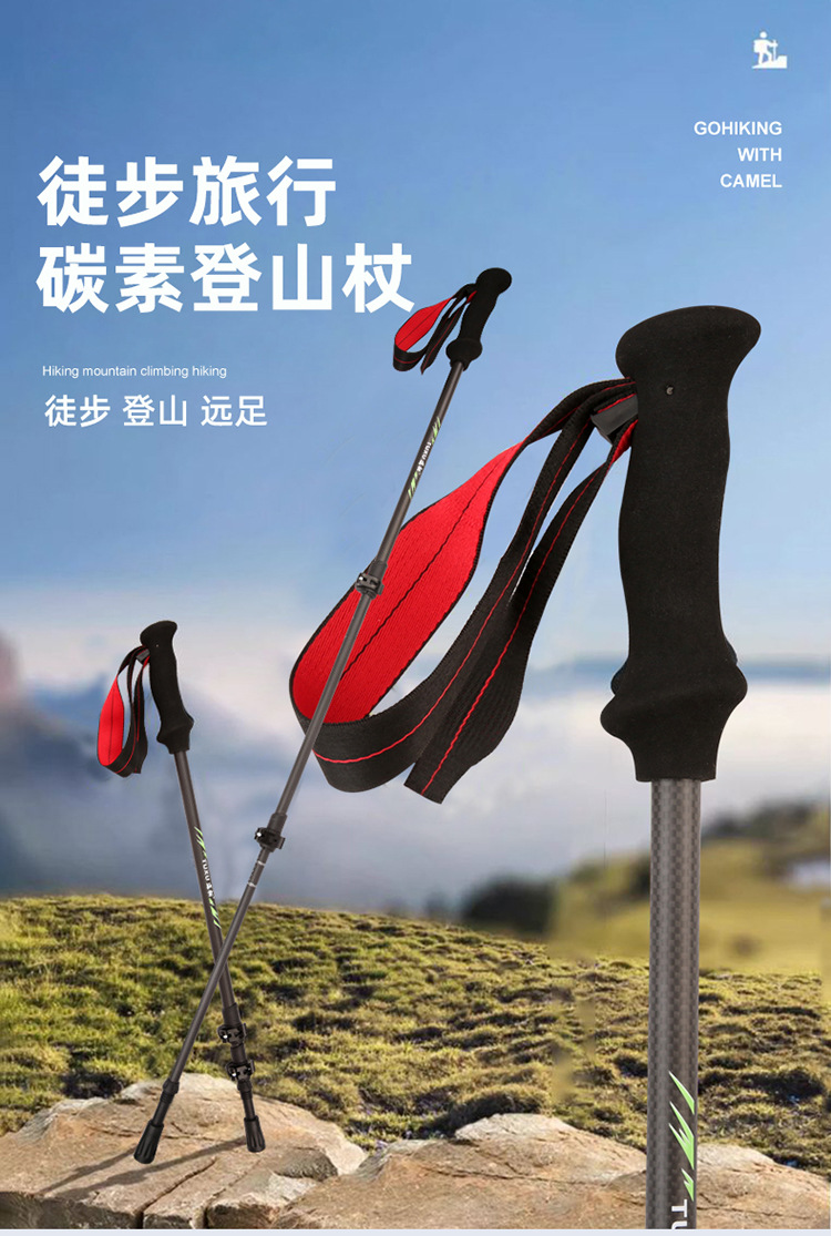 탄소 섬유 트레킹 스틱 공장 직접 공급 초경량 텔레스코픽 트레킹 스틱 경량 휴대용 야외 등산 및 하이킹 스틱