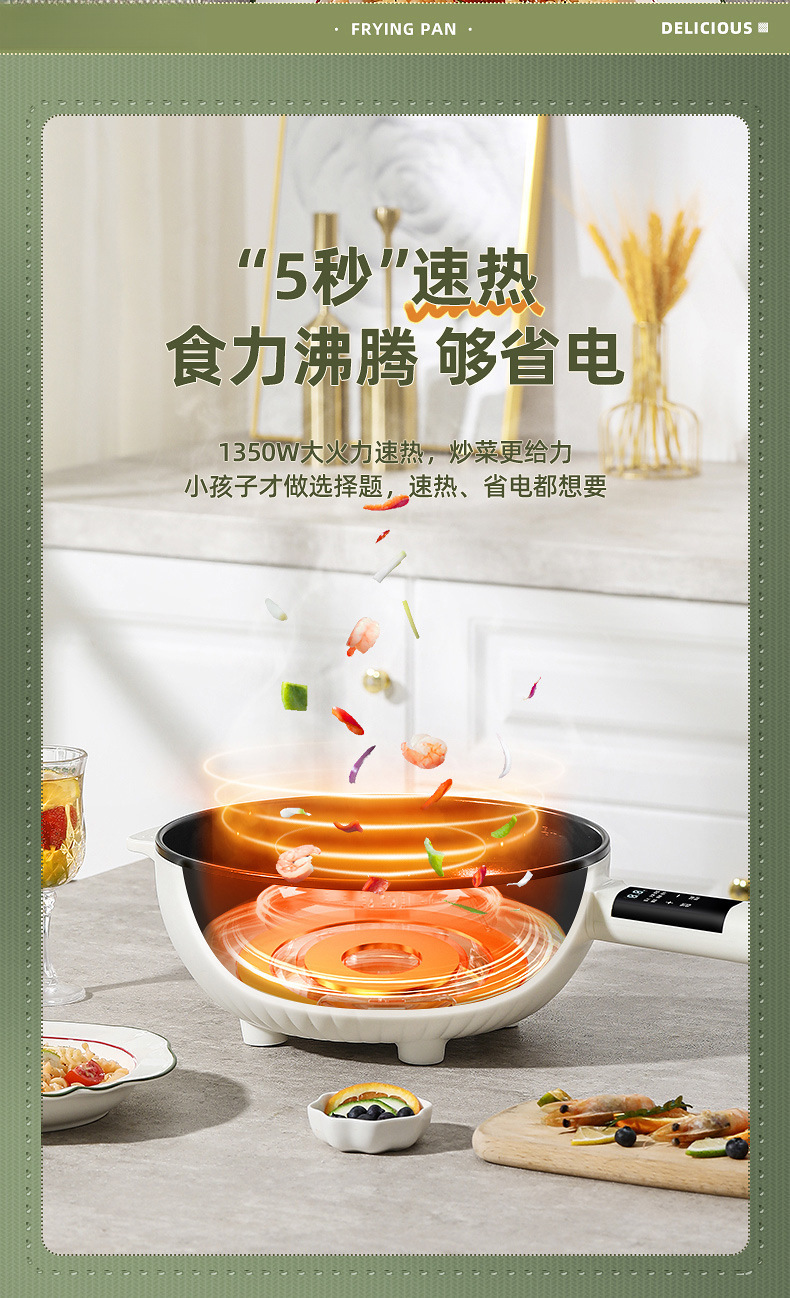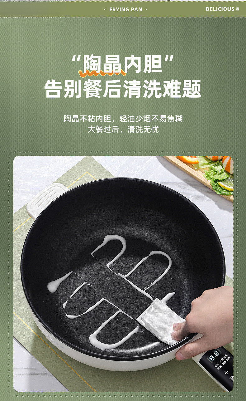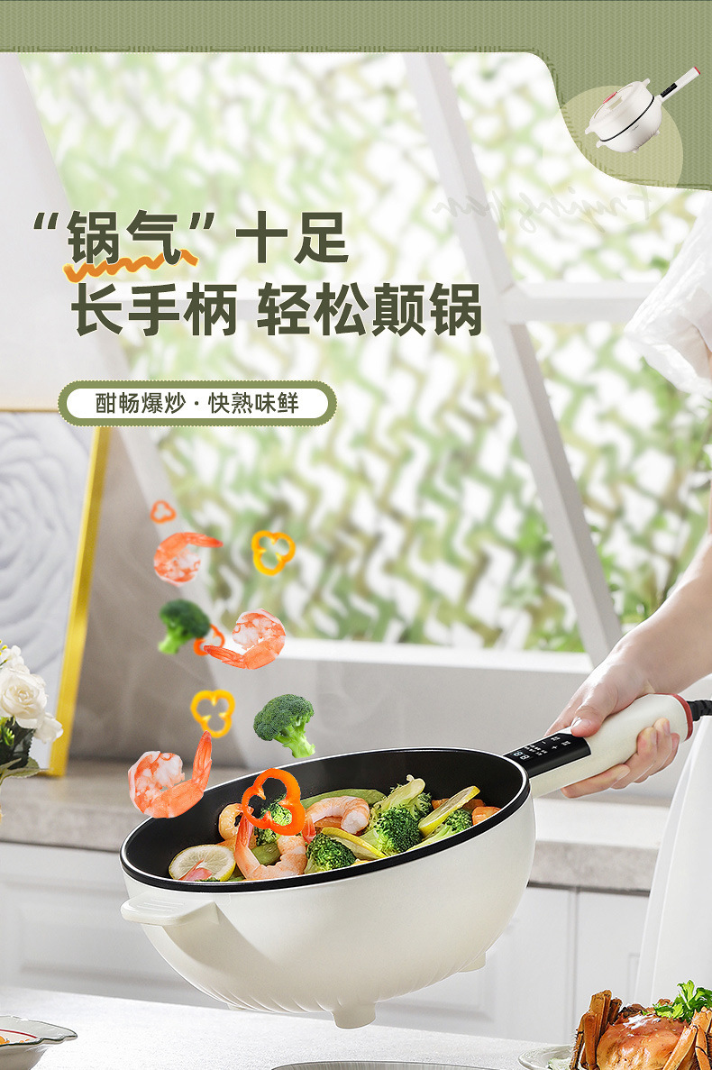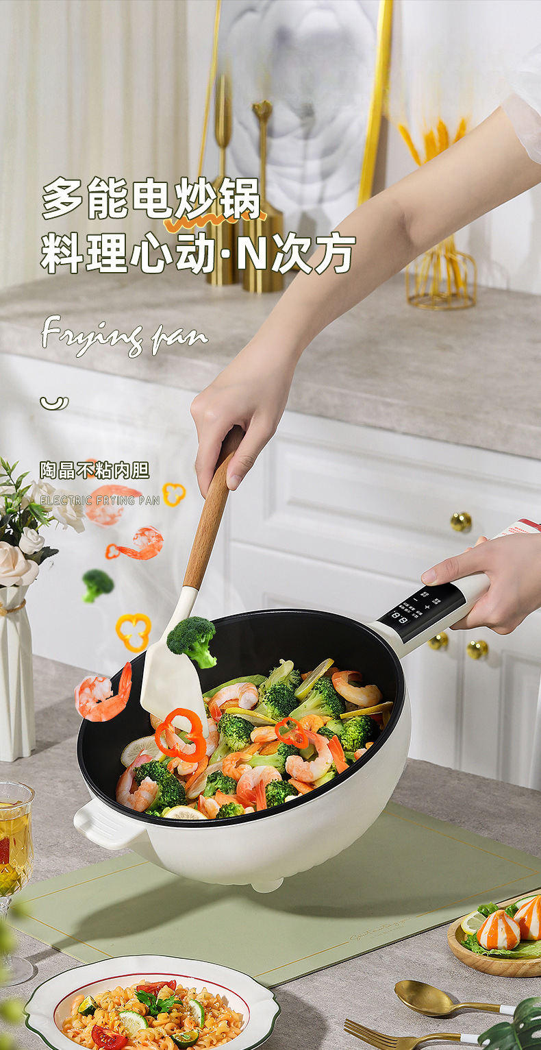 전기 조리냄비, 튀김, 볶음, 삶기, 올인원 다기능 논스틱 전기냄비, 가정용 전기냄비, 찜, 볶음, 튀김 전기냄비