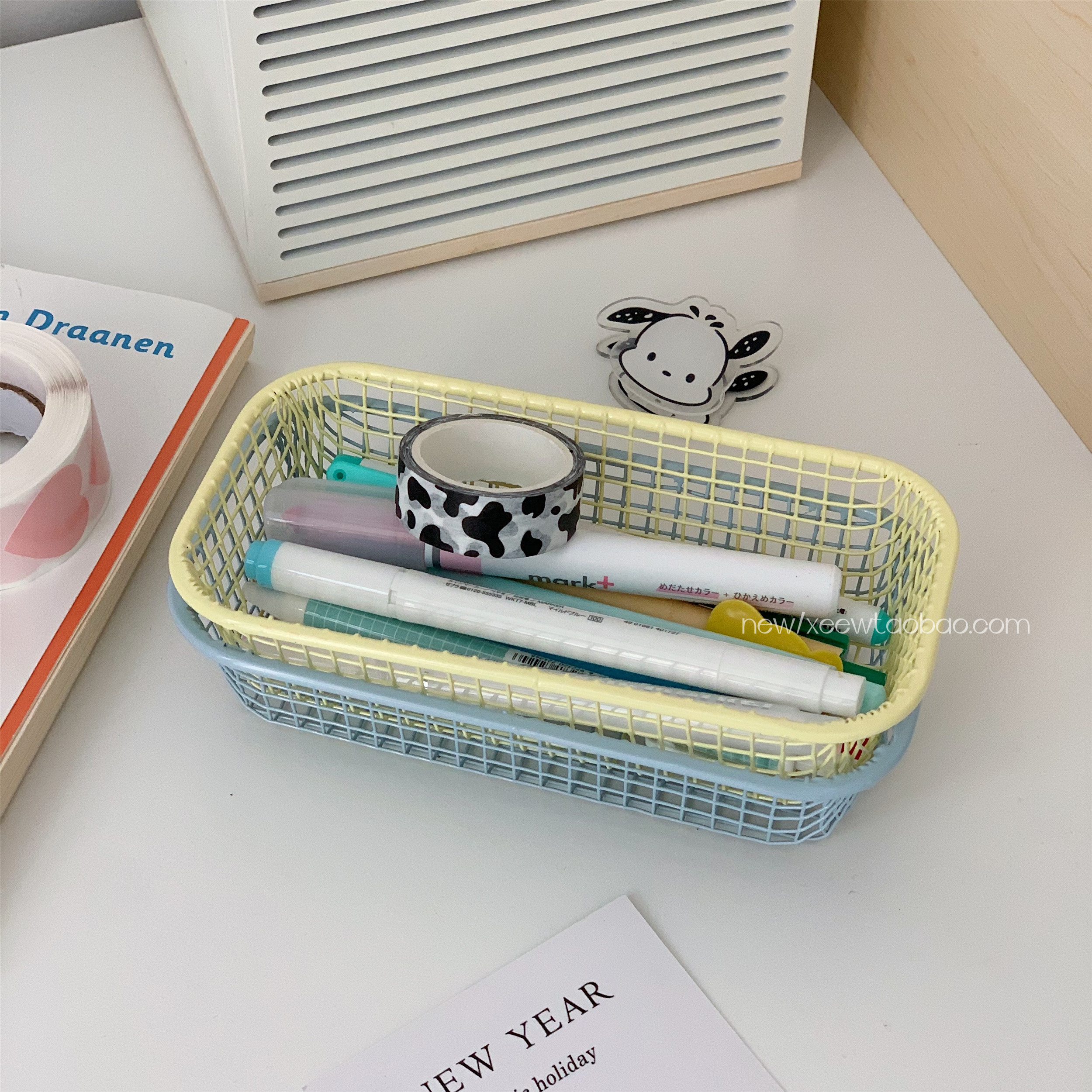 Ins 스타일 책상 잡화 작은 물건 보관 바구니 학생 사무실 문구 보관 상자 데스크탑 철 정리 및 보관