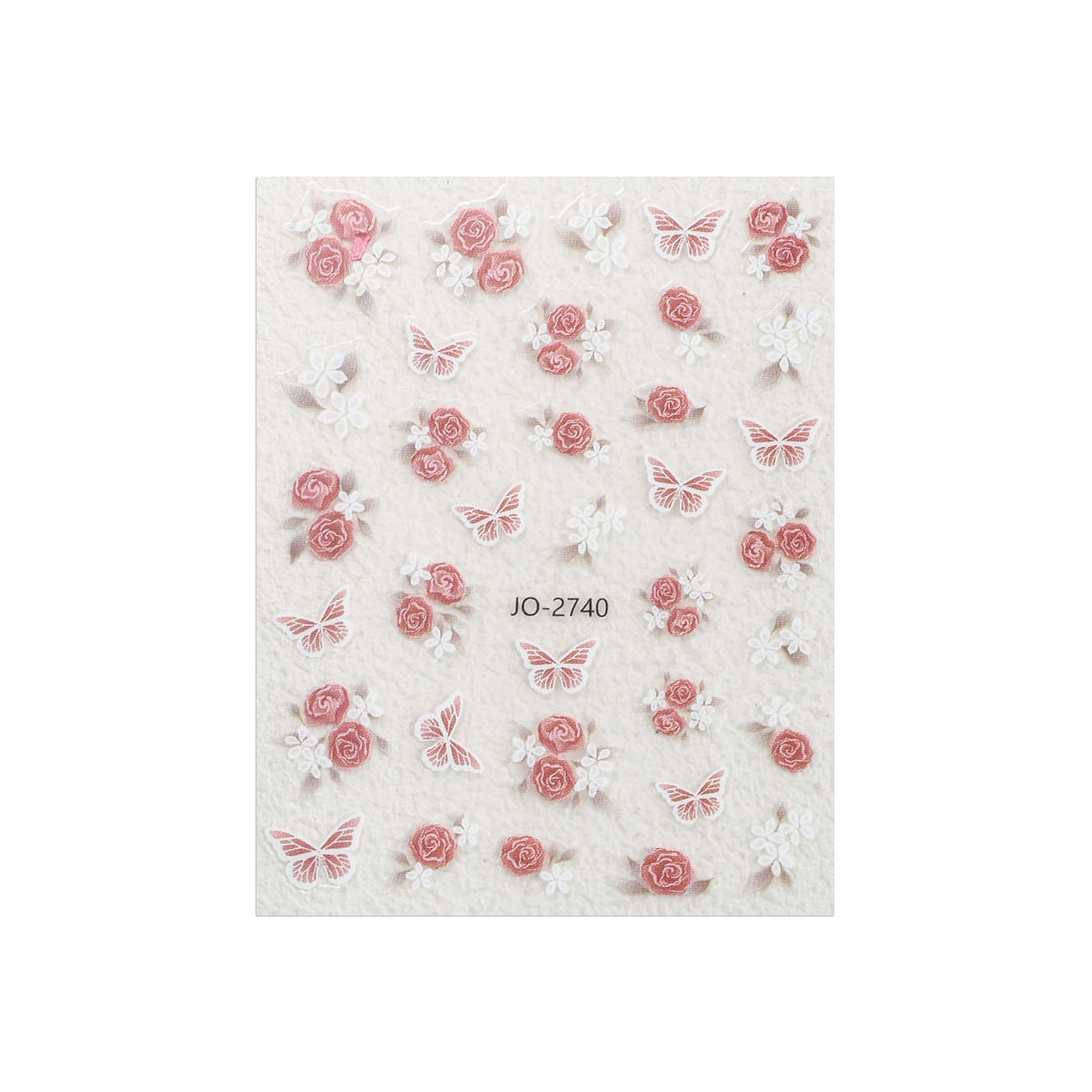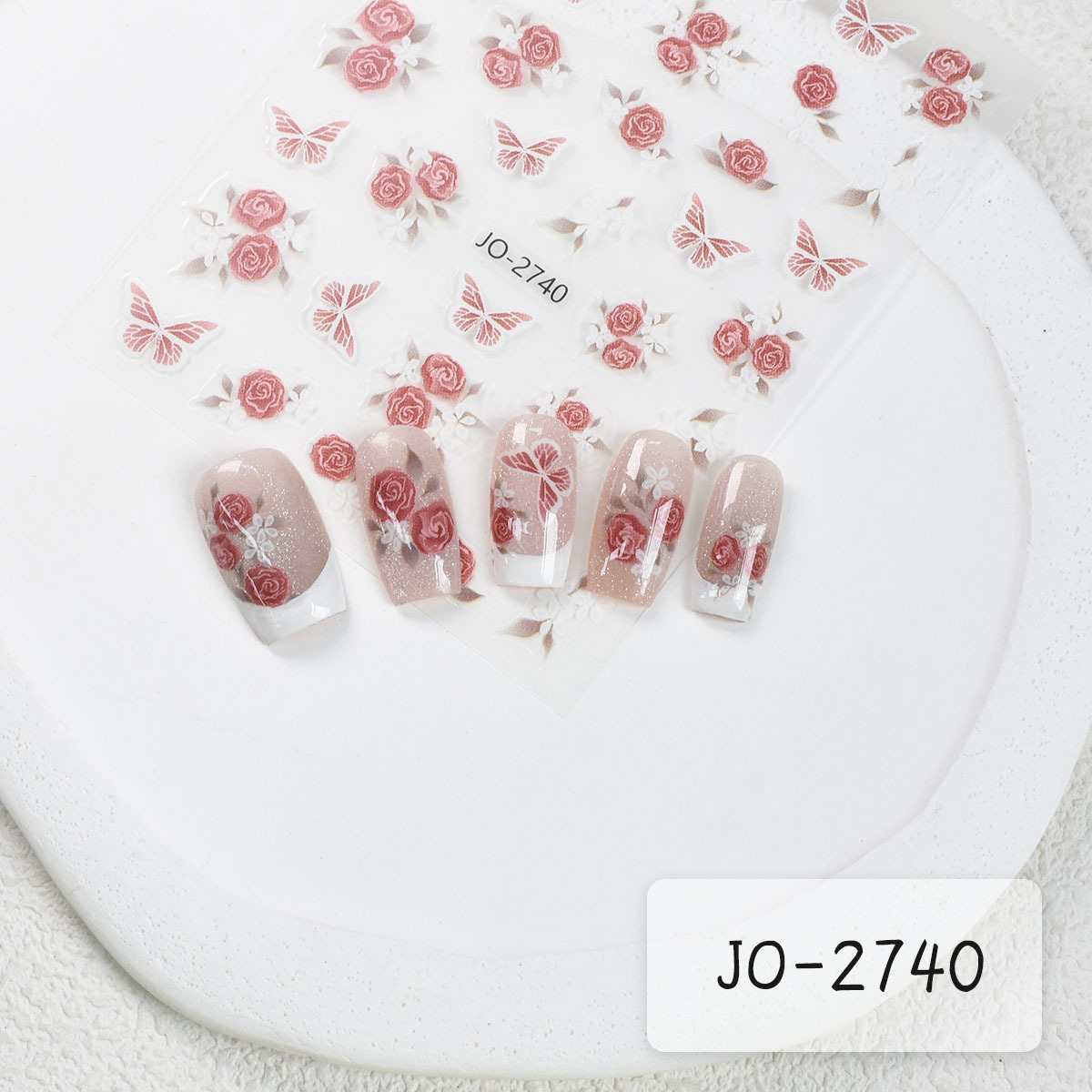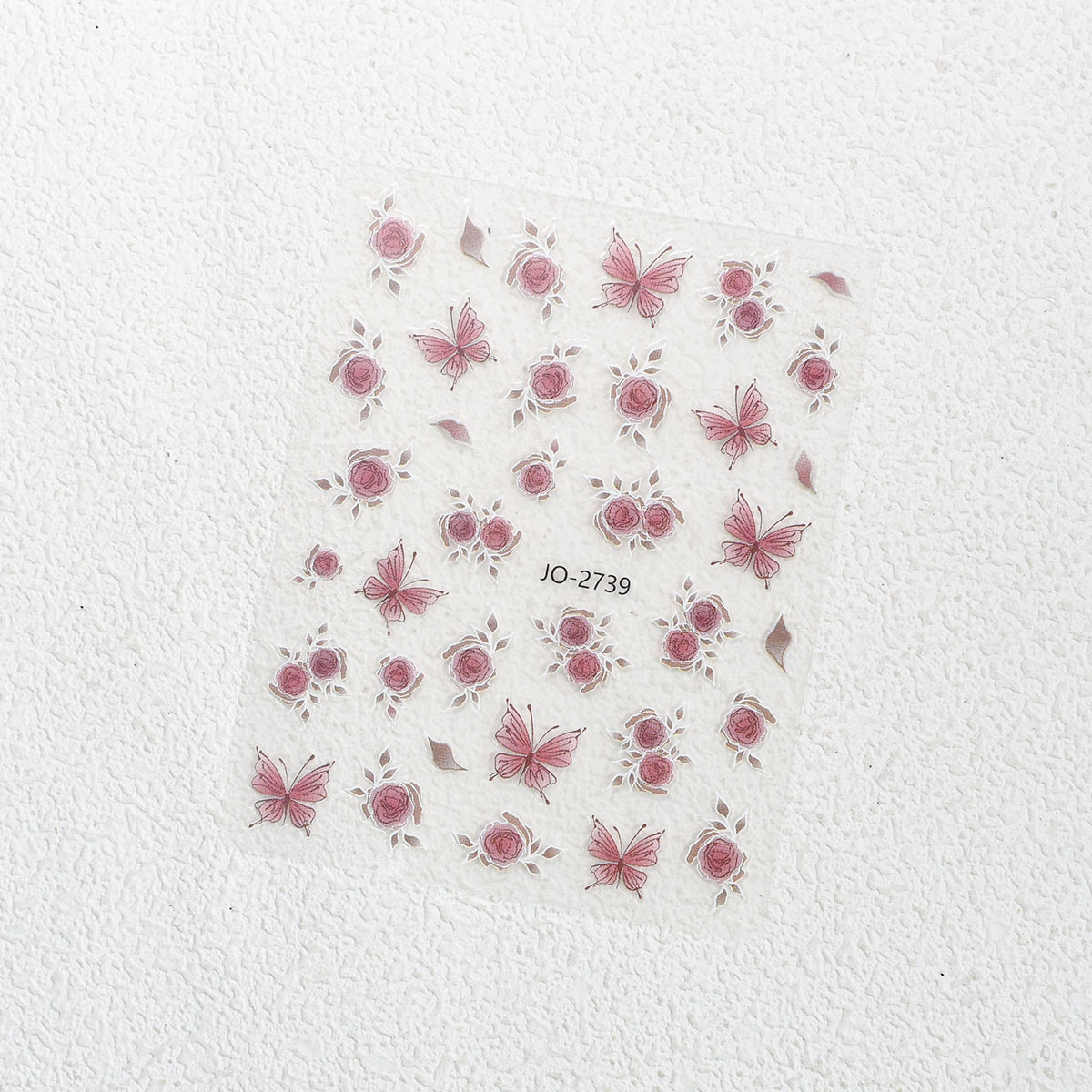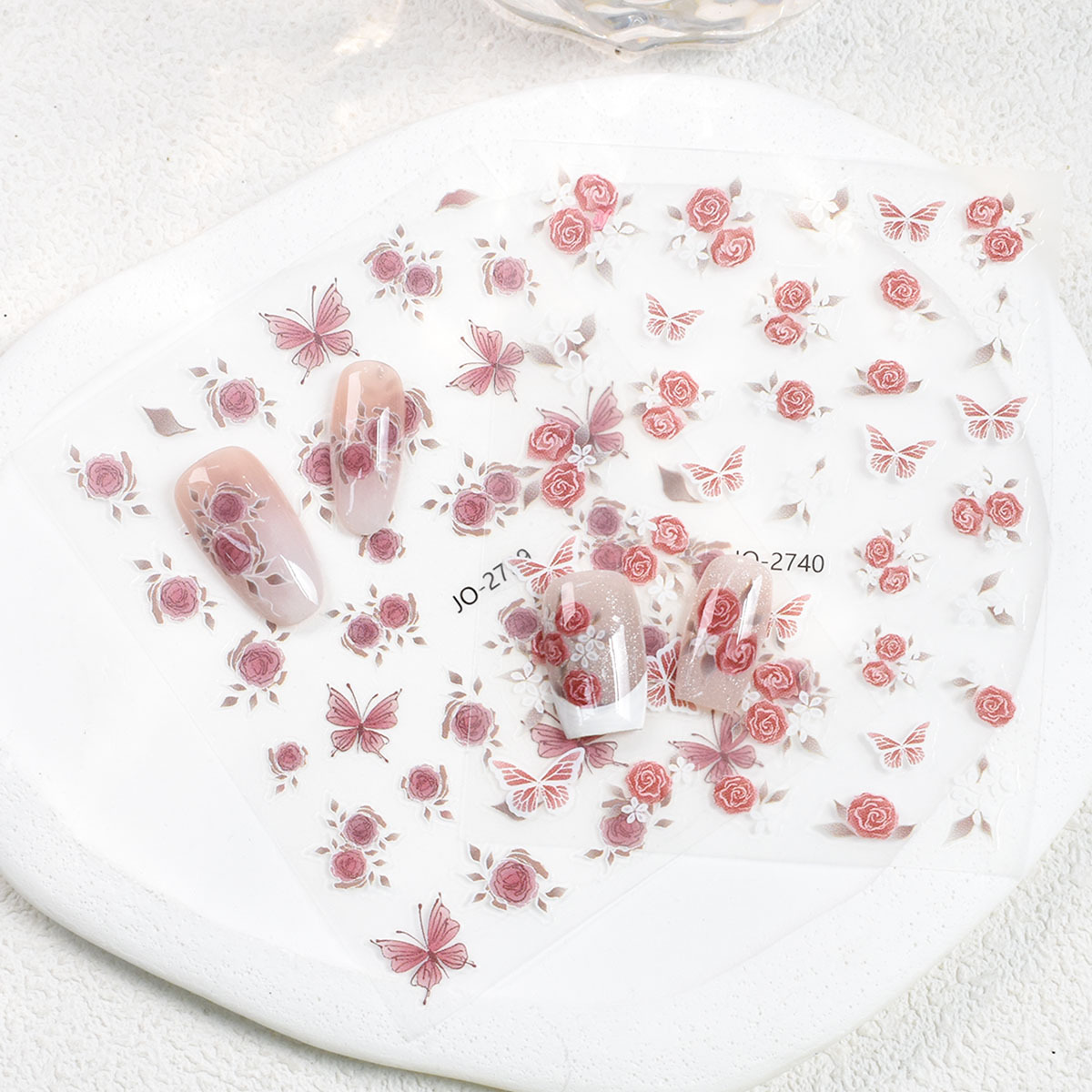 새로운 핑크 나비 네일 아트 스티커 꽃 장미 나비 diy 반투명 접착제 네일 장식 도매