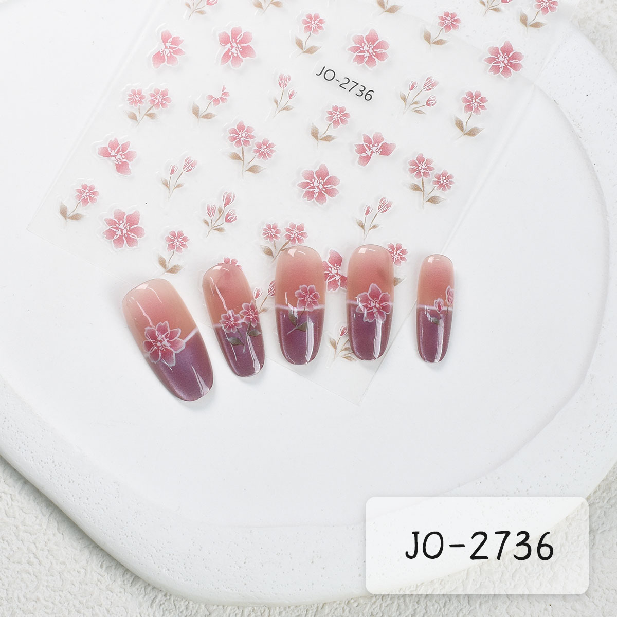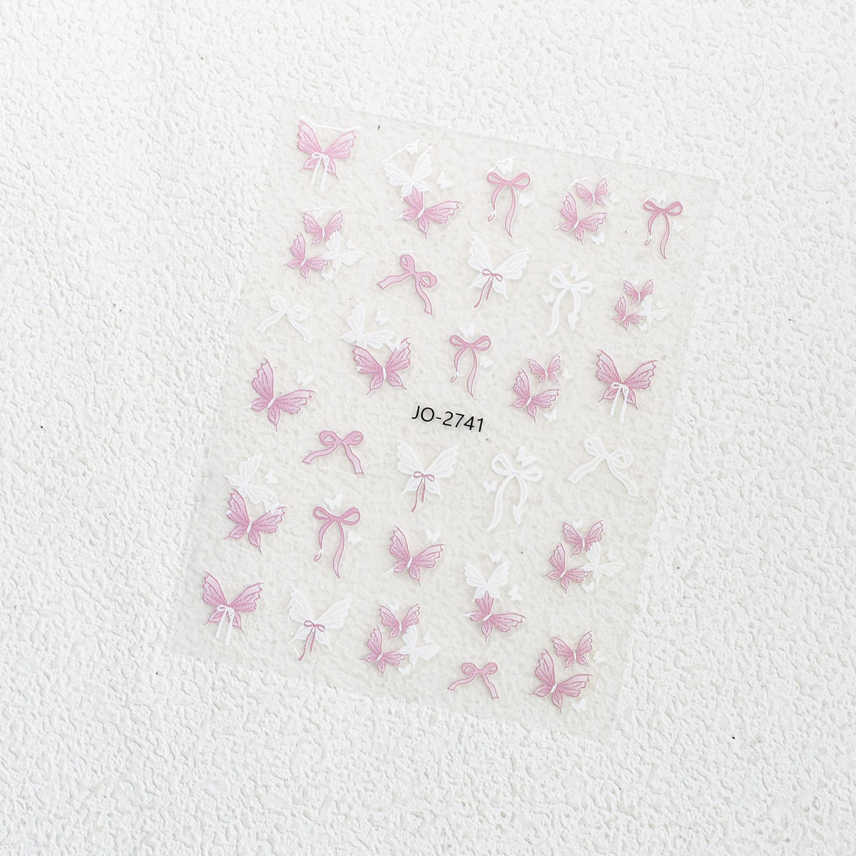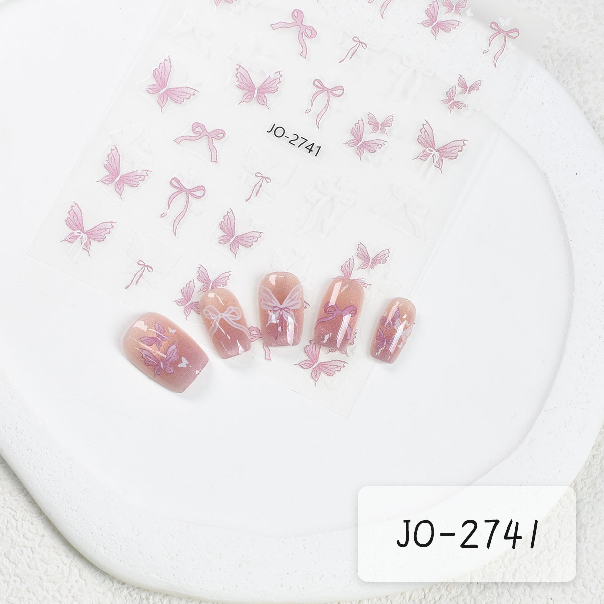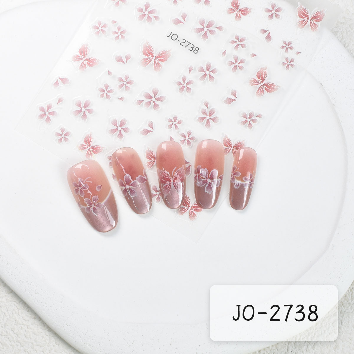 새로운 핑크 나비 네일 아트 스티커 꽃 장미 나비 diy 반투명 접착제 네일 장식 도매