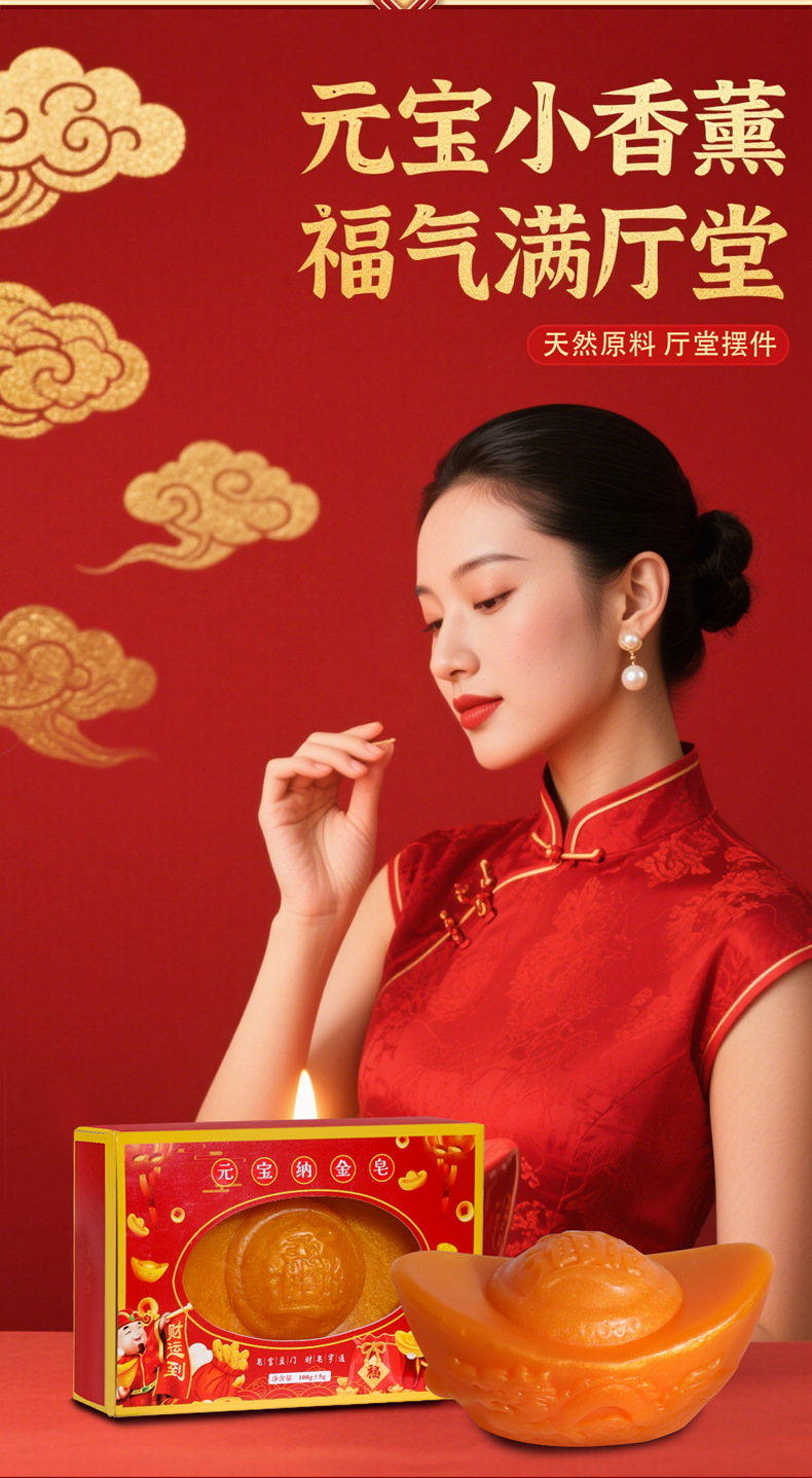 Yuanbao Najiin 수제 비누 아로마 테라피 사무실 욕실 장식품 비누 행운과 부를 끌어들이기 목욕 및 세안 에센셜 오일 비누