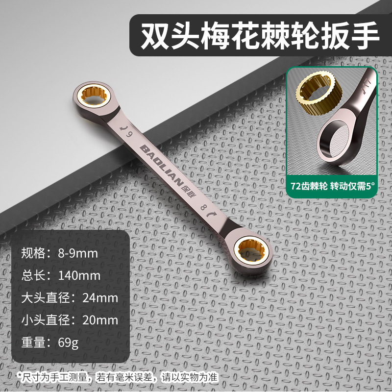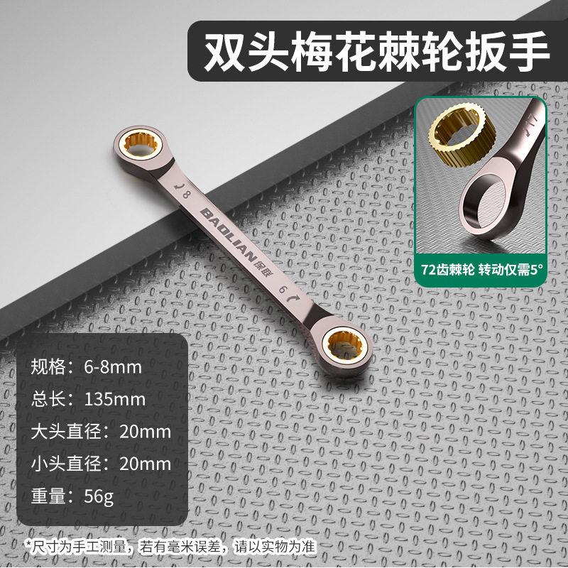 더블 헤드 검정색 니켈 매화 래칫 빠른 렌치 72 치아 다중 사양 확장 고경도 자동 수리 가정용 도구스토어 가기