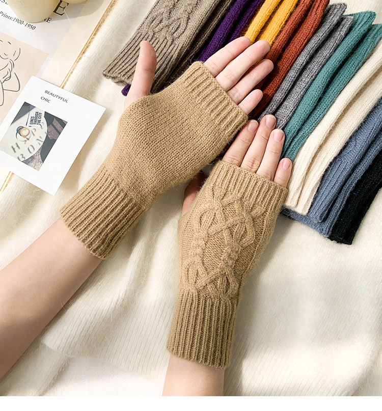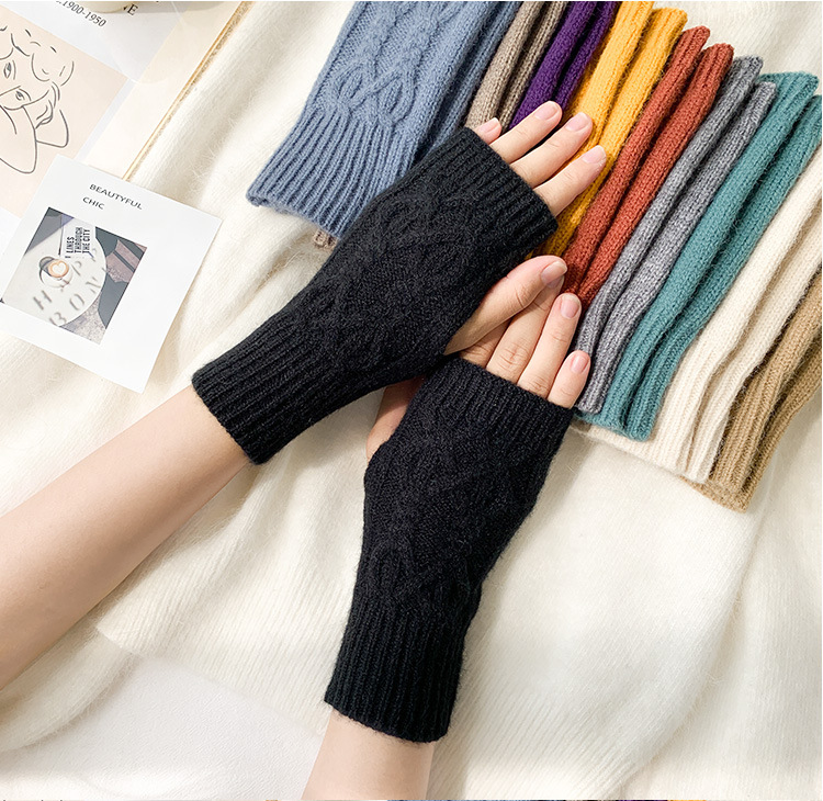 가을 겨울 여성용 장갑 학생용 반 손가락 장갑 쓰기 울 니트 따뜻한 장갑 국경 간 공급스토어 가기
