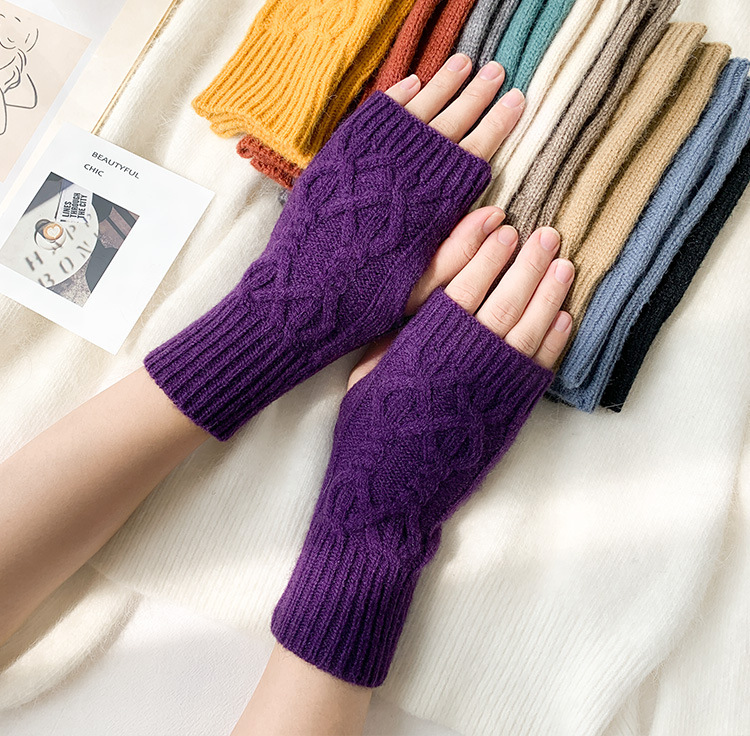 가을 겨울 여성용 장갑 학생용 반 손가락 장갑 쓰기 울 니트 따뜻한 장갑 국경 간 공급