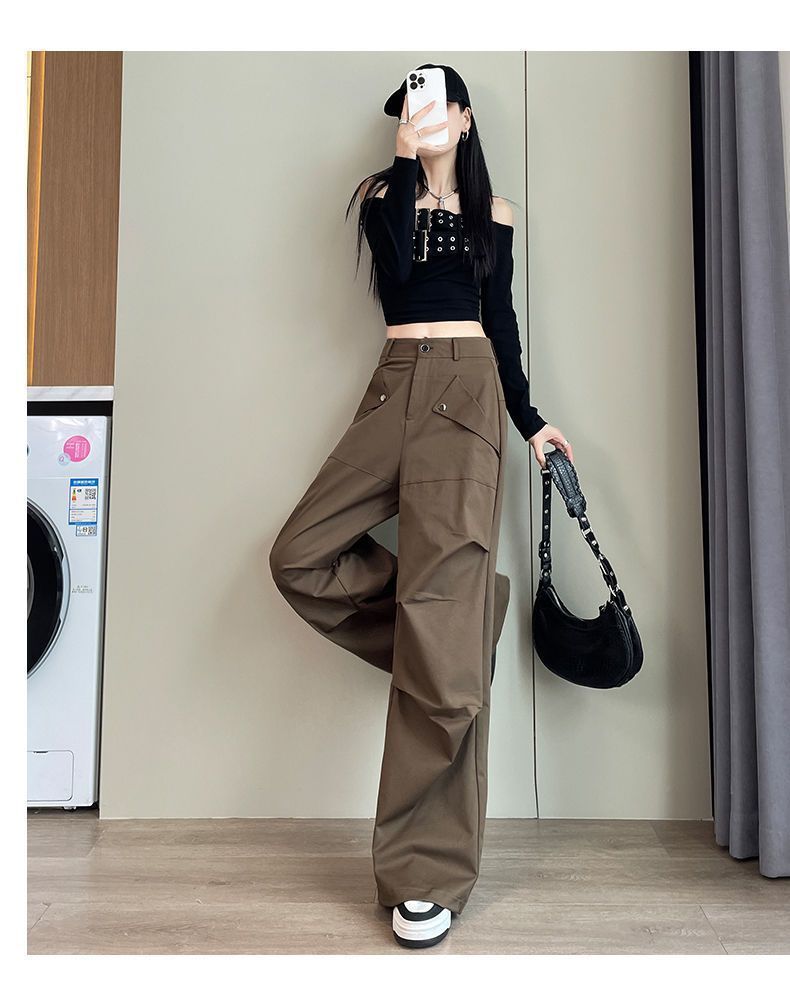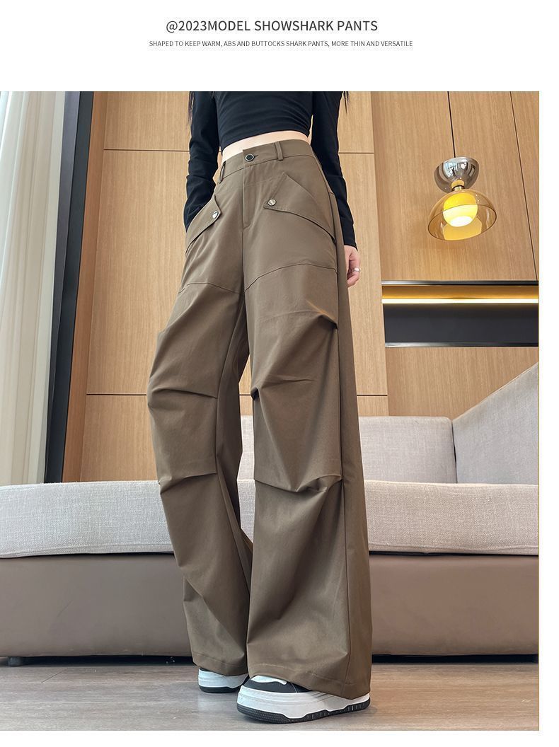 여성용 아메리칸 오버올 2025 봄 여름 신작 아웃도어 하이킹 팬츠 하이웨이스트 루즈 슬리밍 스포츠 와이드 팬츠 트렌디