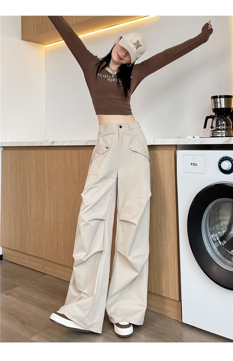 여성용 아메리칸 오버올 2025 봄 여름 신작 아웃도어 하이킹 팬츠 하이웨이스트 루즈 슬리밍 스포츠 와이드 팬츠 트렌디스토어 가기