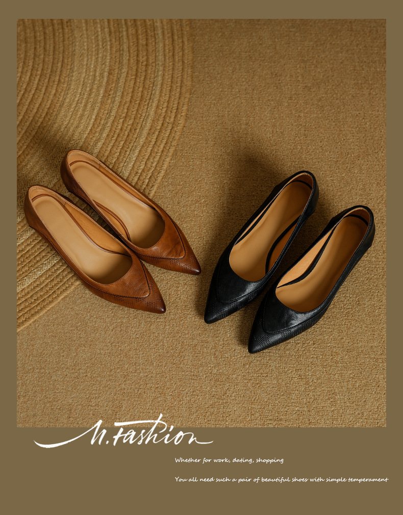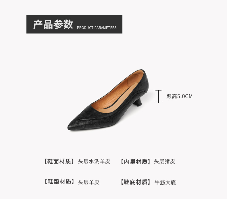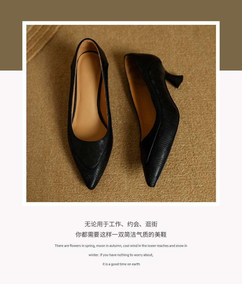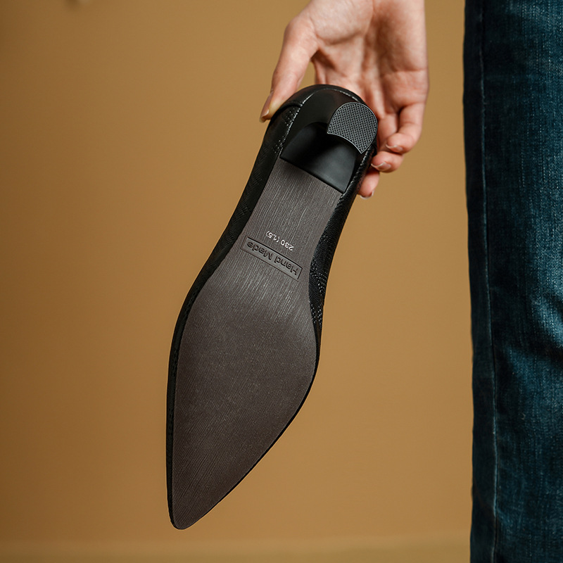 미드센츄리 스타일~프렌치 스타일 포인티드 토 스틸레토 펌프스 여성 2025 봄 신작 통근 하이힐 작은 가죽 신발스토어 가기